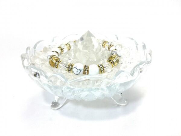 ハウライト&水晶 パワーストーン ブレスレット 天然石 10mm (ゴールド)メンズ・レディース 男性・女性 数珠ブレス 開運 ☆