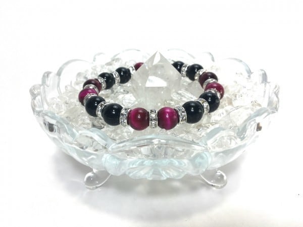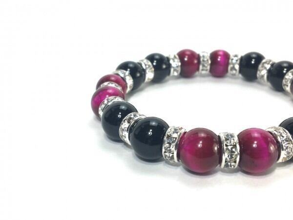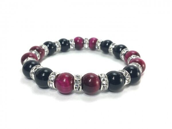 ピンクタイガーアイ&オニキス パワーストーン ブレスレット 天然石 10mm (シルバー)メンズ・レディース 男性・女性 数珠ブレス 開運 ☆