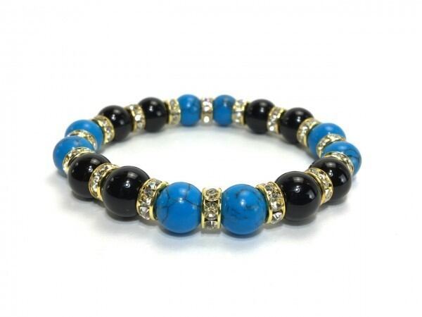 ターコイズ&オニキス パワーストーン ブレスレット 10mm (ゴールド)メンズ・レディース 男性・女性 数珠ブレス 開運 ☆