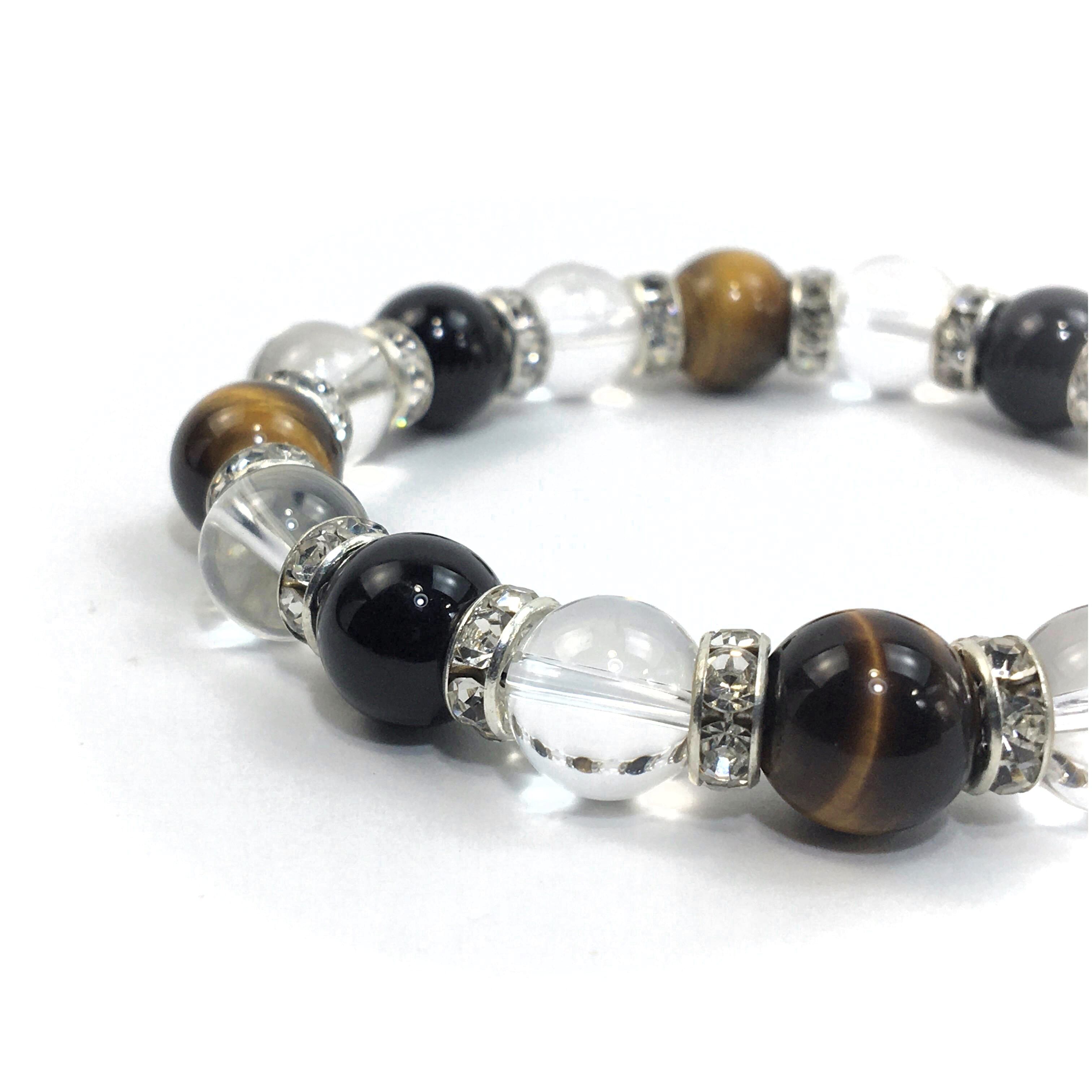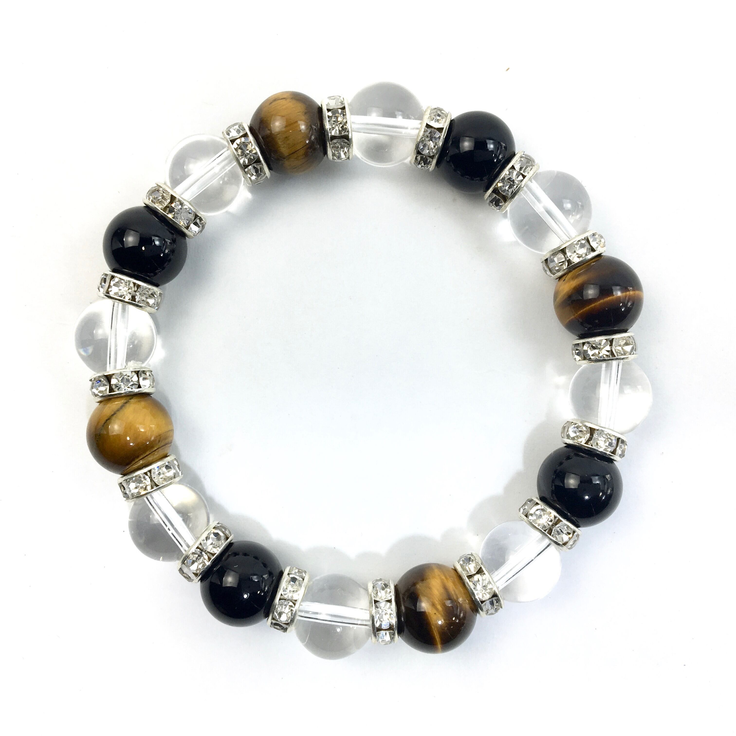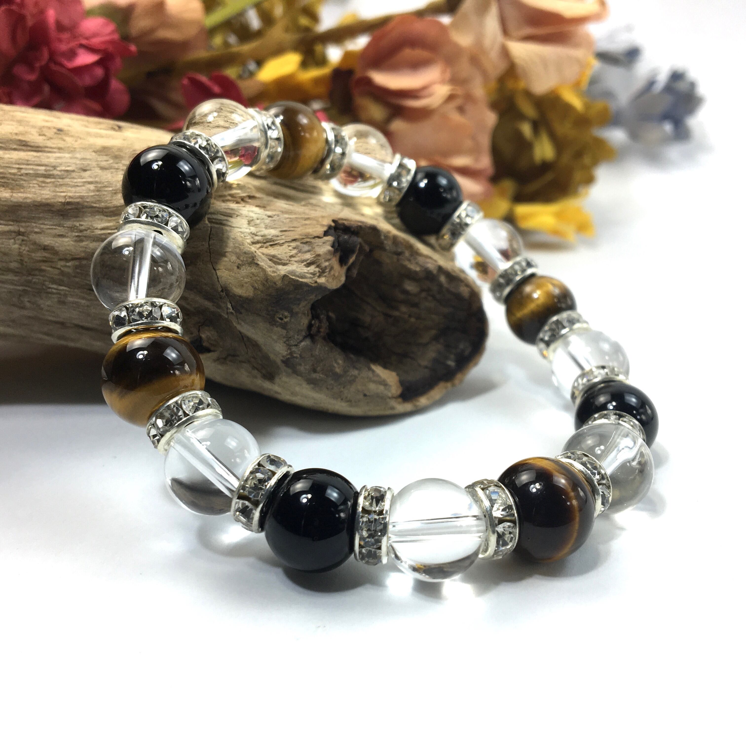 タイガーアイ×水晶×オニキス パワーストーン ブレスレット 10mm(シルバー)メンズ・レディース 男性・女性 数珠ブレス 開運 ☆