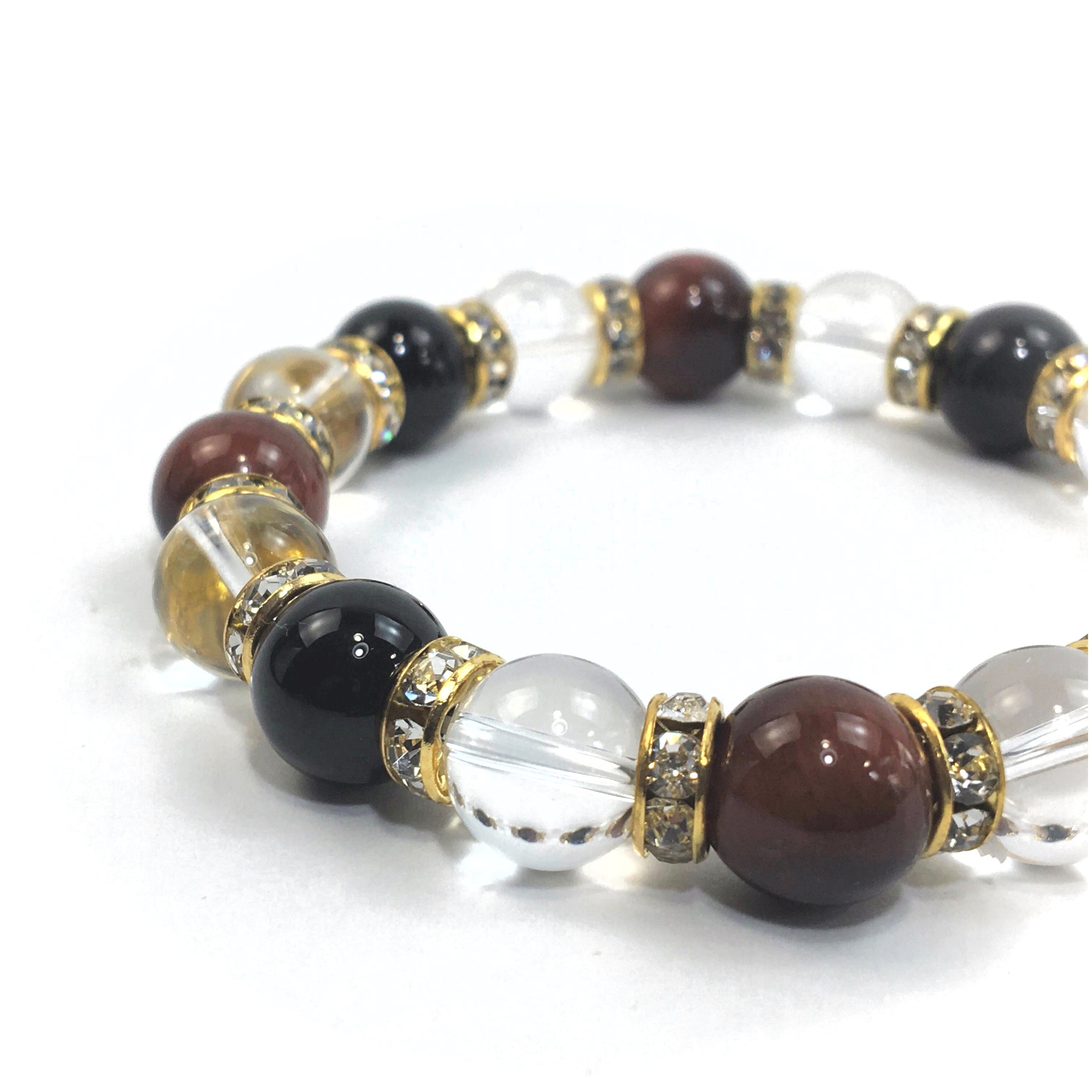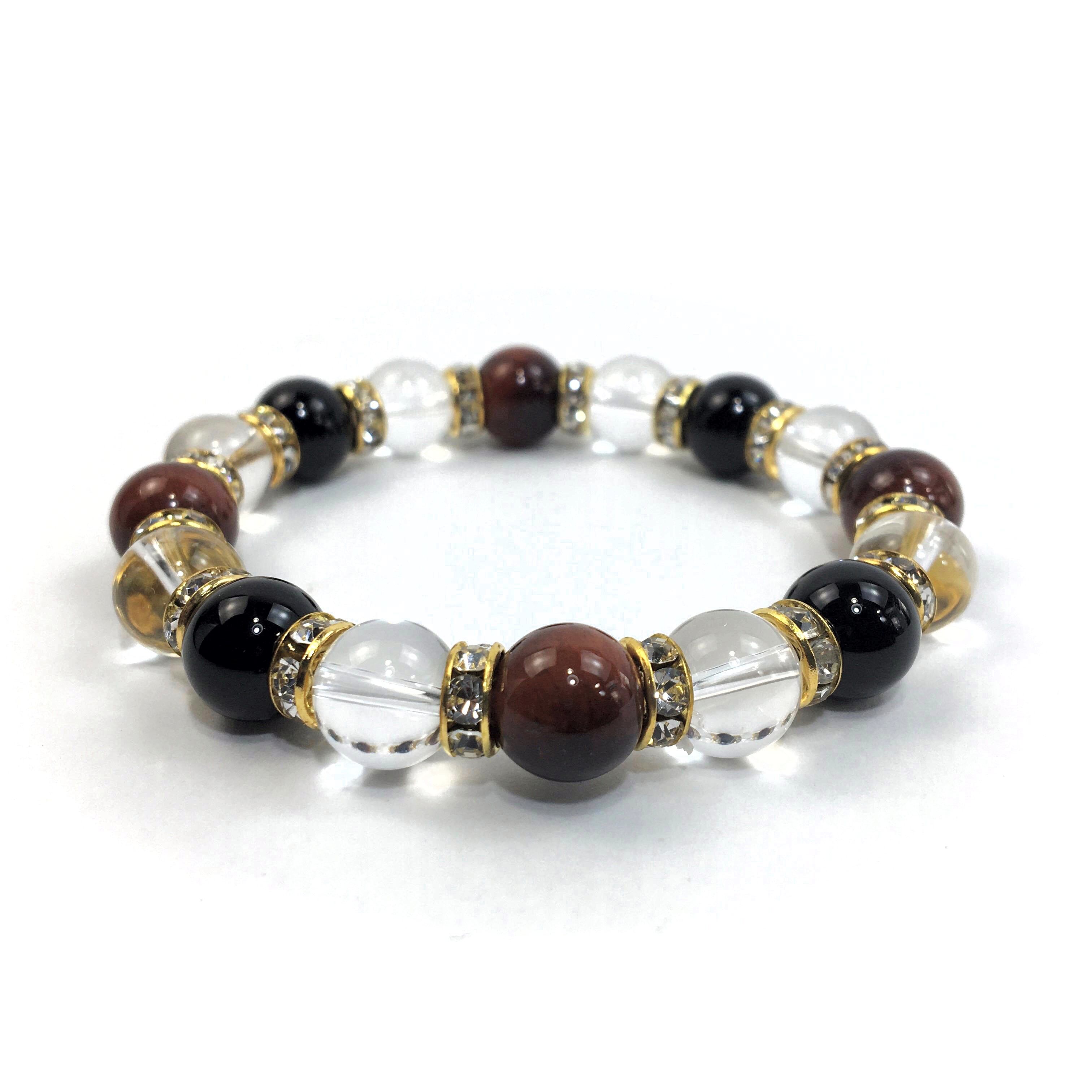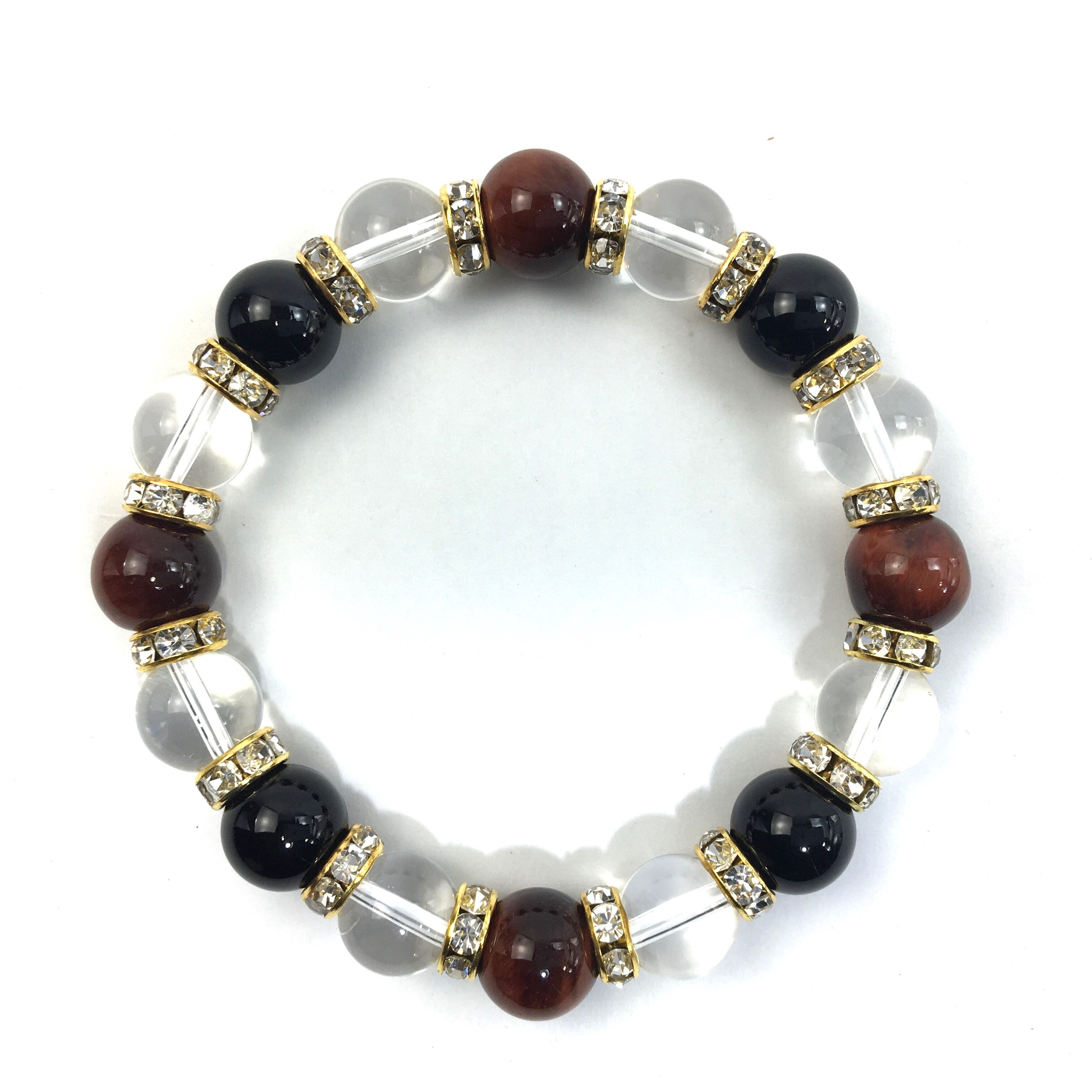 レッドタイガーアイ×水晶×オニキス パワーストーン ブレスレット 10mm(ゴールド)メンズ・レディース 男性・女性 数珠ブレス 開運 ☆