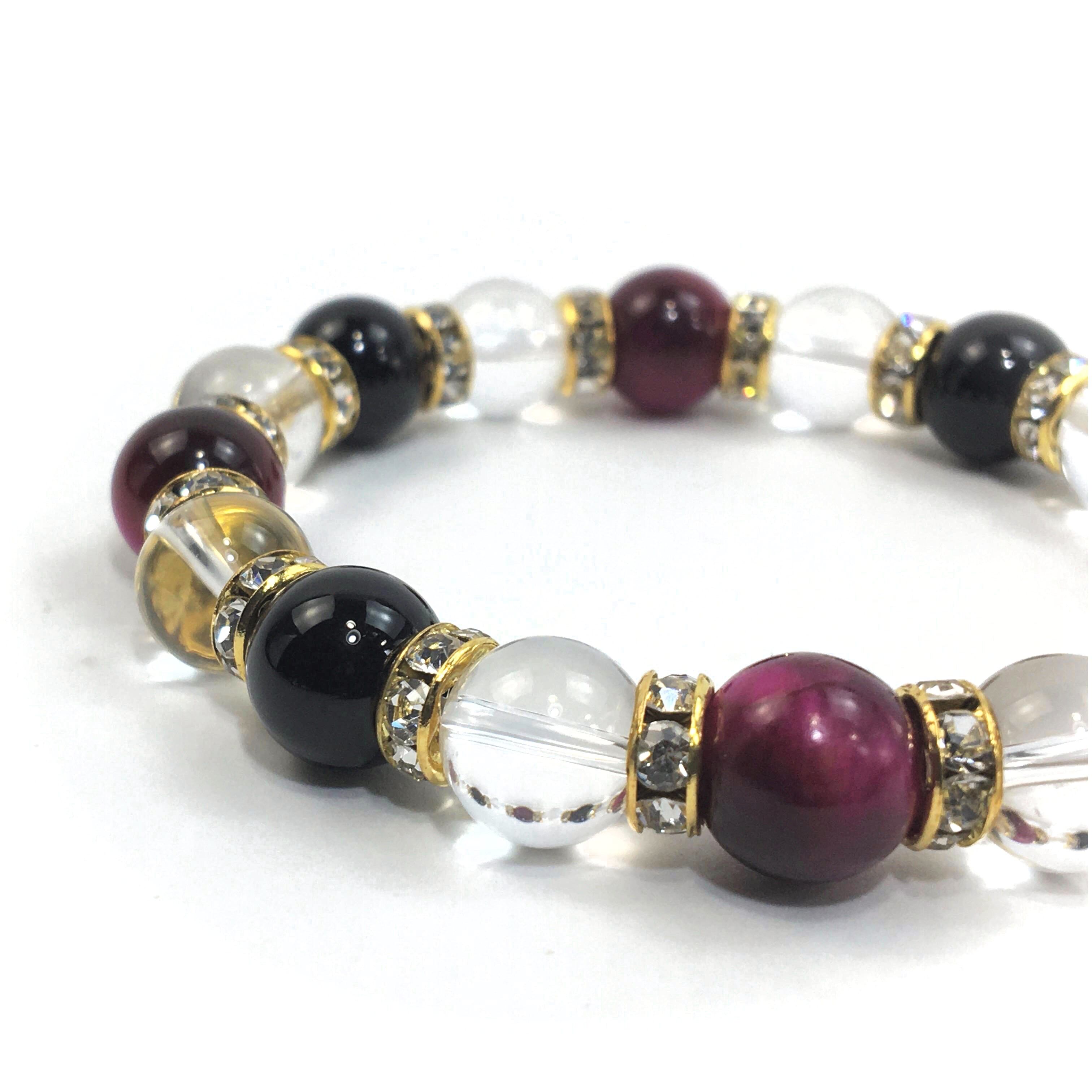 ピンクタイガーアイ×水晶×オニキス パワーストーン ブレスレット 10mm(ゴールド)メンズ・レディース 男性・女性 数珠ブレス 開運 ☆