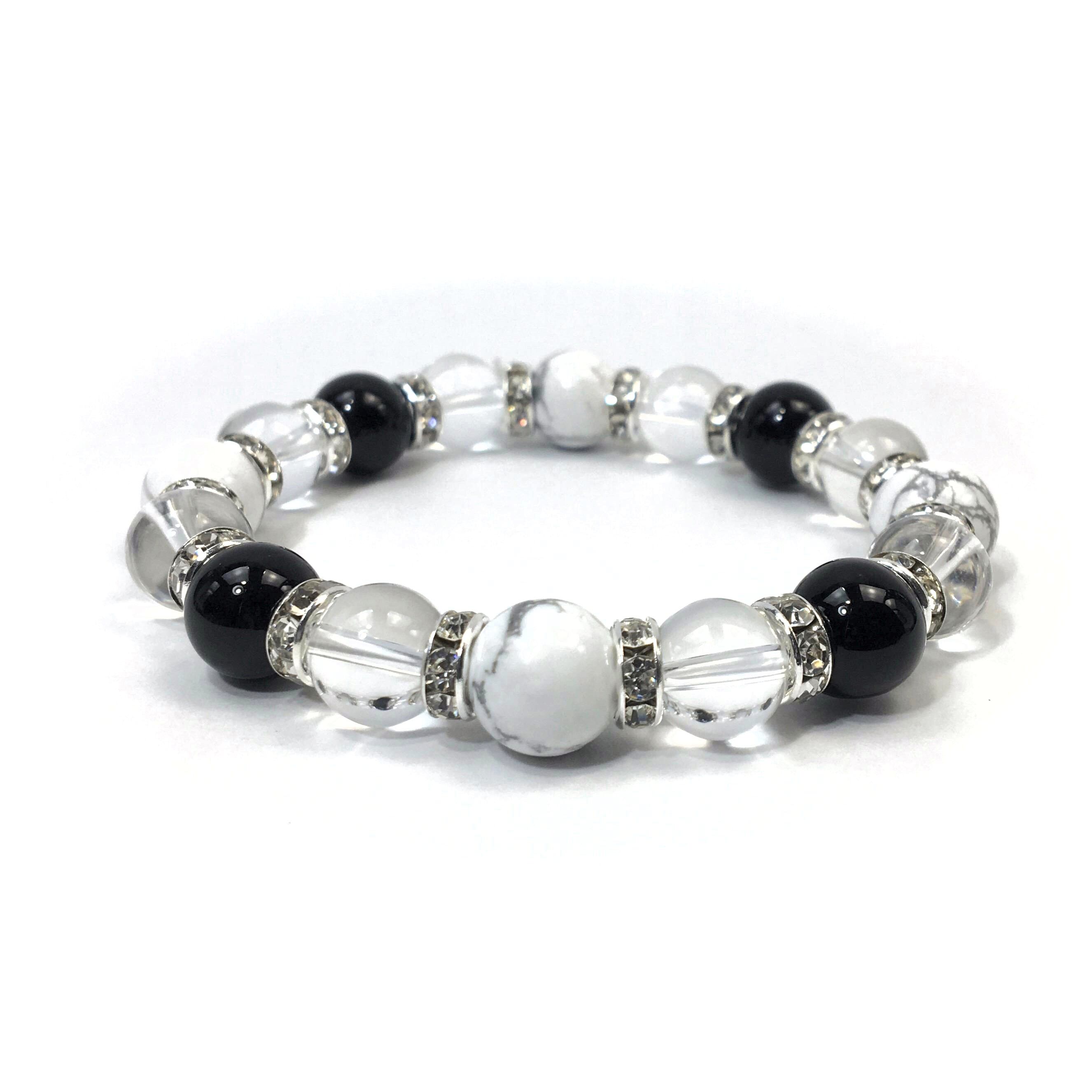 ハウライト×水晶×オニキス パワーストーン ブレスレット 10mm(シルバー)メンズ・レディース 男性・女性 数珠ブレス 開運 ☆