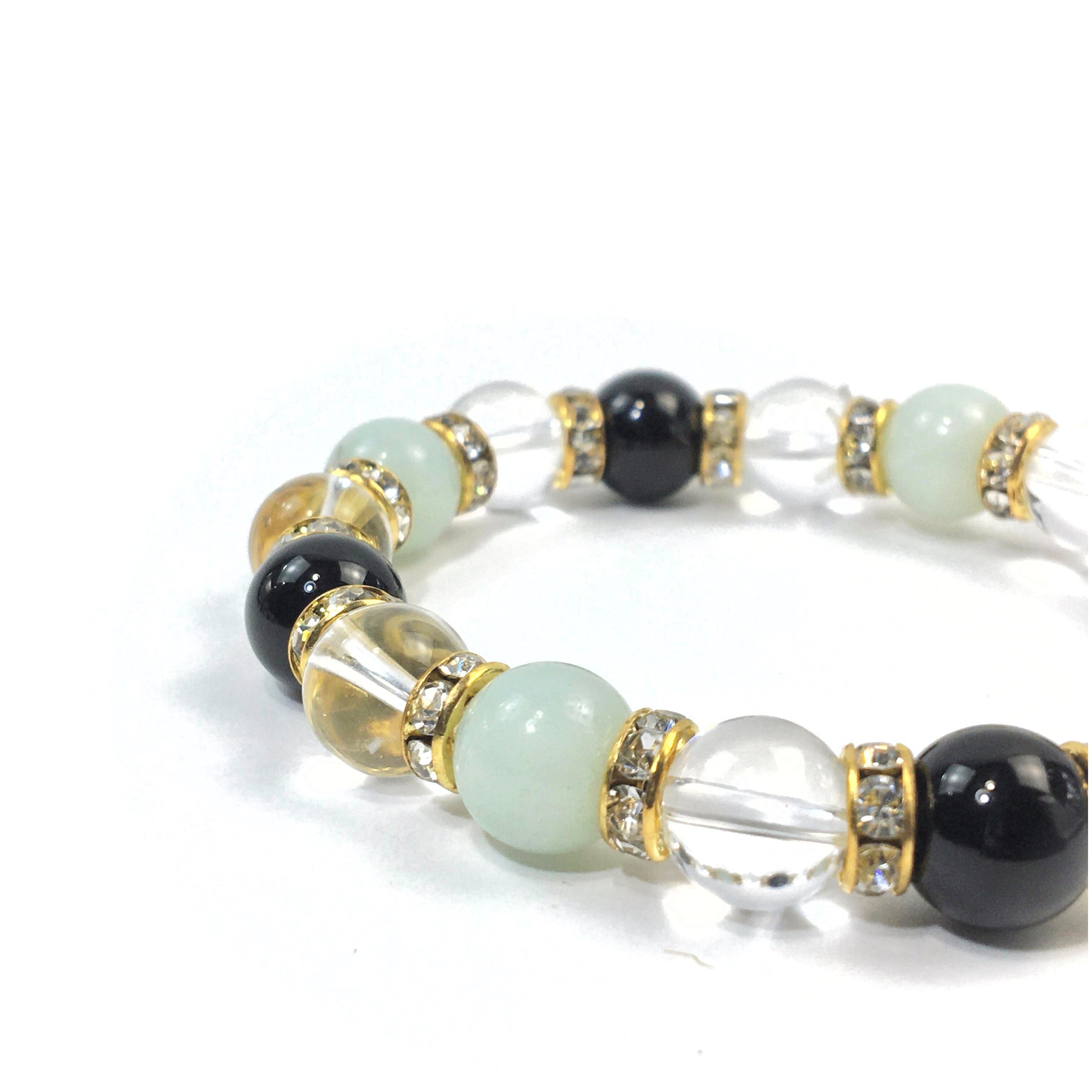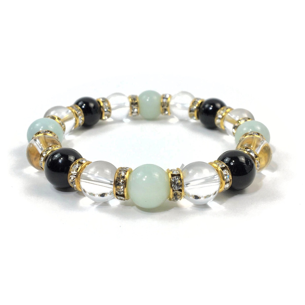 アマゾナイト×水晶×オニキス パワーストーン ブレスレット10mm(ゴールド)メンズ・レディース 男性・女性 数珠ブレス 開運 ☆