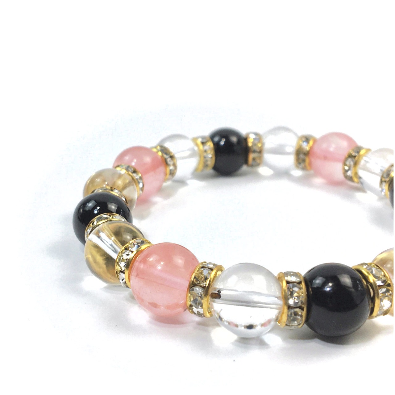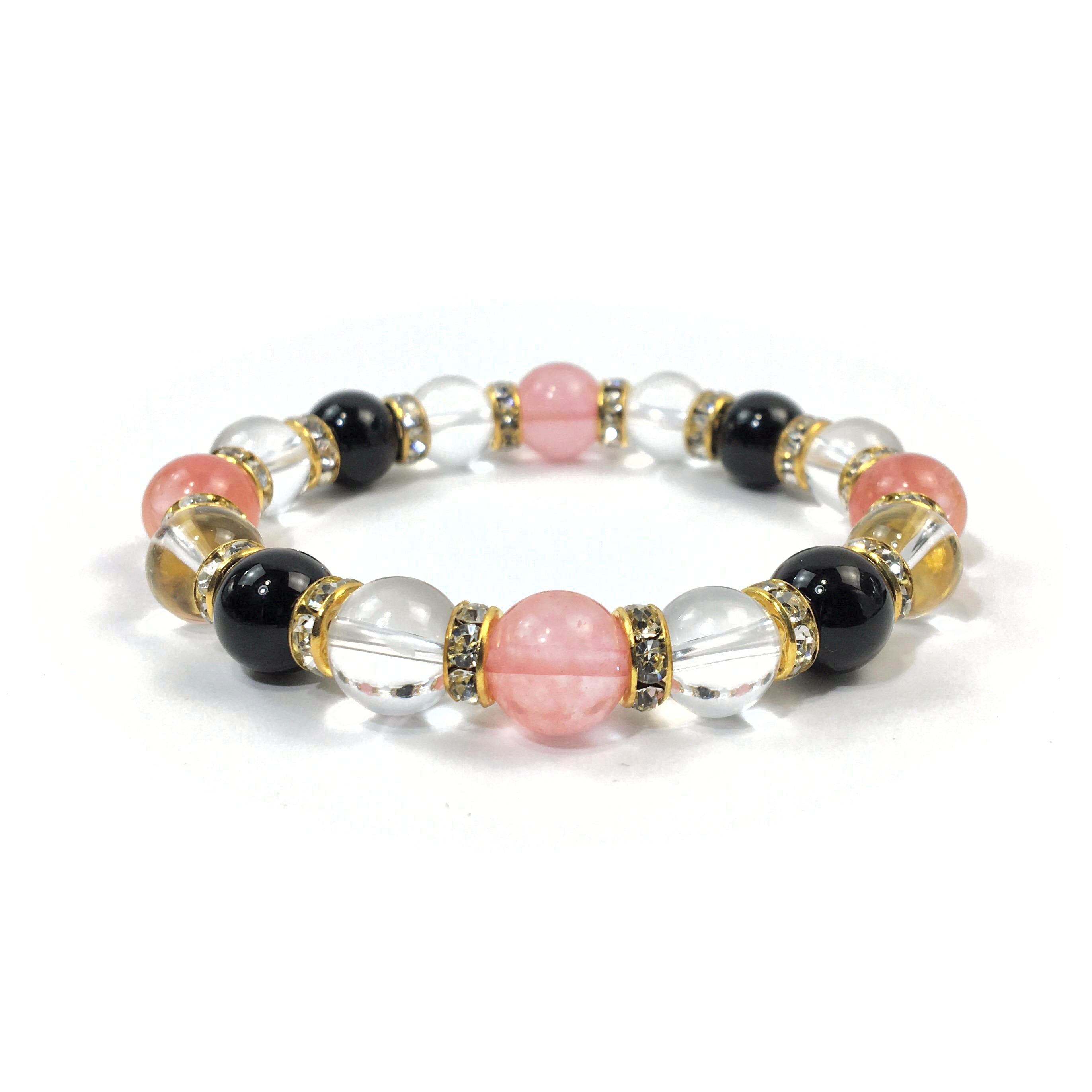 チェリークォーツ×水晶×オニキス パワーストーン ブレスレット10mm(ゴールド)メンズ・レディース 男性・女性 数珠ブレス 開運 ☆