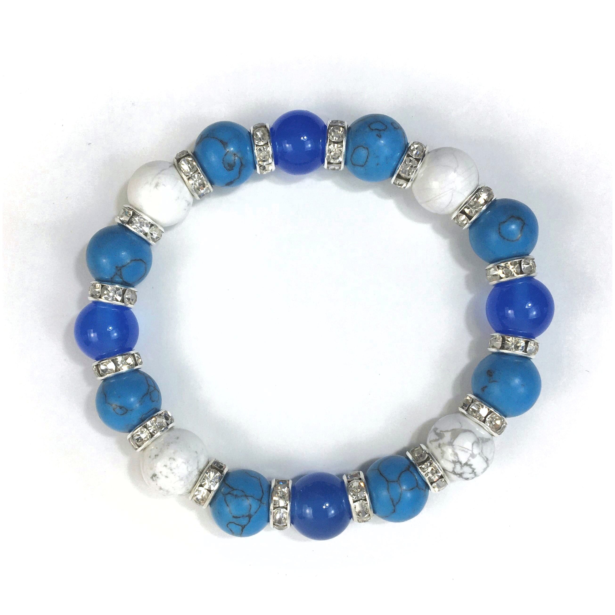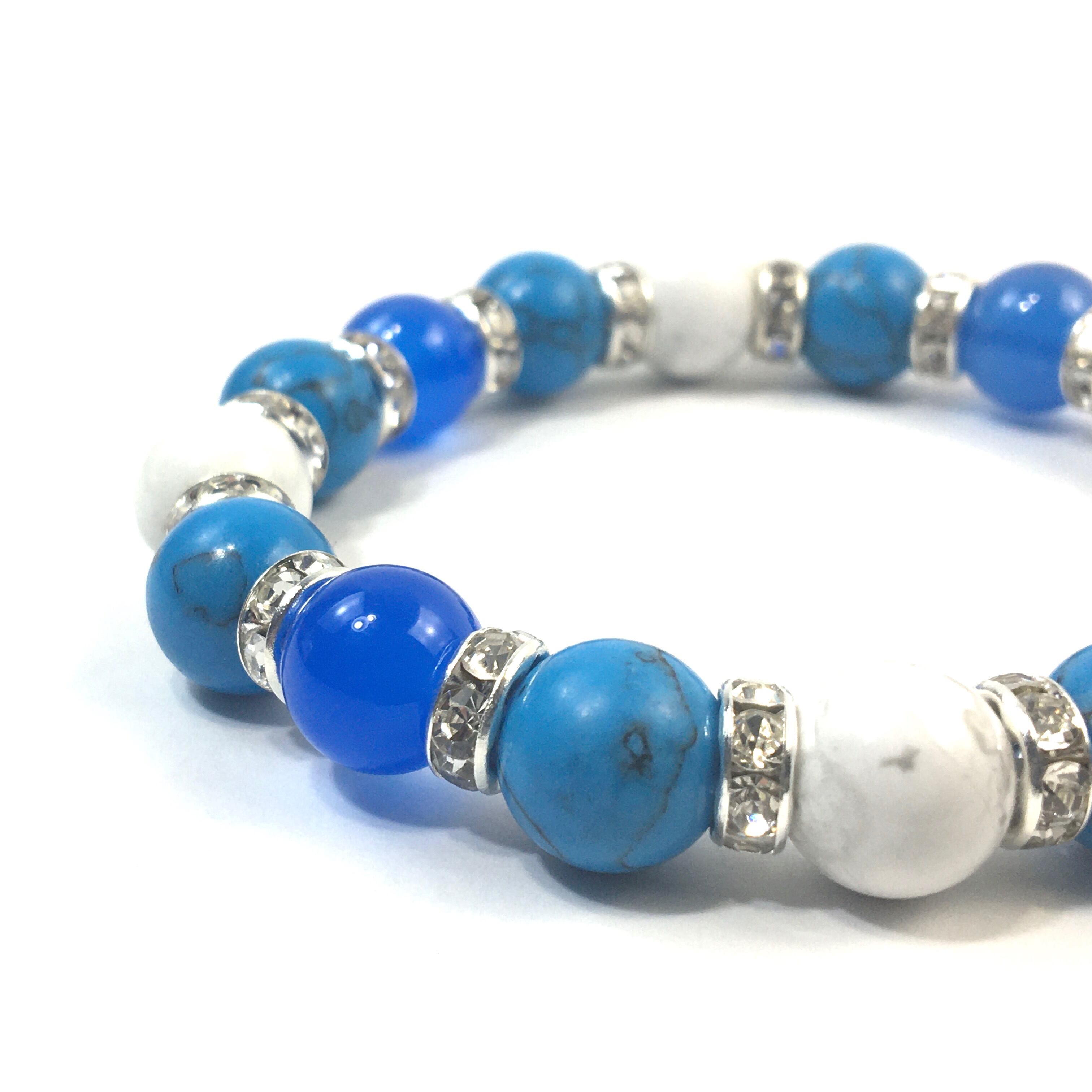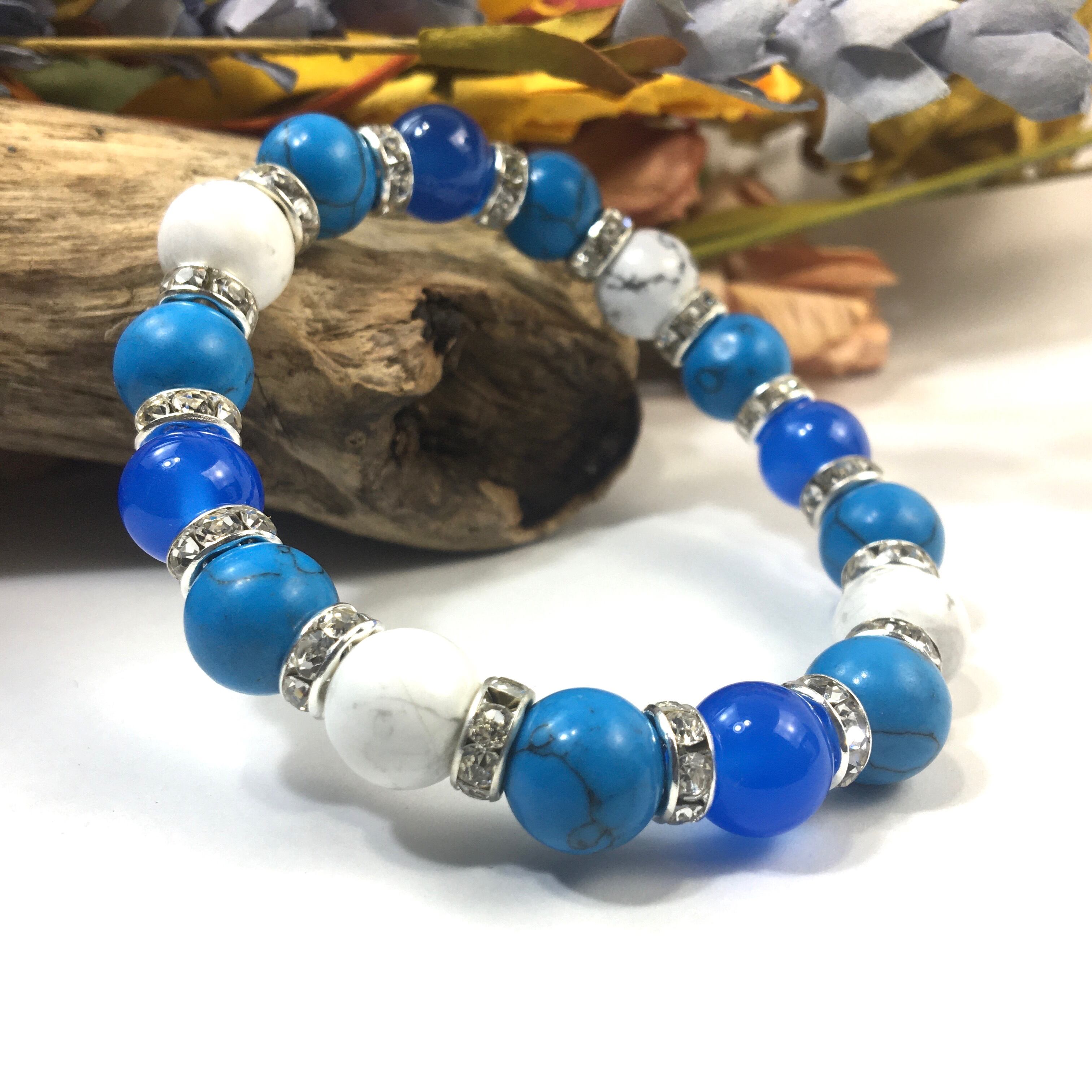 ブルーメノウ×ハウライト×ターコイズ パワーストーンブレス 10mm(シルバー)メンズ・レディース 男性・女性 数珠ブレス 開運 ☆