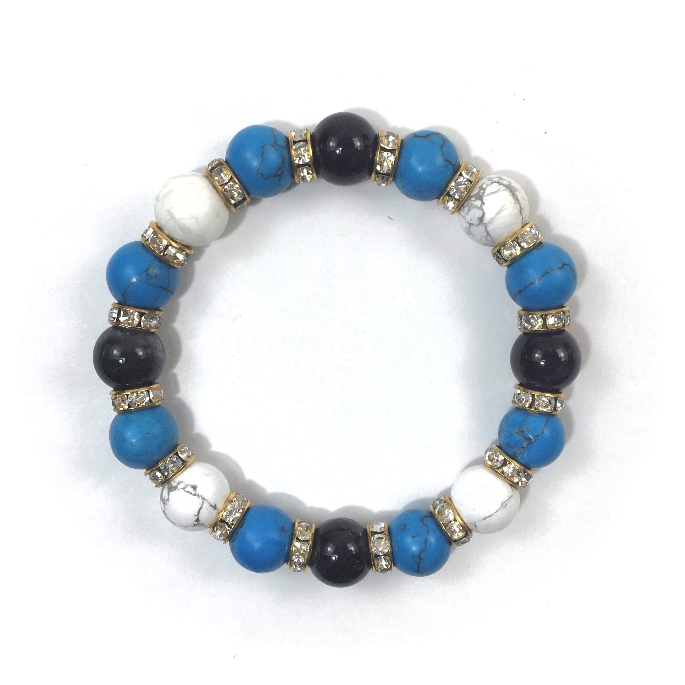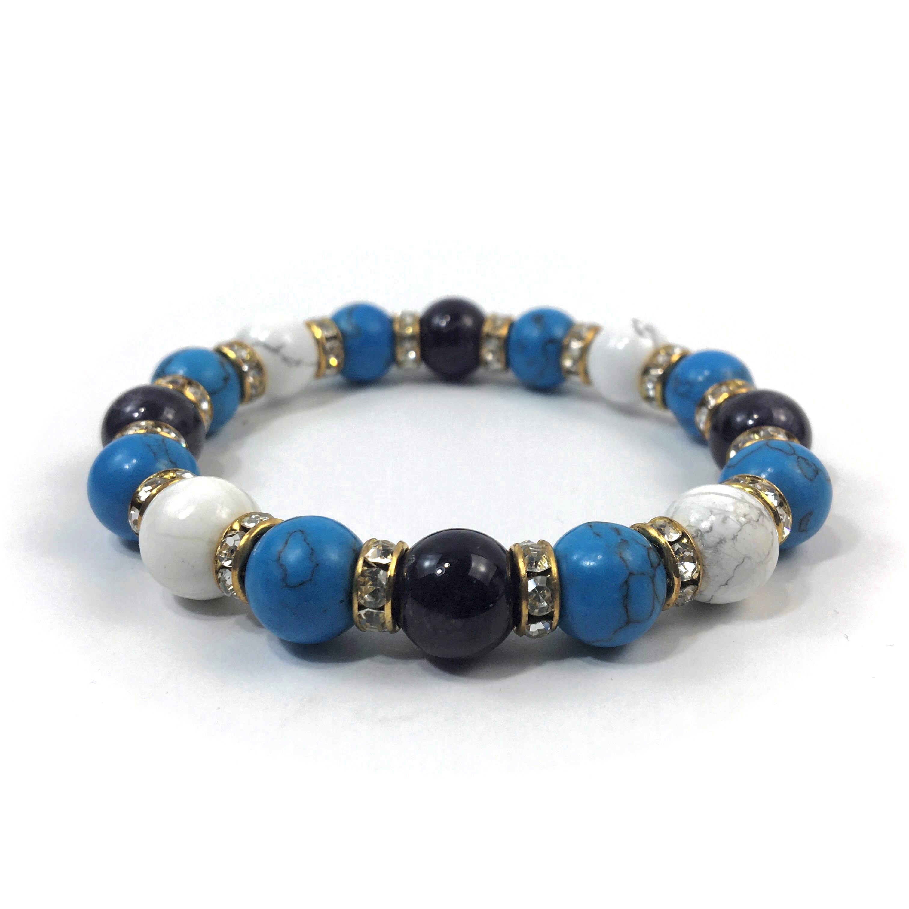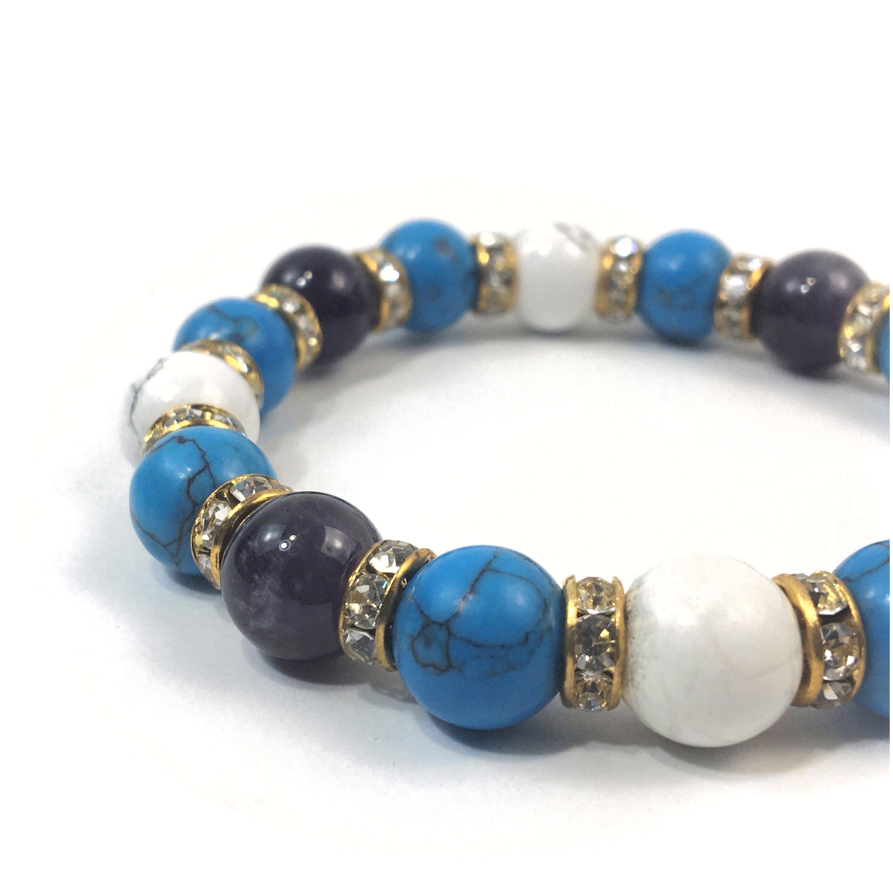 アメジスト×ハウライト×ターコイズ パワーストーンブレス 10mm(ゴールド)メンズ・レディース 男性・女性 数珠ブレス 開運 ☆