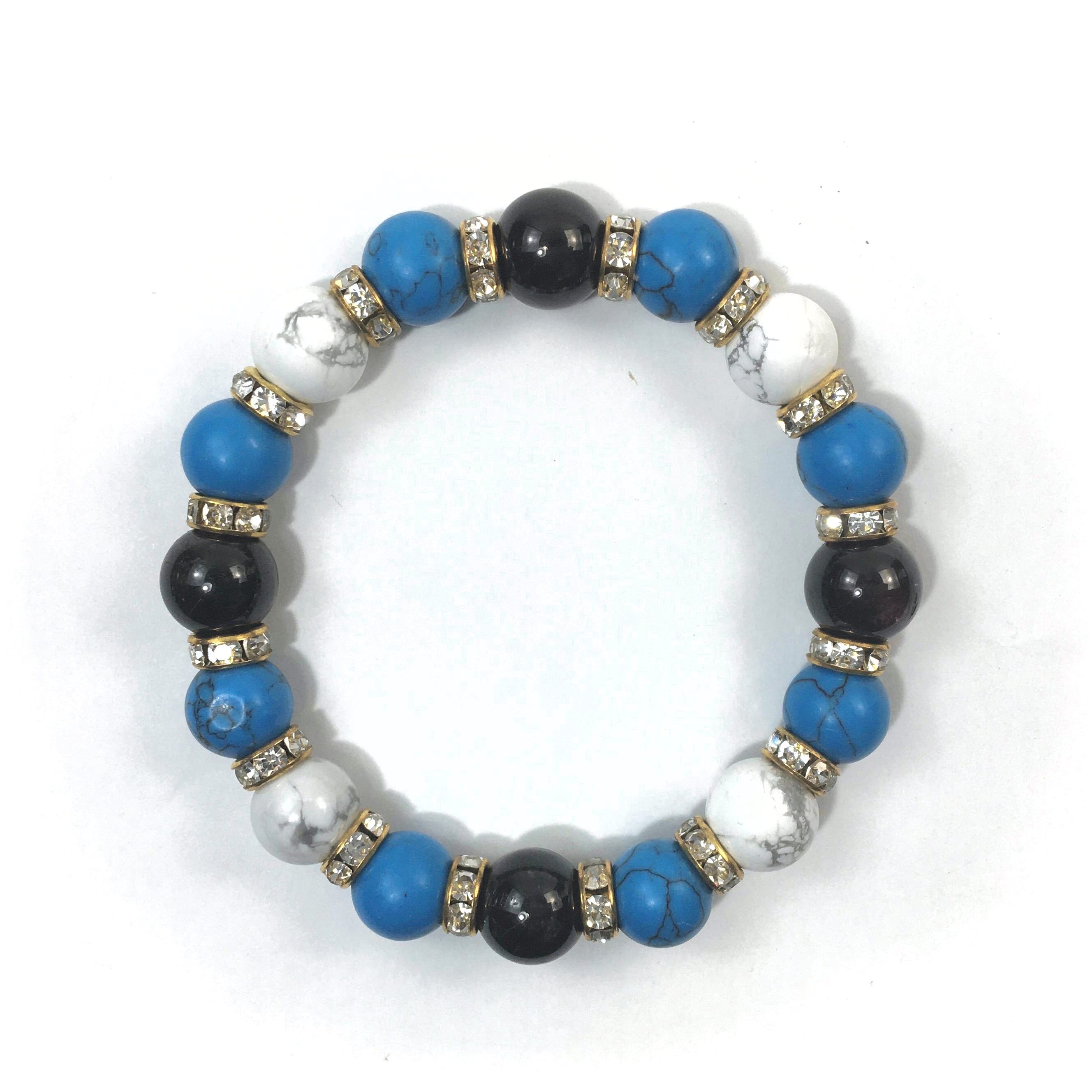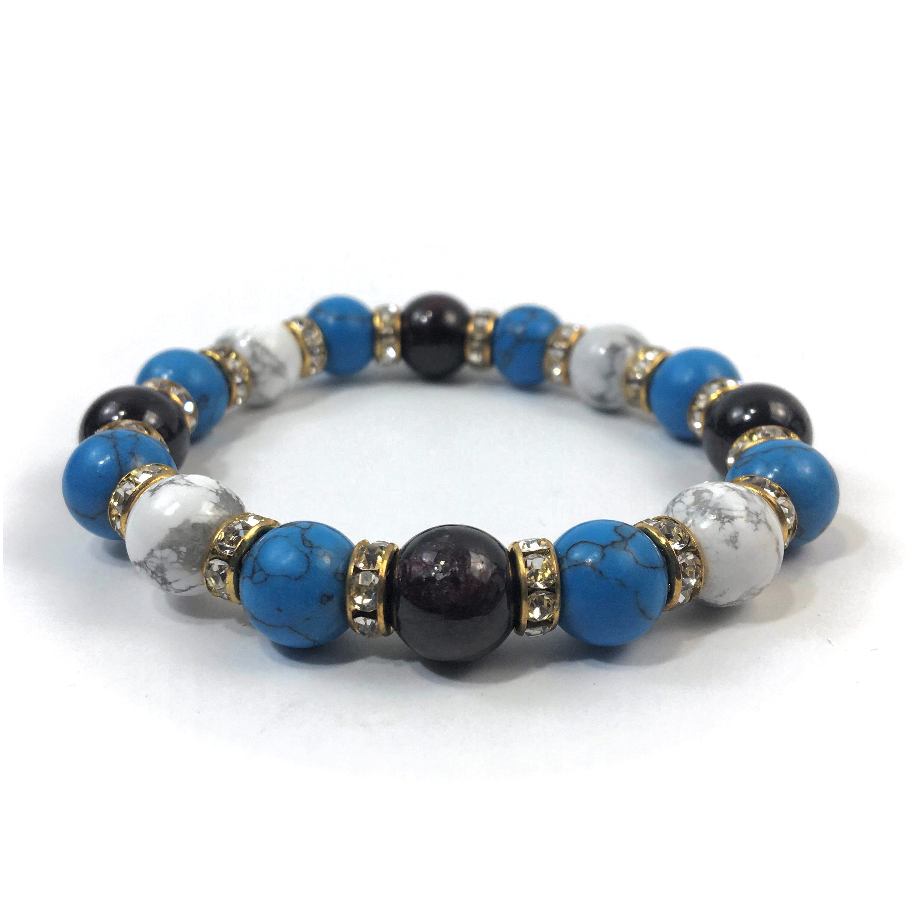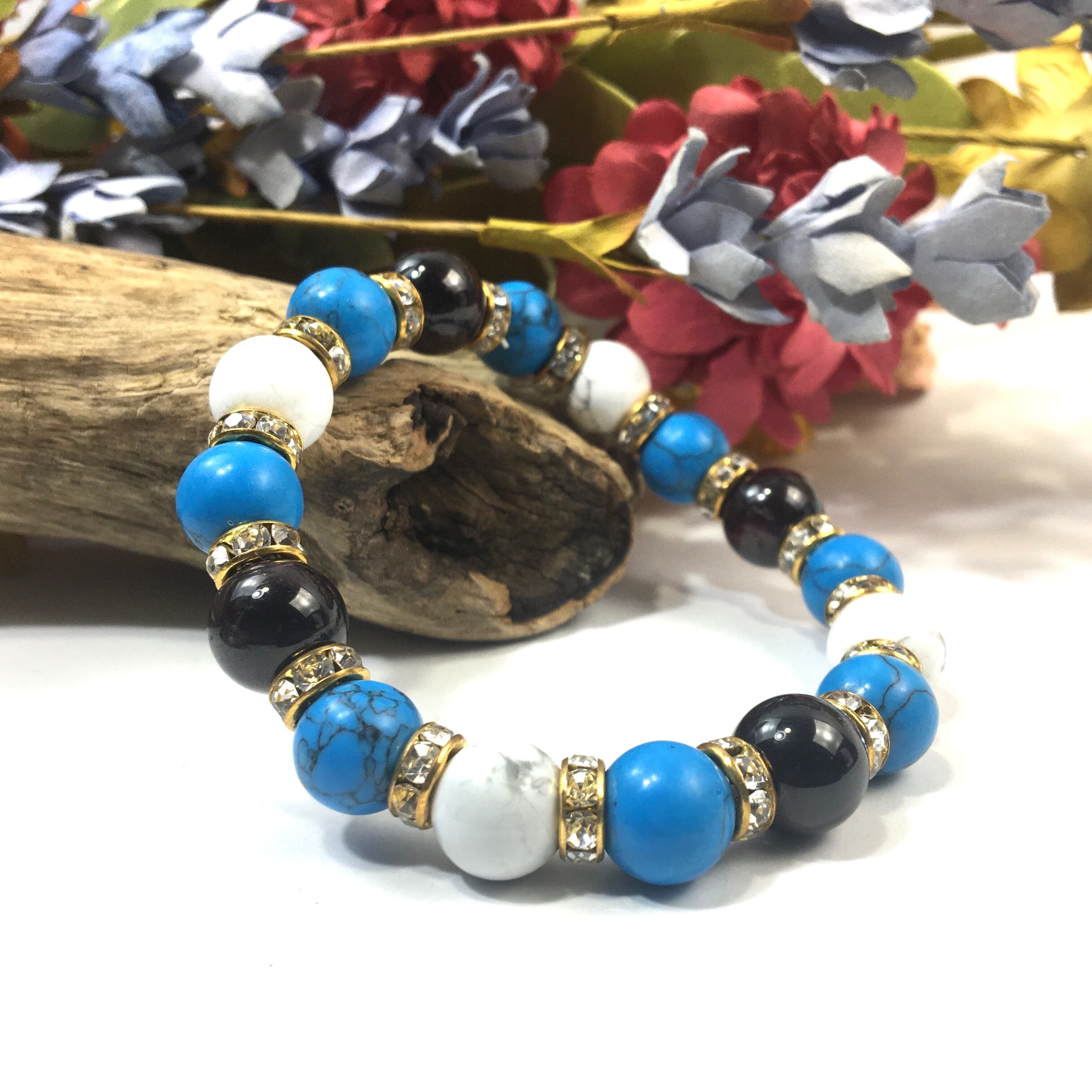 ガーネット×ハウライト×ターコイズ パワーストーンブレス 10mm(ゴールド)メンズ・レディース 男性・女性 数珠ブレス 開運 ☆