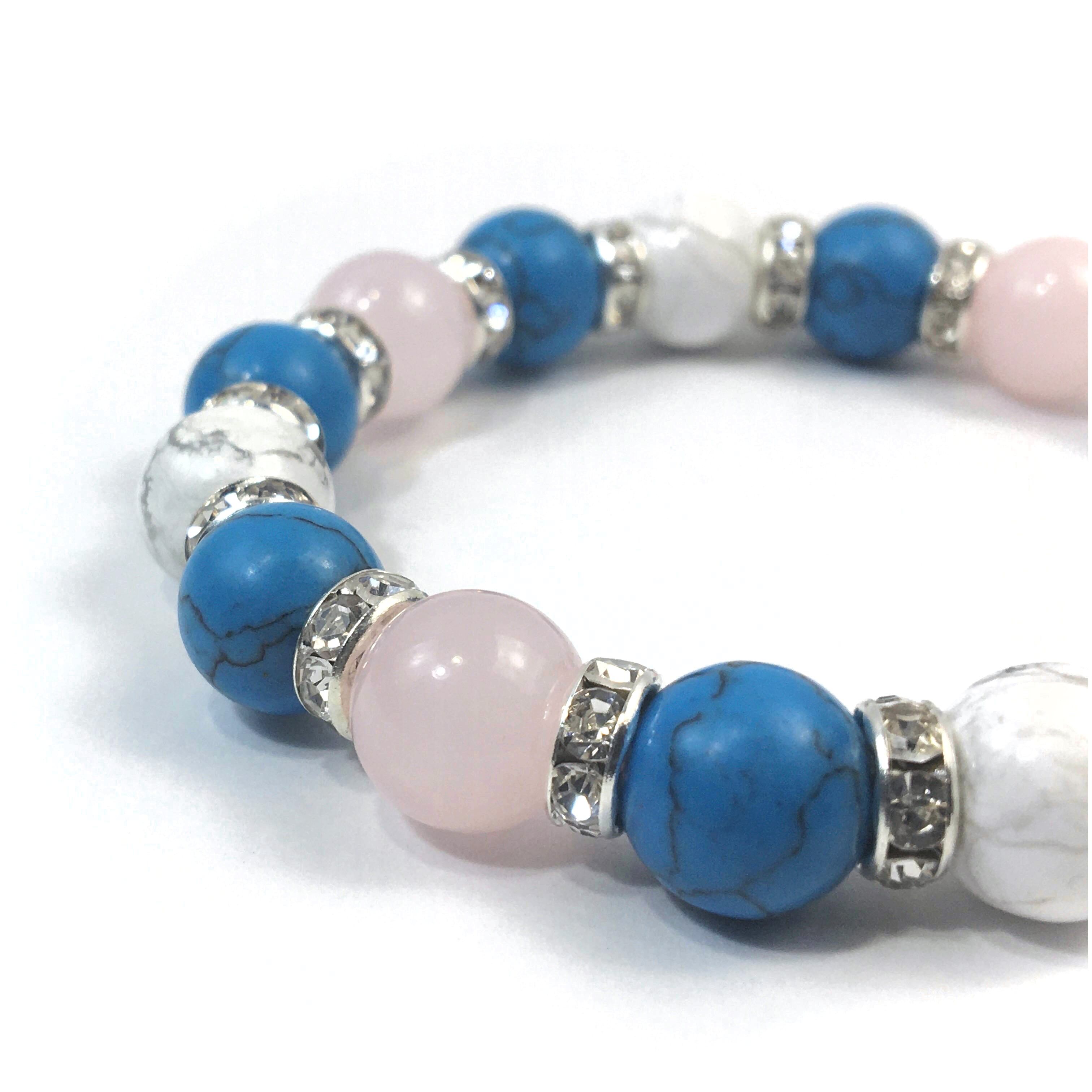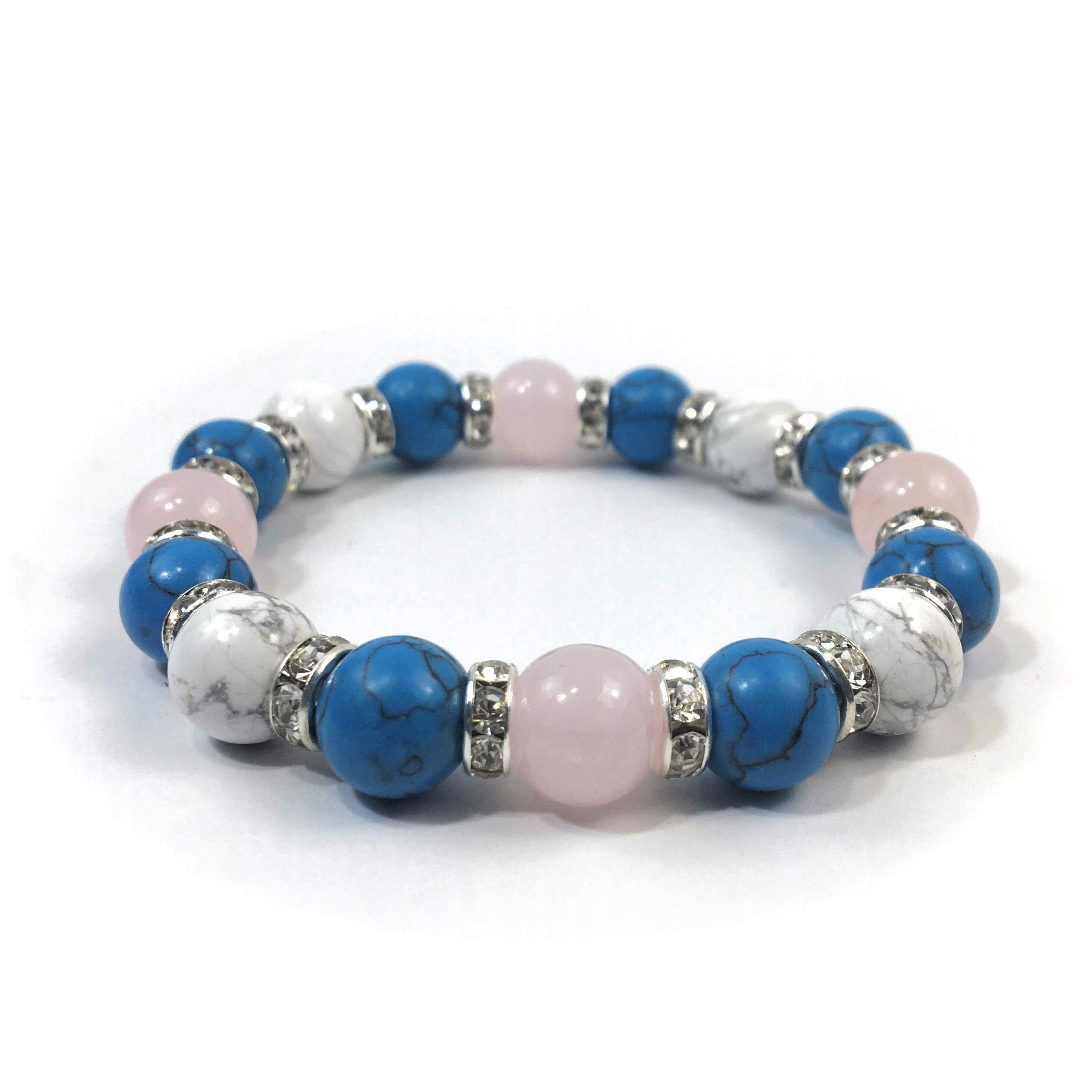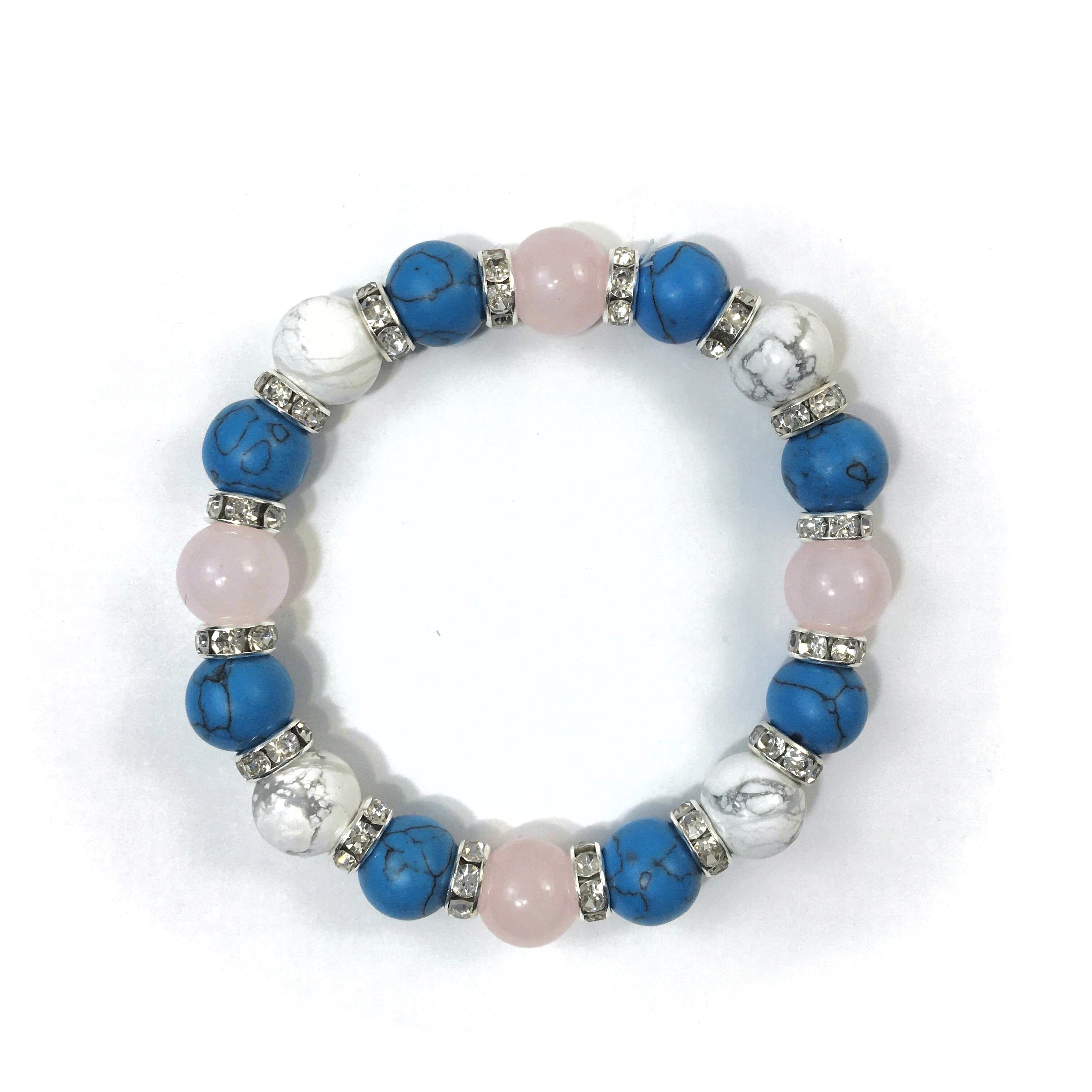 ローズクォーツ×ハウライト×ターコイズ パワーストーンブレス 10mm(シルバー)メンズ・レディース 男性・女性 数珠ブレス 開運 ☆