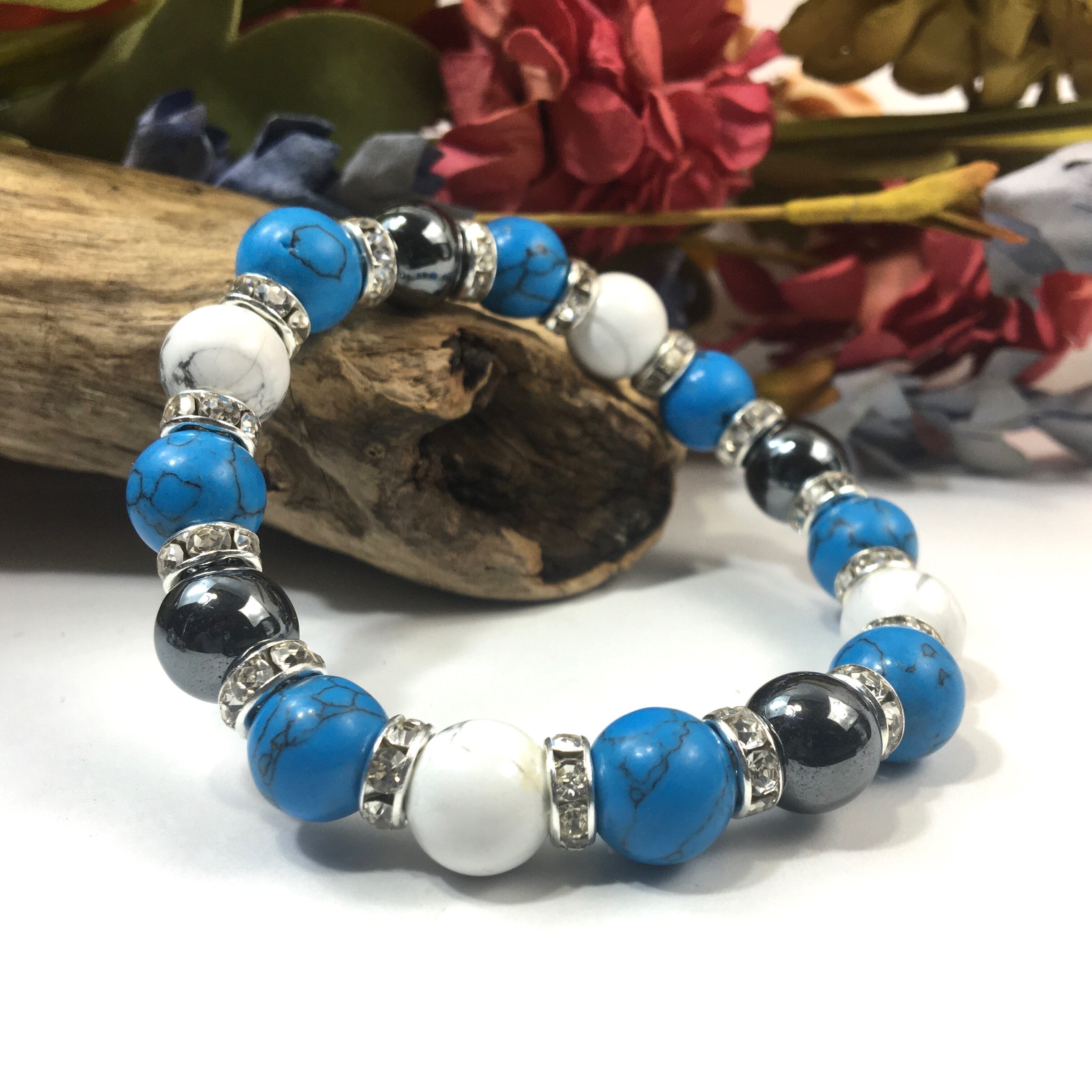 ヘマタイト×ハウライト×ターコイズ パワーストーンブレス 10mm(シルバー)メンズ・レディース 男性・女性 数珠ブレス 開運 ☆