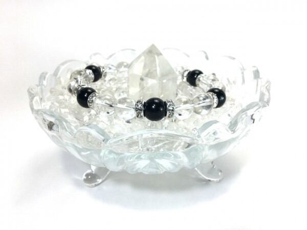 水晶×オニキス パワーストーン ブレスレット 天然石 10mm(シルバー)メンズ・レディース 男性・女性 数珠ブレス 開運 ☆