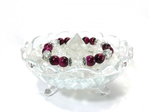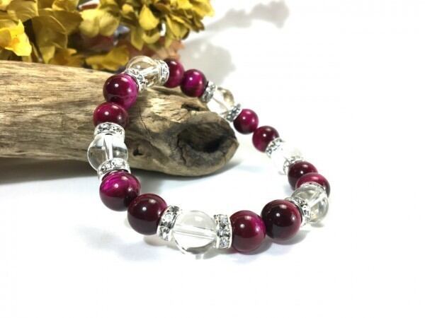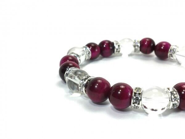 ピンクタイガーアイ×水晶 パワーストーン ブレスレット 天然石 10mm(シルバー)メンズ・レディース 男性・女性 数珠ブレス 開運 ☆