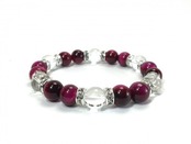 こちらは、ピンクタイガーアイと水晶を組み合わせたブレスレットです。間にはロンデルを挟み高級感あるデザインに仕上がっています。石大きさは腕にも馴染みやすいように10mm玉で内周約17cm(伸可能)です。数に限りがございますので気になる方はお早めにどうぞ。