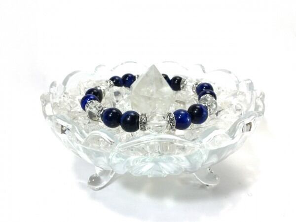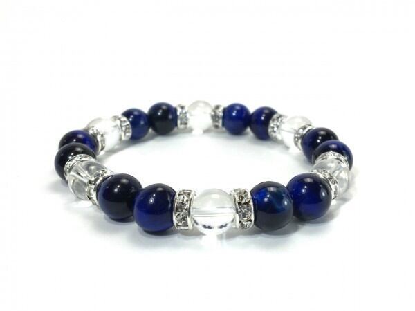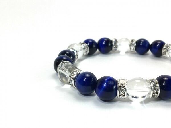 ブルータイガーアイ×水晶 パワーストーン ブレスレット 天然石 10mm(シルバー)メンズ・レディース 男性・女性 数珠ブレス 開運 ☆