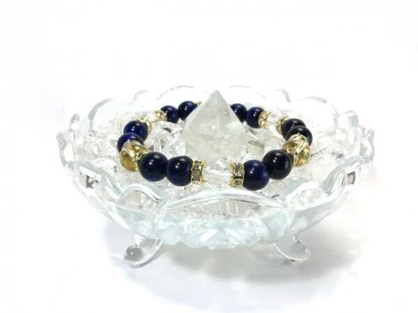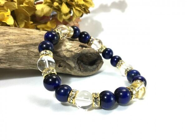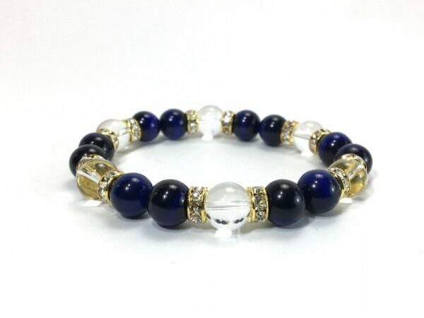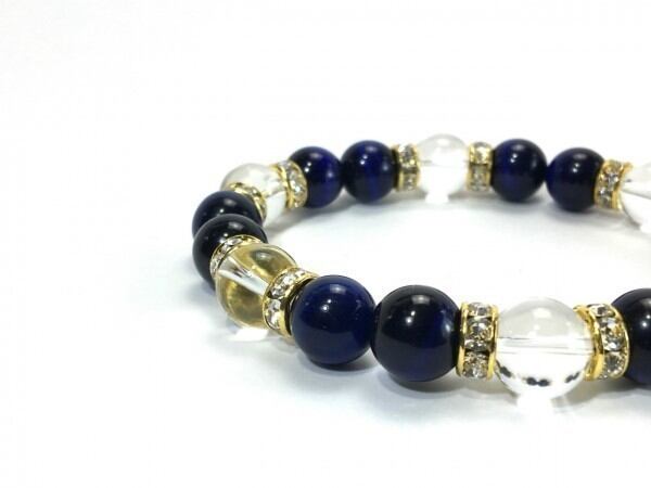 こちらは、ブルータイガーアイと水晶を組み合わせたブレスレットです。間にはロンデルを挟み高級感あるデザインに仕上がっています。石大きさは腕にも馴染みやすいように10mm玉で内周約17cm(伸可能)です。数に限りがございますので気になる方はお早めにどうぞ。