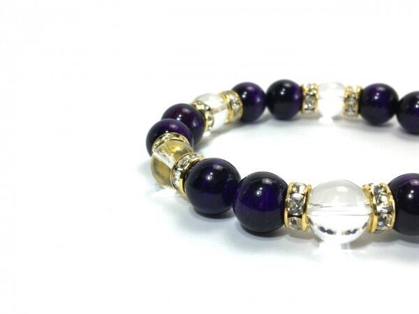 パープルタイガーアイ×水晶 パワーストーン ブレスレット 天然石 10mm(ゴールド)メンズ・レディース 男性・女性 数珠ブレス 開運 ☆