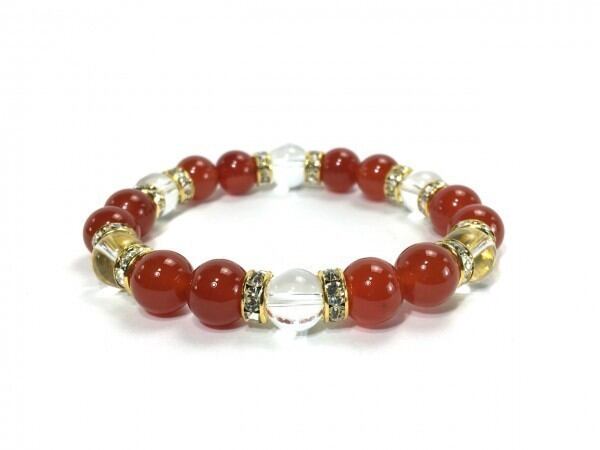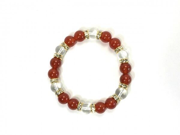 赤瑪瑙×水晶 パワーストーン ブレスレット 天然石 10mm(ゴールド)メンズ・レディース 男性・女性 数珠ブレス 開運 ☆