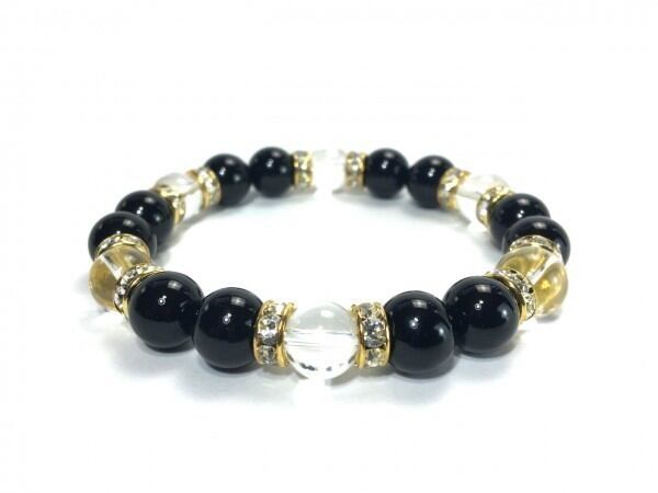 オニキス×水晶 パワーストーン ブレスレット 天然石 10mm(ゴールド)メンズ・レディース 男性・女性 数珠ブレス 開運 ☆
