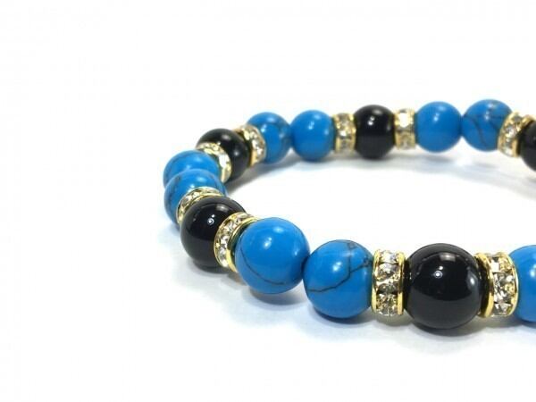 ターコイズ×オニキス パワーストーン ブレスレット 10mm(ゴールド)メンズ・レディース 男性・女性 数珠ブレス 開運 ☆
