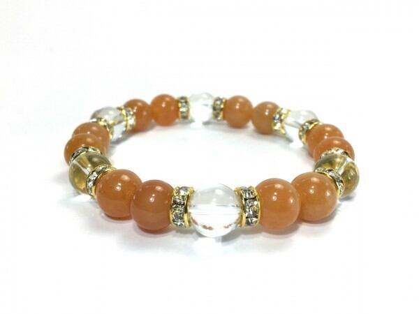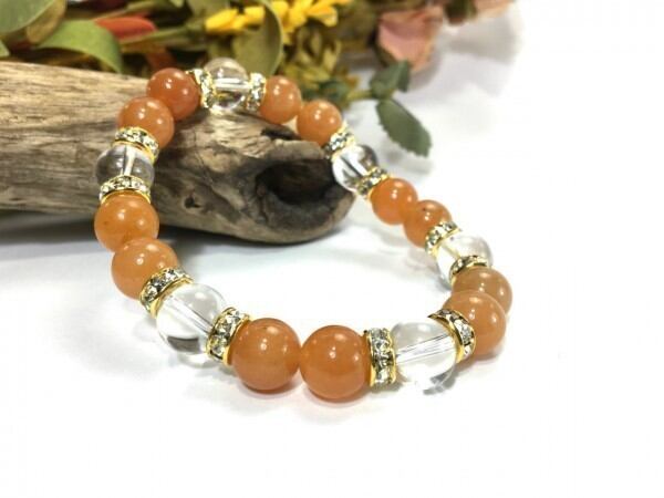 こちらは、レッドアベンチュリンと水晶を組み合わせたブレスレットです。間にはロンデルを挟み高級感あるデザインに仕上がっています。石大きさは腕にも馴染みやすいように10mm玉で内周約17cm(伸可能)です。数に限りがございますので気になる方はお早めにどうぞ。