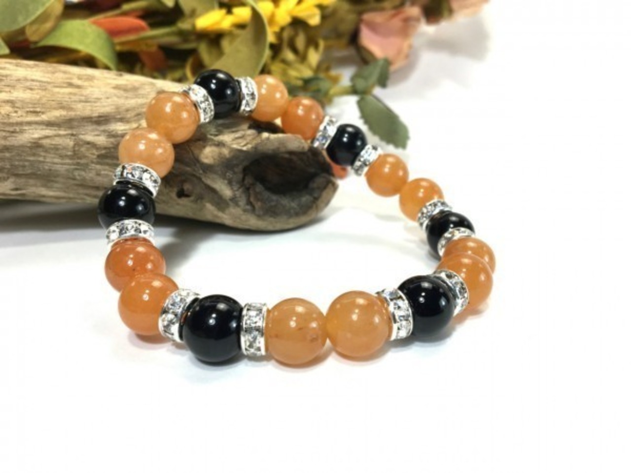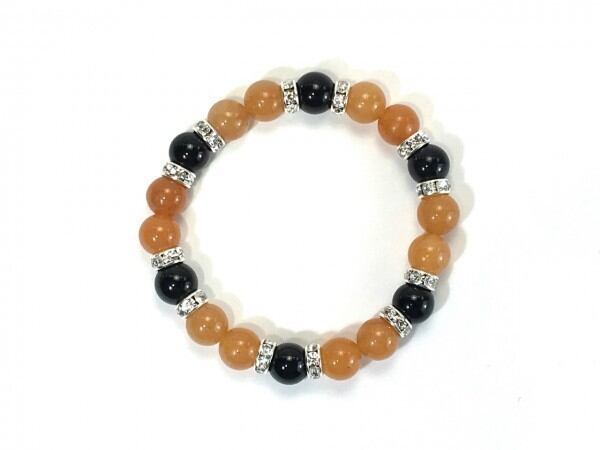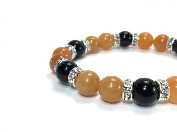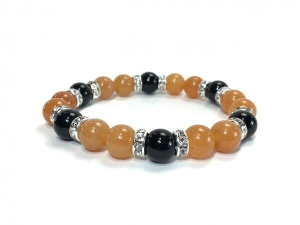 こちらは、レッドアベンチュリンとオニキスを組み合わせたブレスレットです。間にはロンデルを挟み高級感あるデザインに仕上がっています。石大きさは腕にも馴染みやすいように10mm玉で内周約17cm(伸可能)です。数に限りがございますので気になる方はお早めにどうぞ。