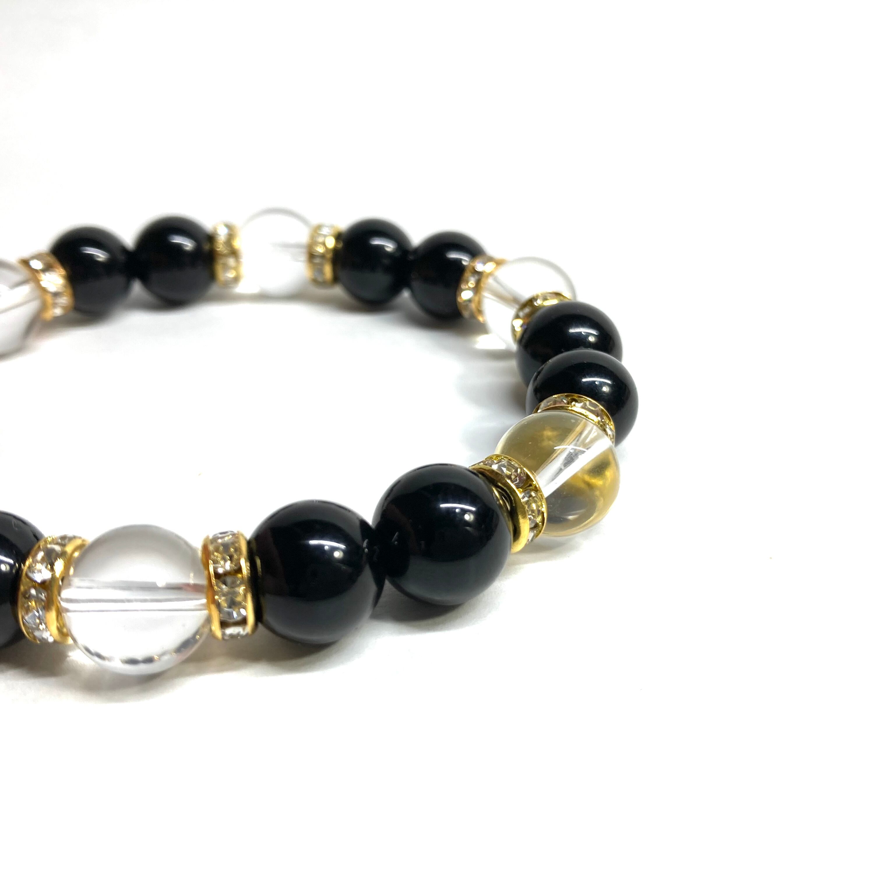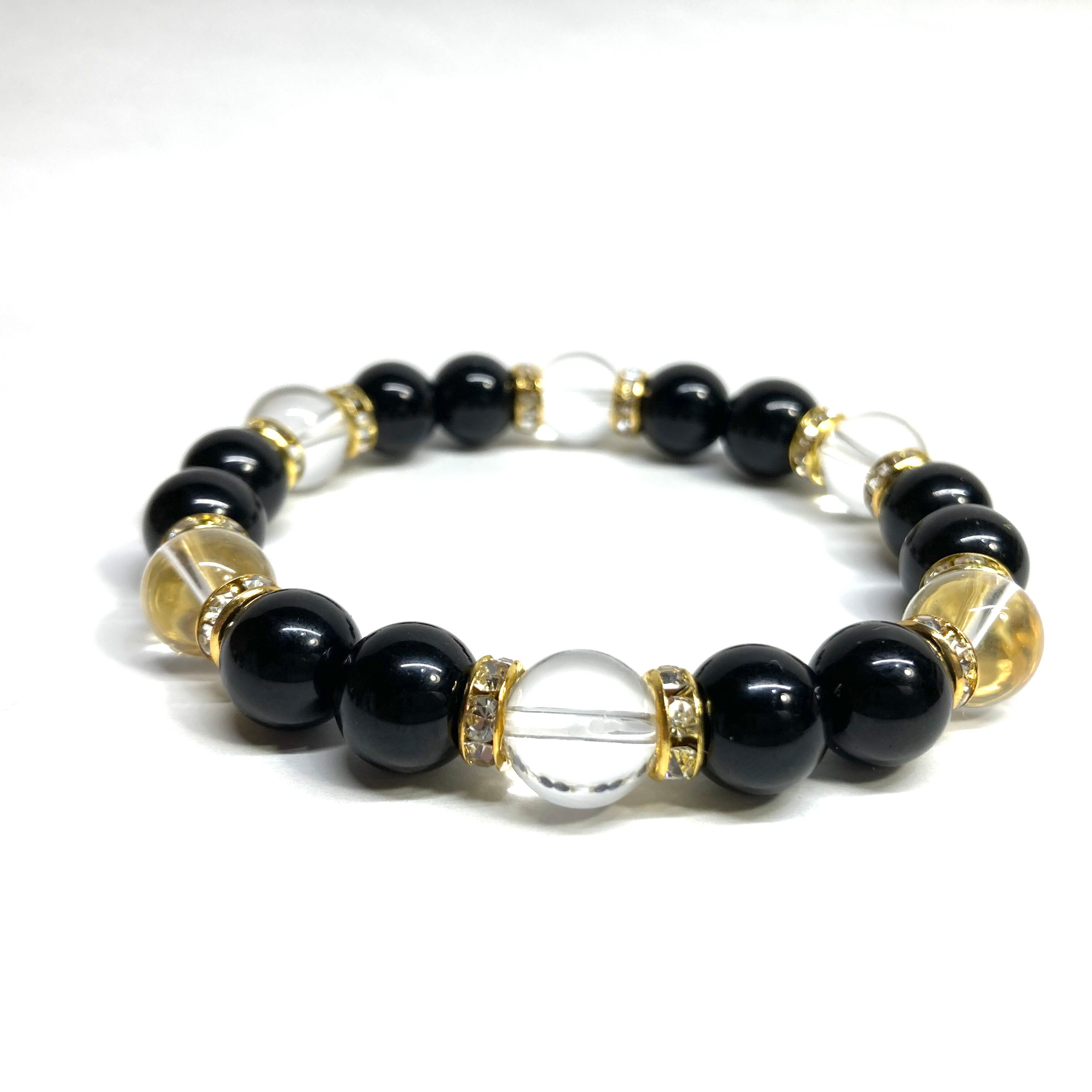 モリオン&水晶 パワーストーン ブレスレット 天然石ブレス (ゴールド) 10mm メンズ・レディース 厄除け 開運 願望成就 魔よけ お守り ☆