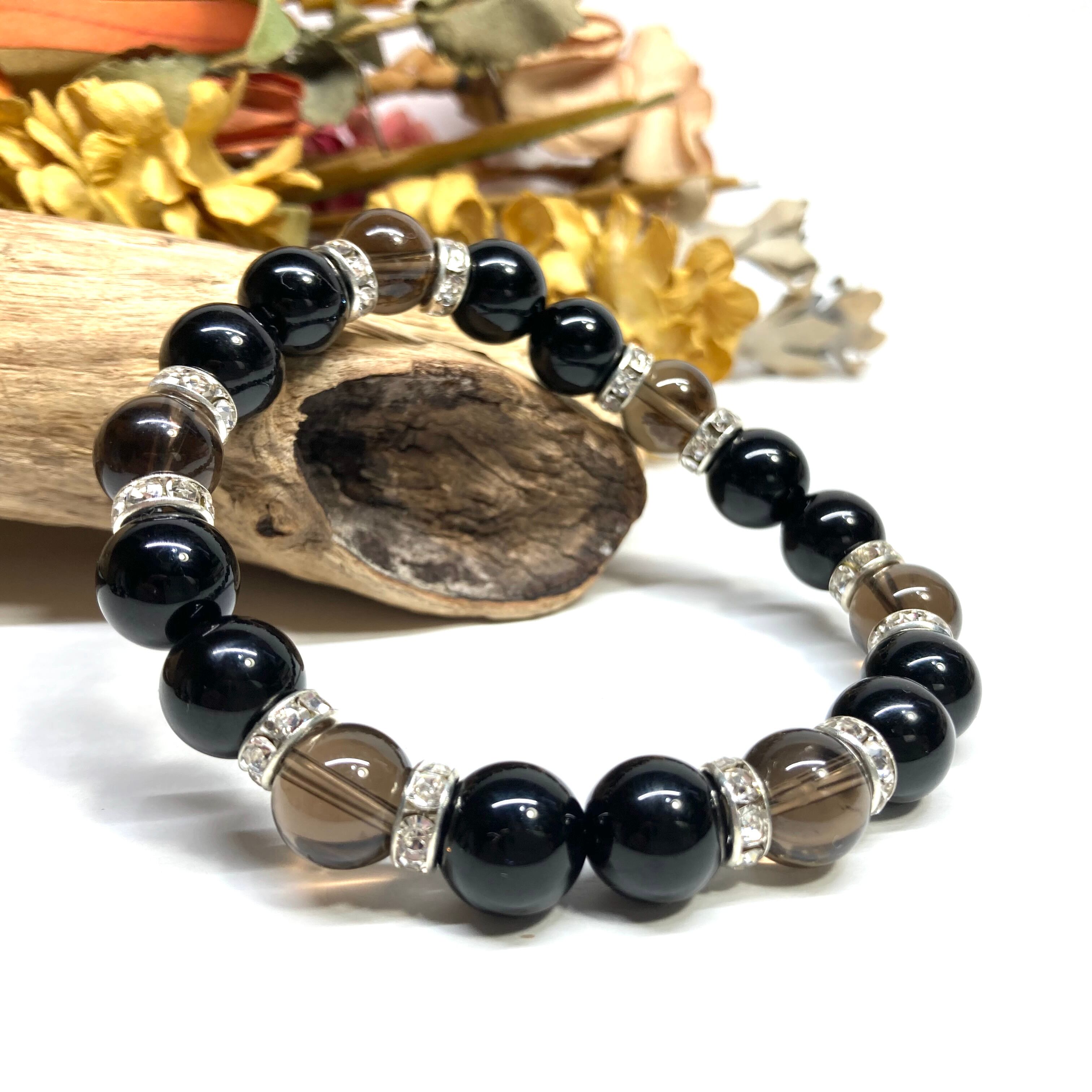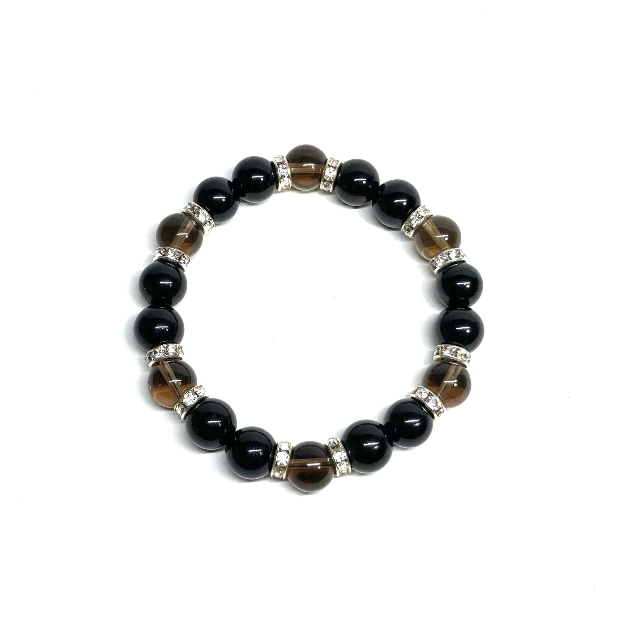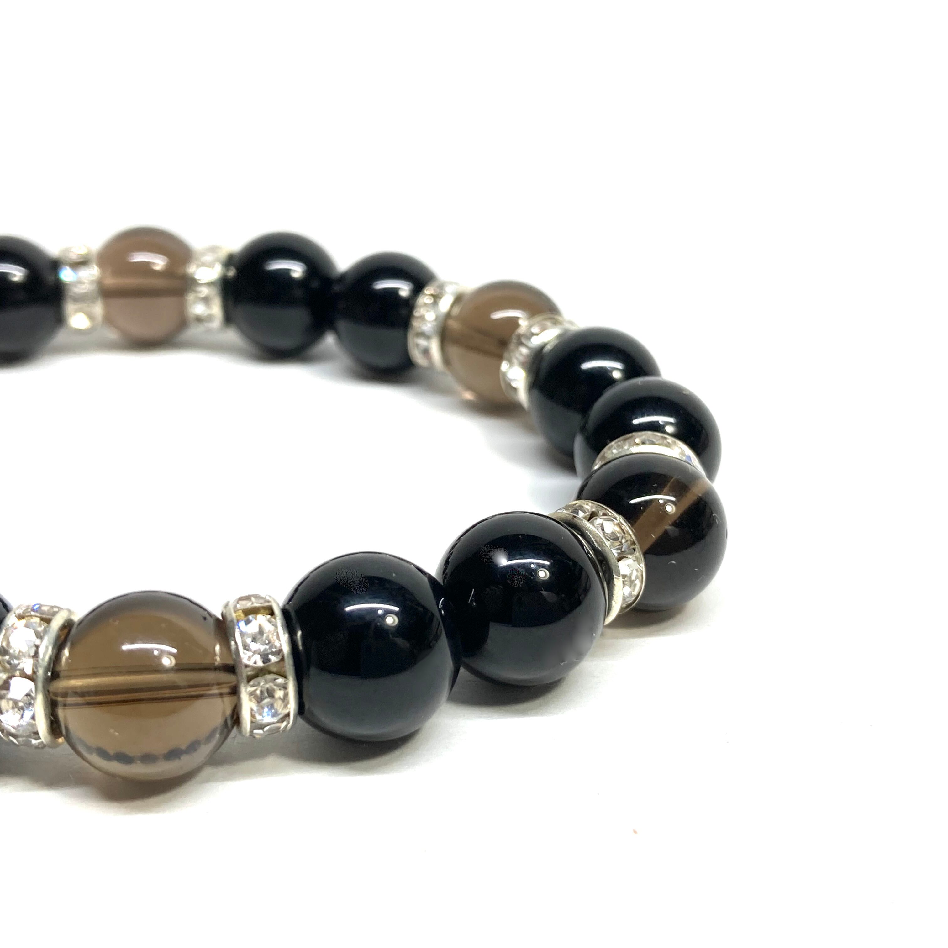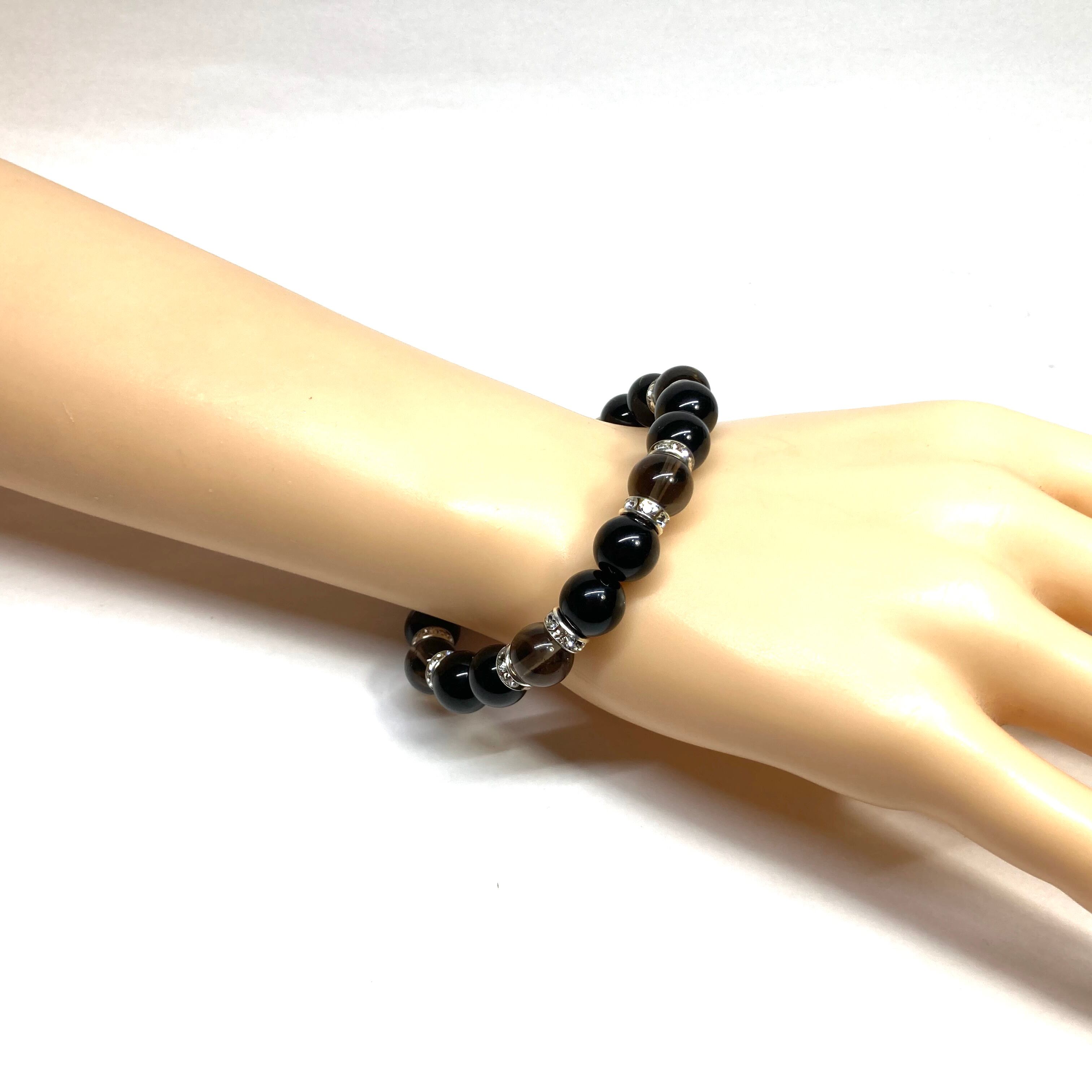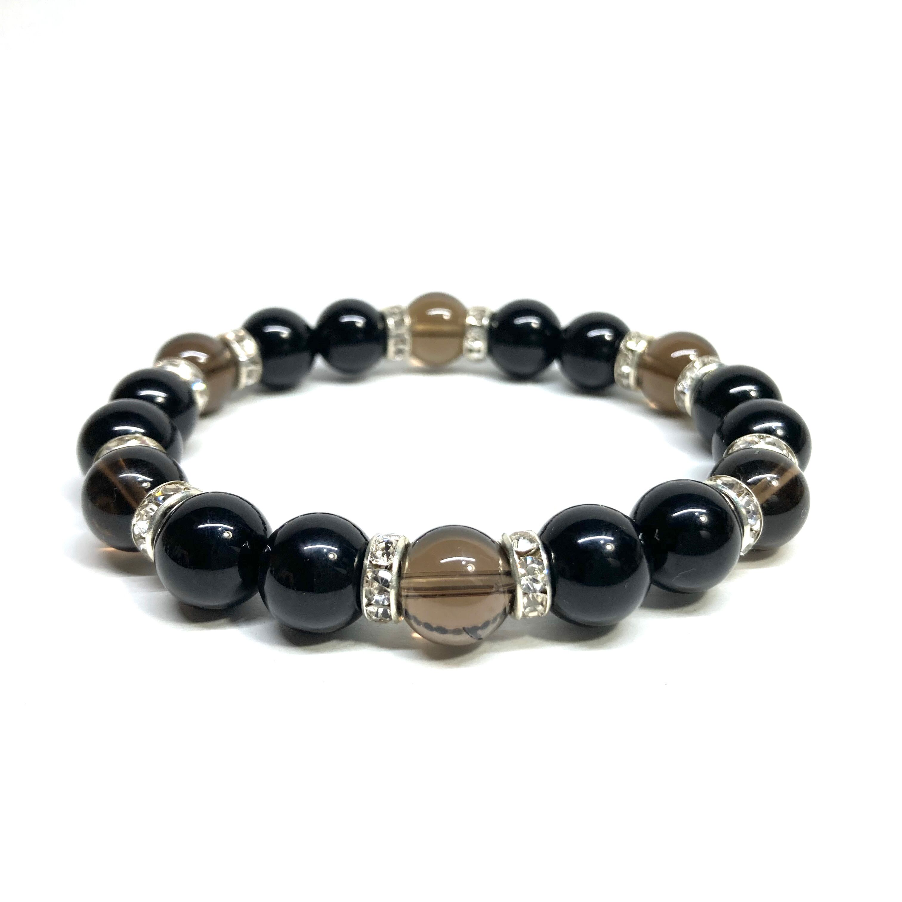 モリオン&スモーキークォーツ パワーストーン ブレスレット 天然石ブレス (シルバー) 10mm メンズ・レディース 厄除け 癒し お守り ☆