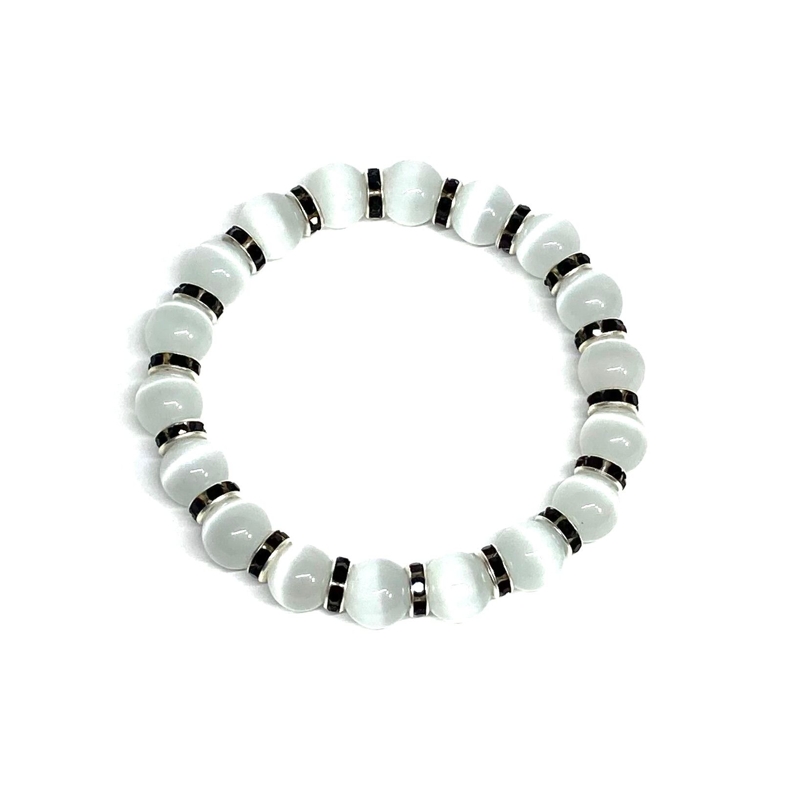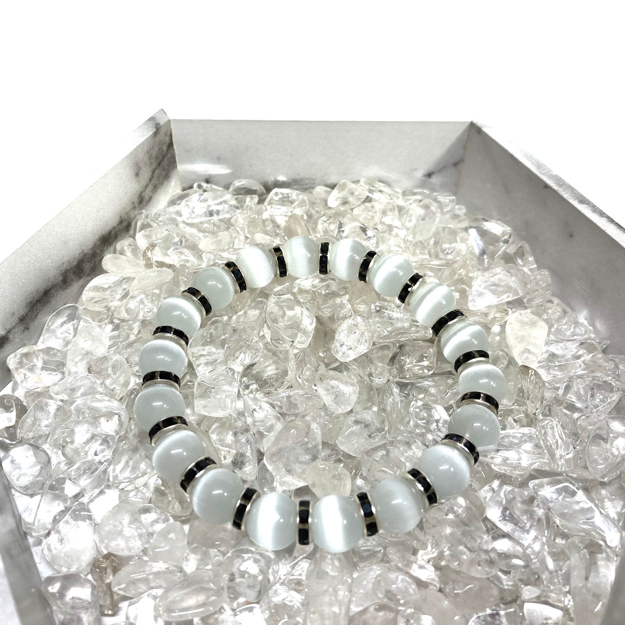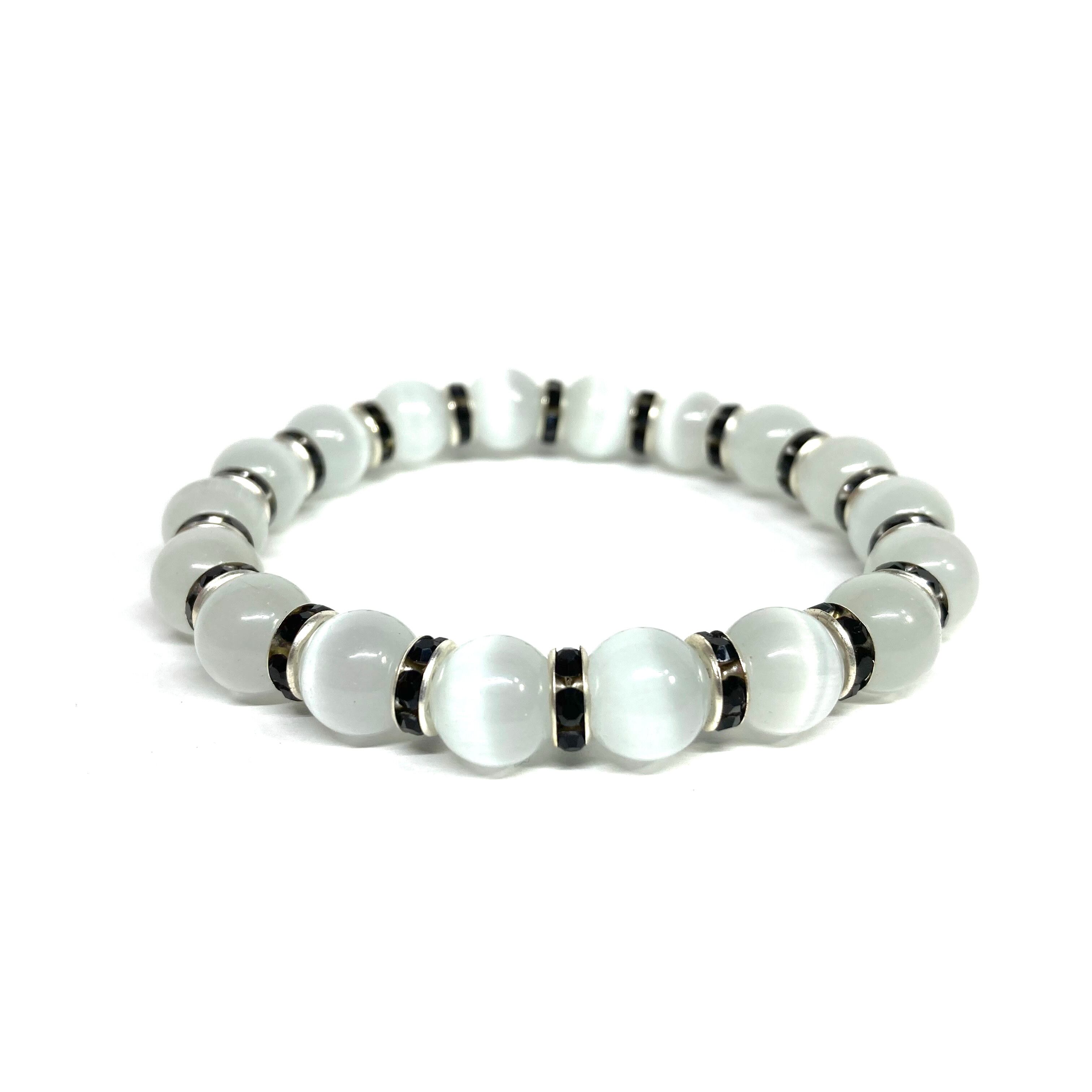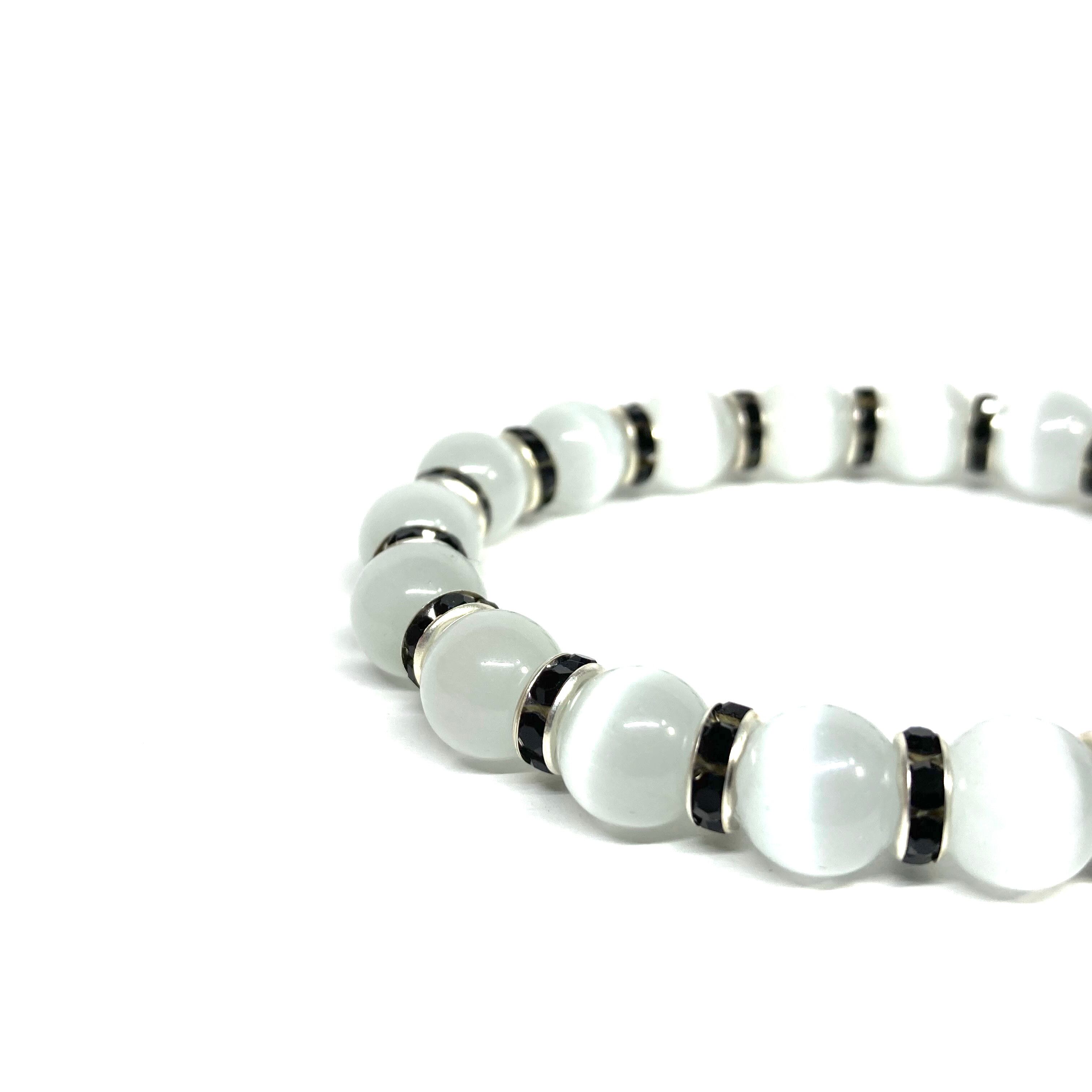 キャッツアイ(ホワイト) パワーストーン ブレスレット (ブラック) メンズ・レディース 男性・女性 数珠ブレス 開運