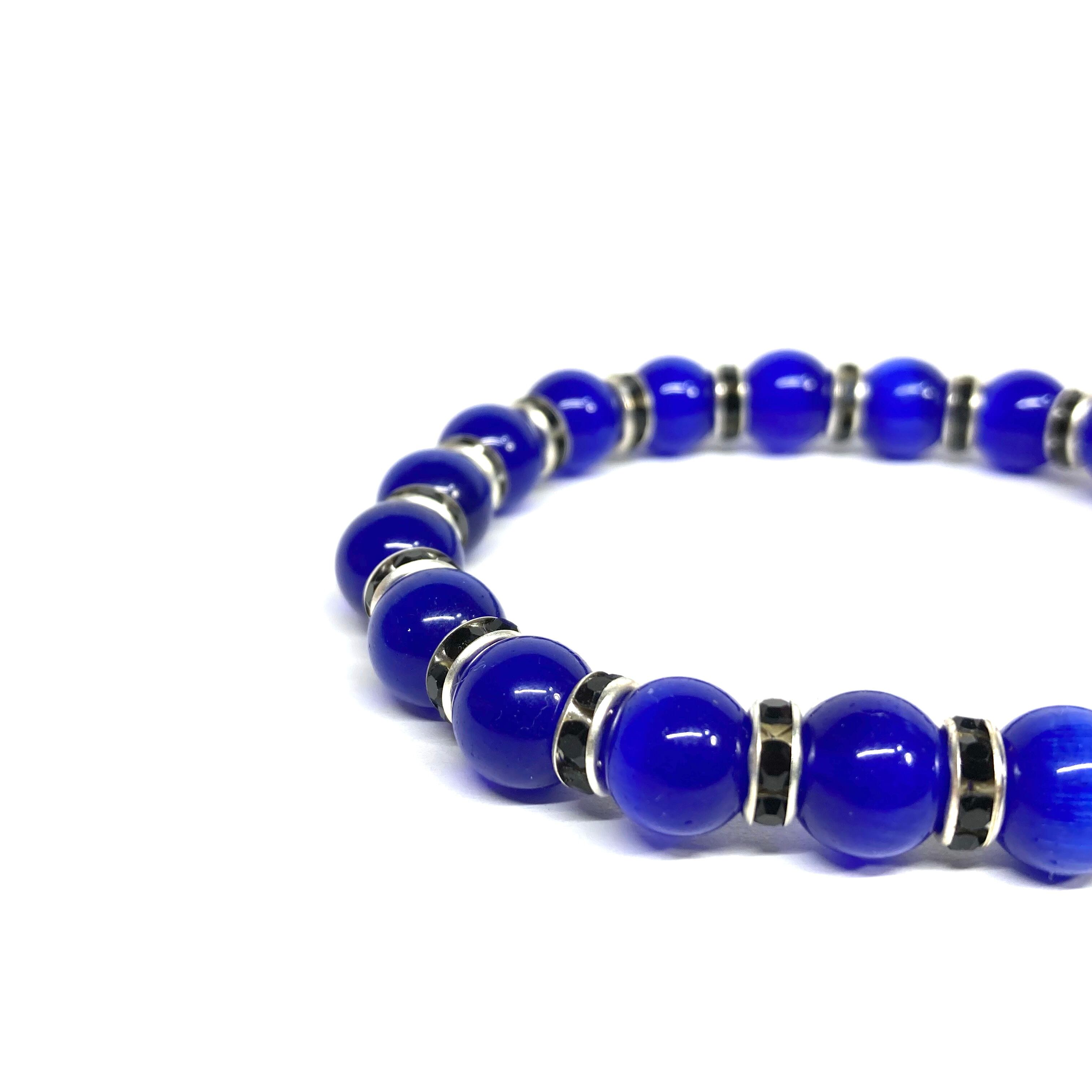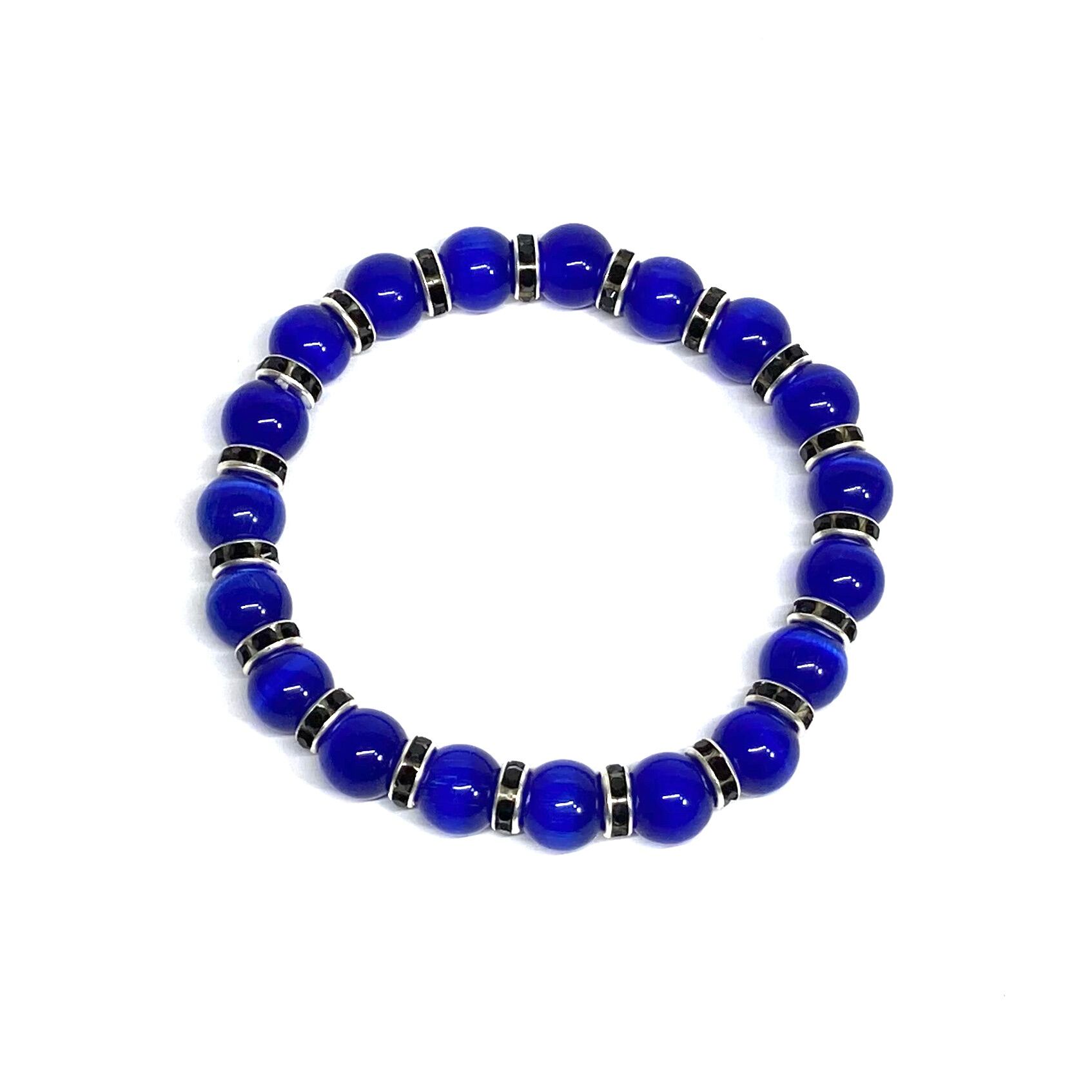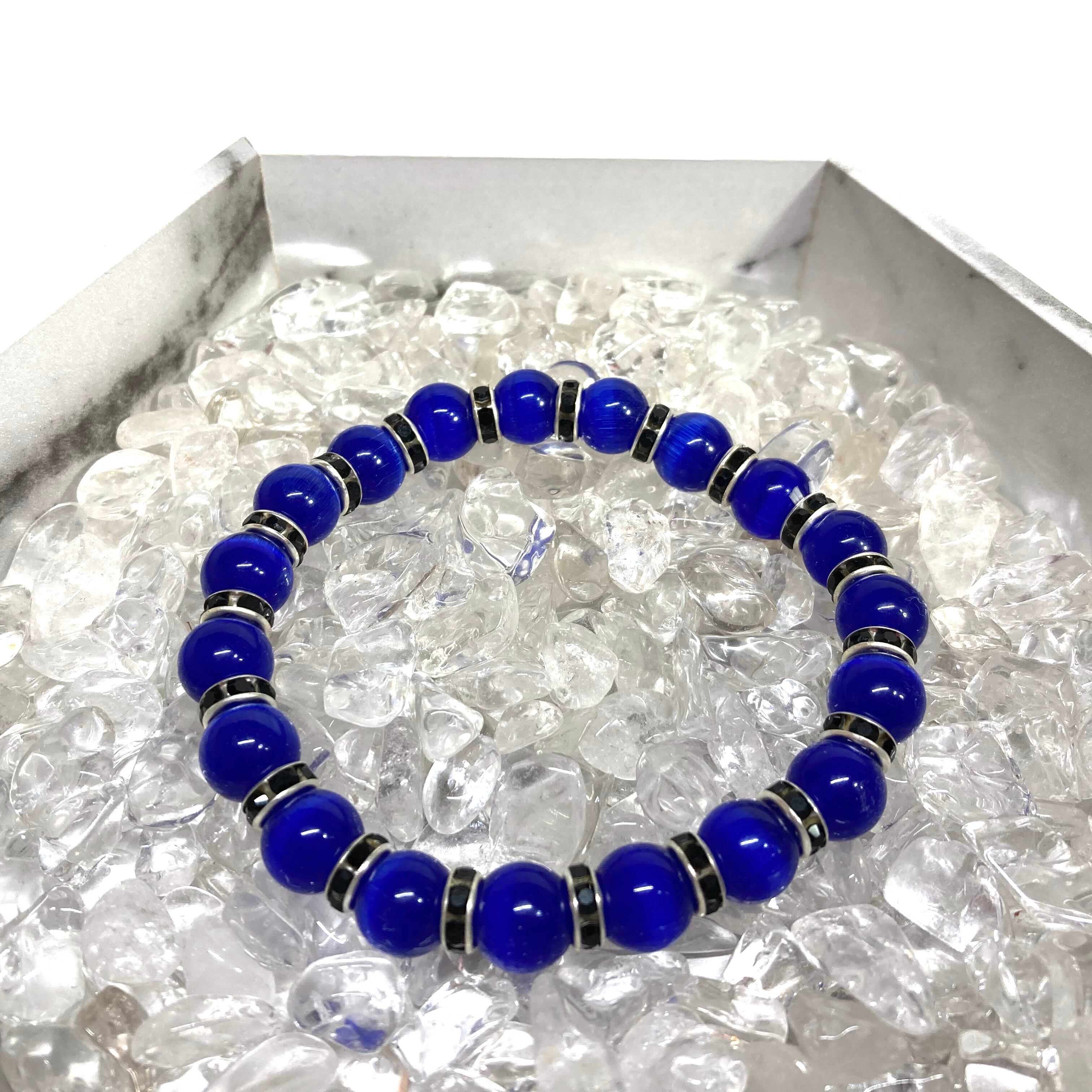 キャッツアイ(ダークブルー) パワーストーン ブレスレット (ブラック) メンズ・レディース 男性・女性 数珠ブレス 開運