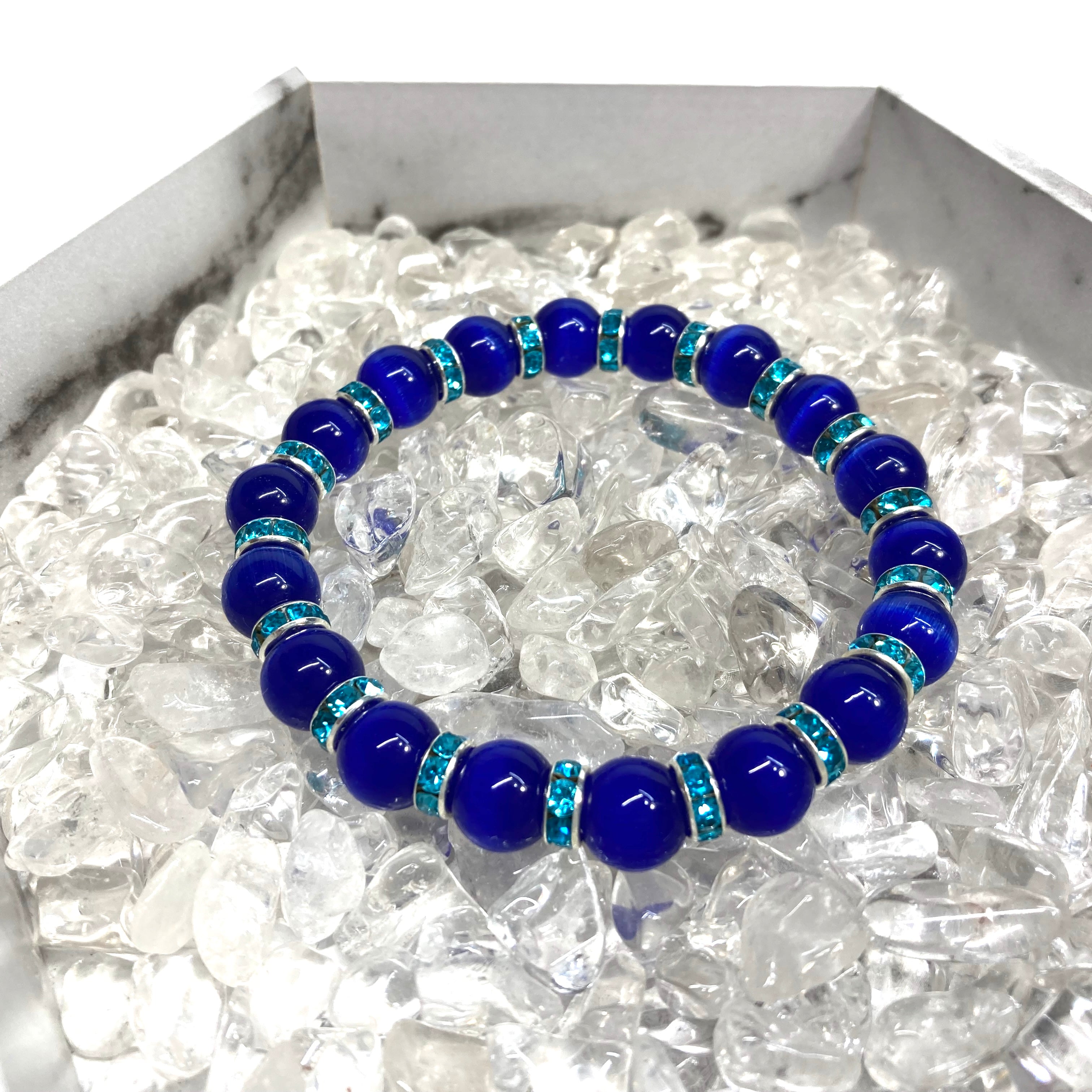 キャッツアイ(ダークブルー) パワーストーン ブレスレット (ライトブルー) メンズ・レディース 男性・女性 数珠ブレス 開運