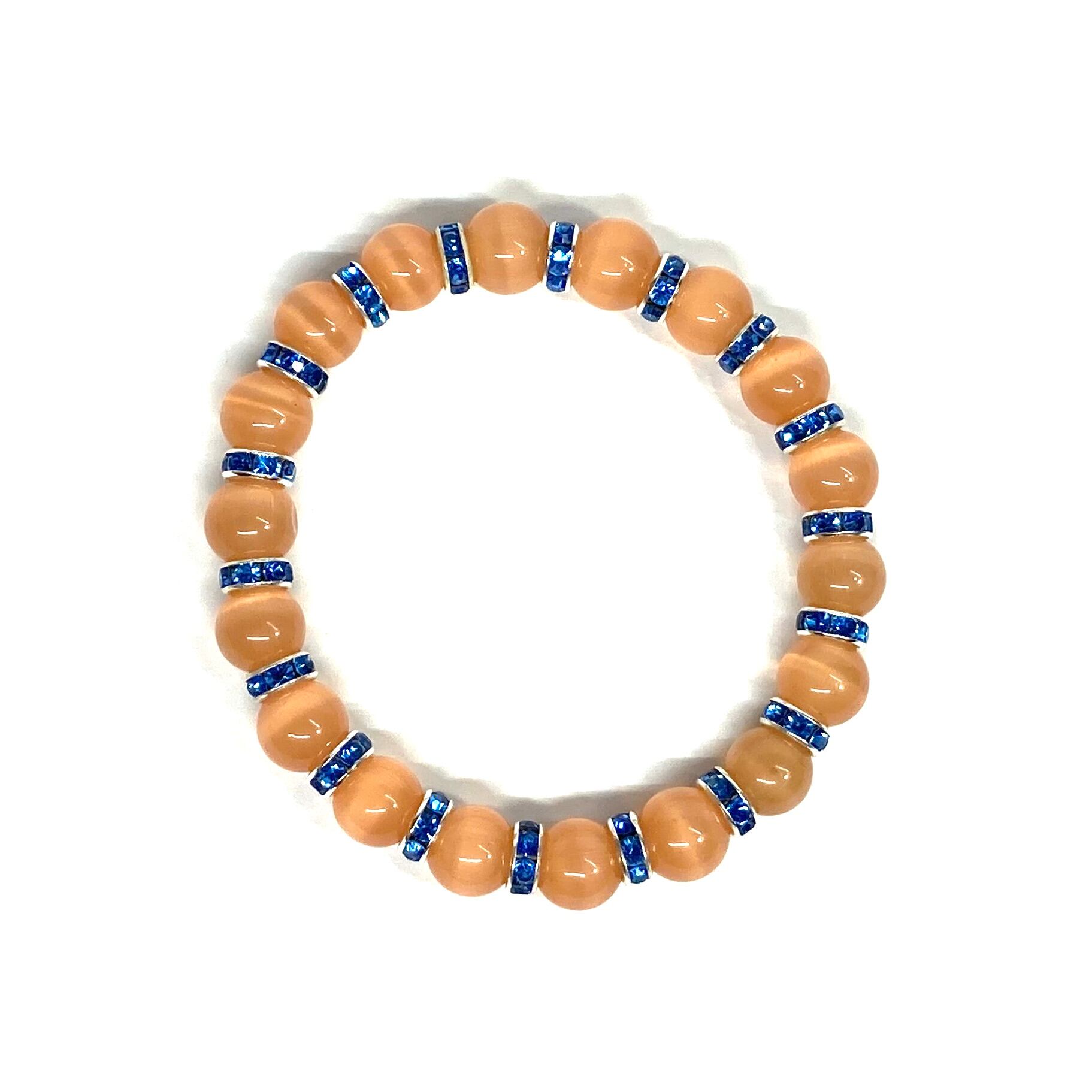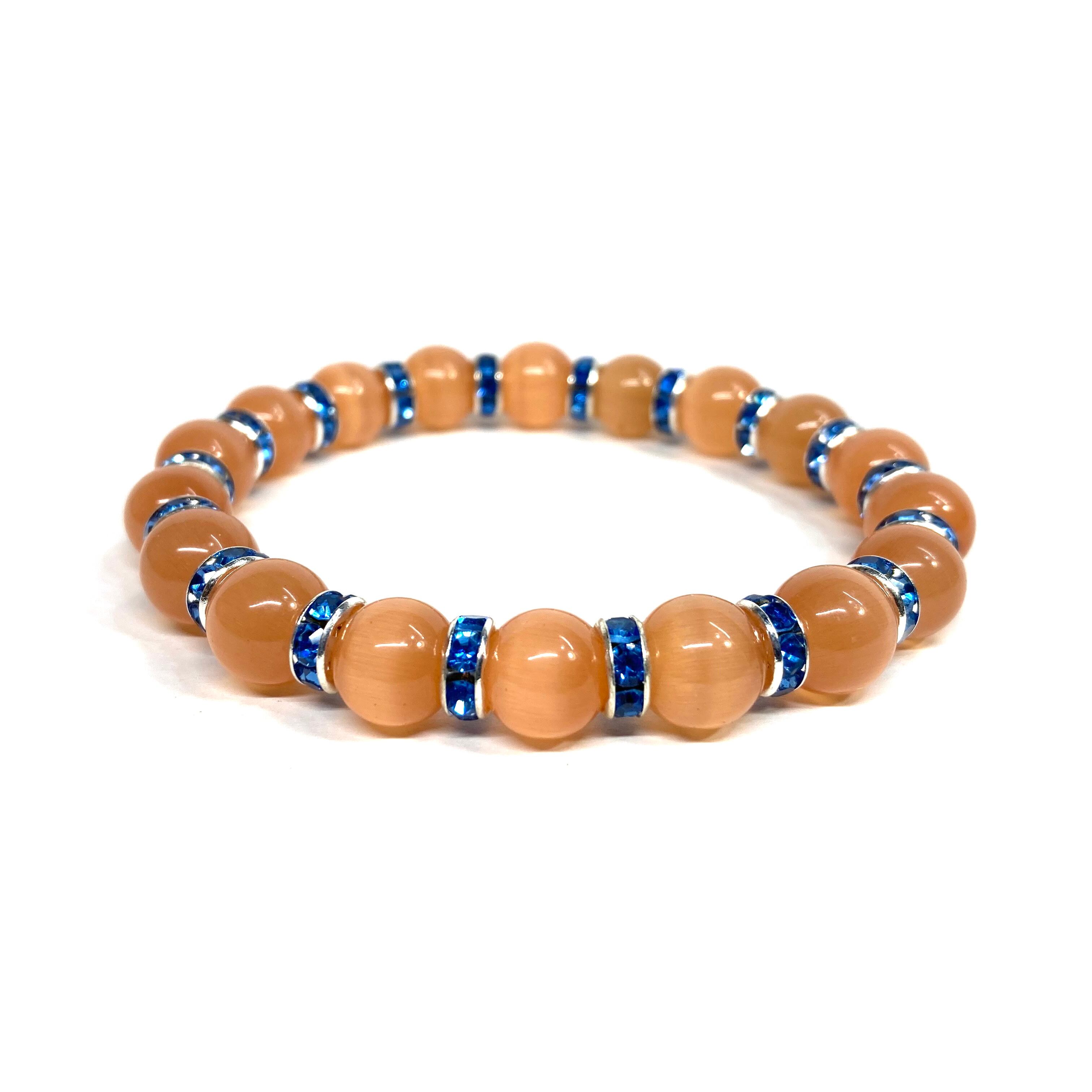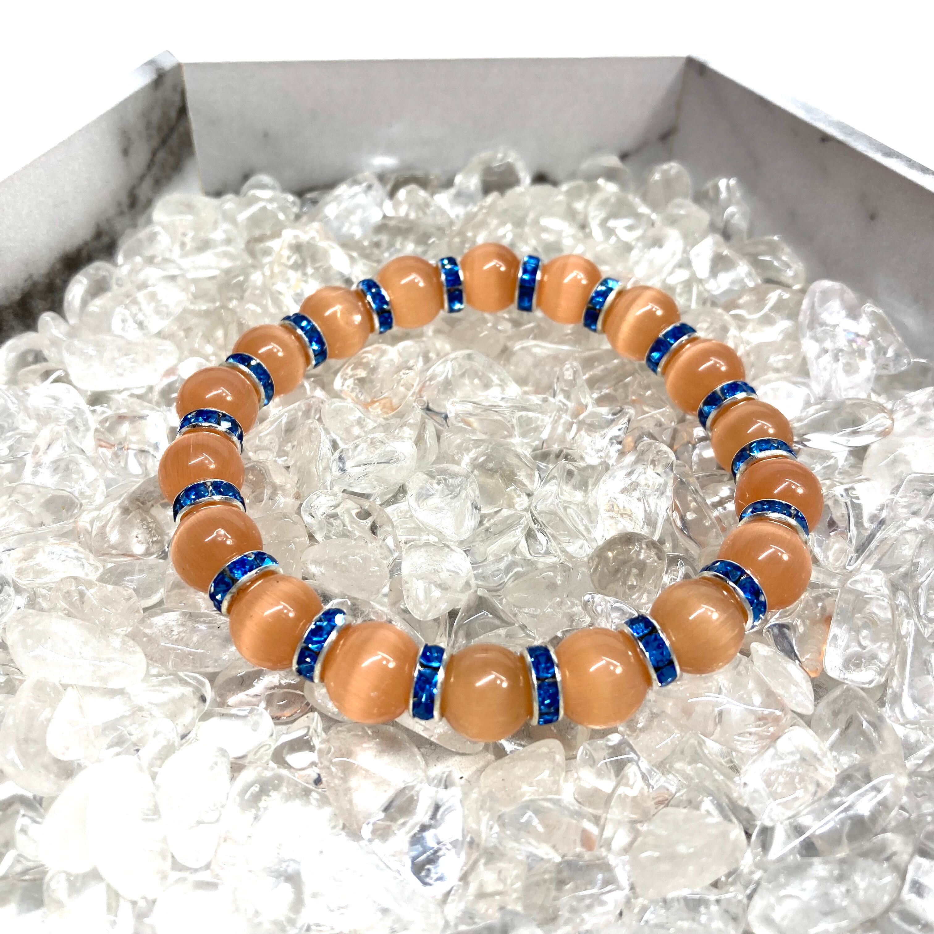 キャッツアイ(オレンジ) パワーストーン ブレスレット (ブルー) メンズ・レディース 男性・女性 数珠ブレス 開運