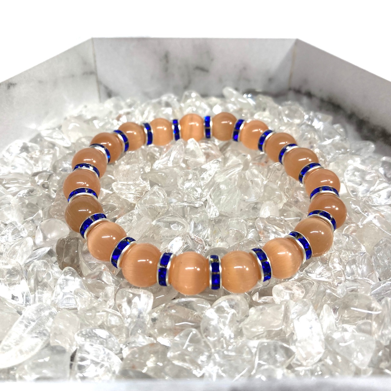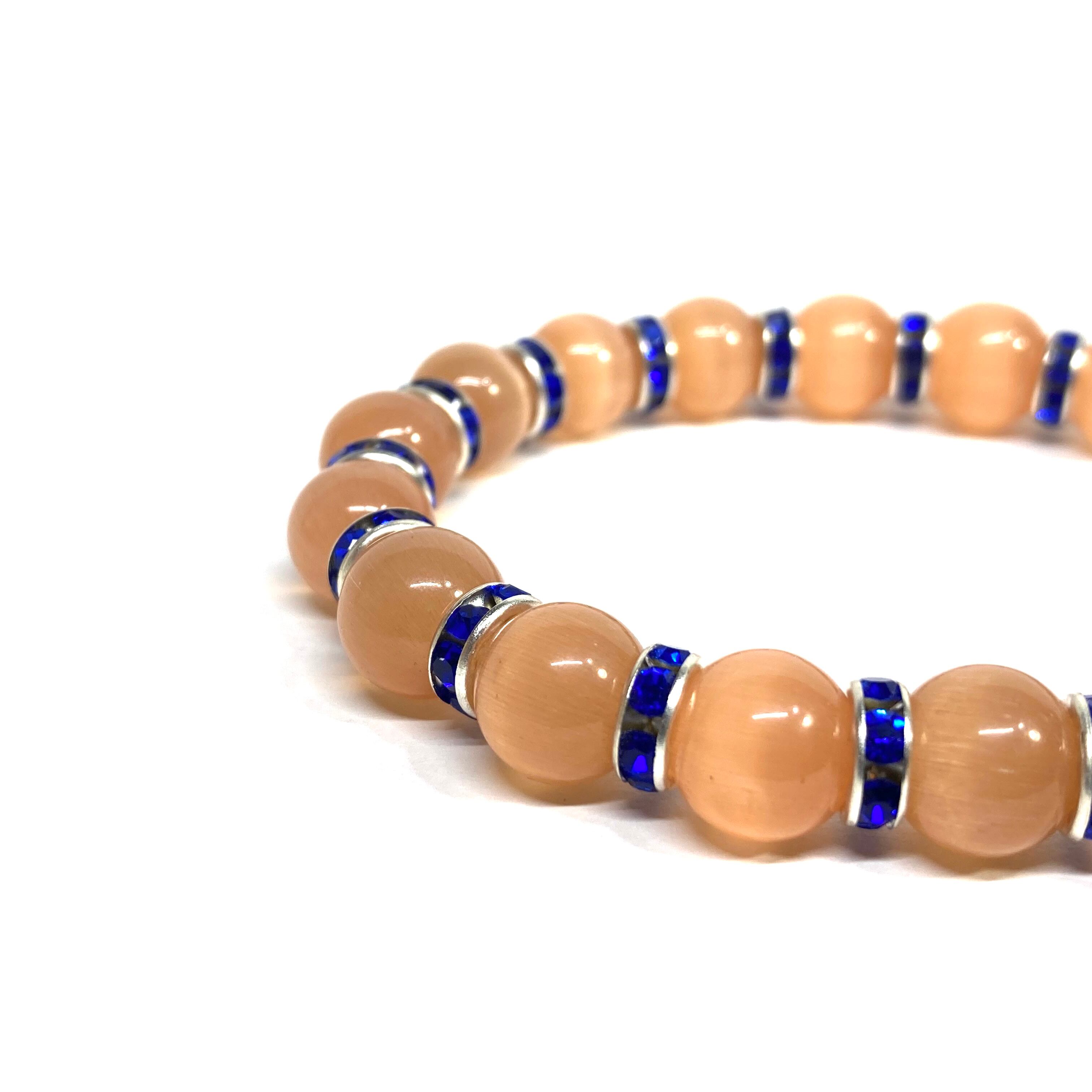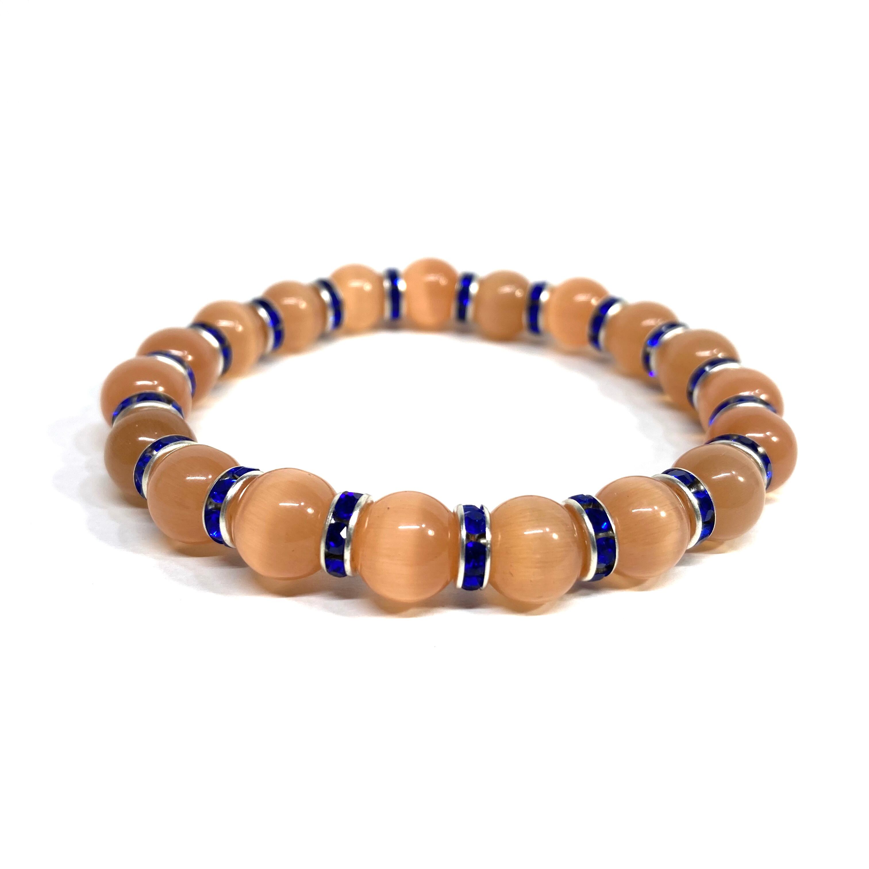 キャッツアイ(オレンジ) パワーストーン ブレスレット (ダークブルー) メンズ・レディース 男性・女性 数珠ブレス 開運