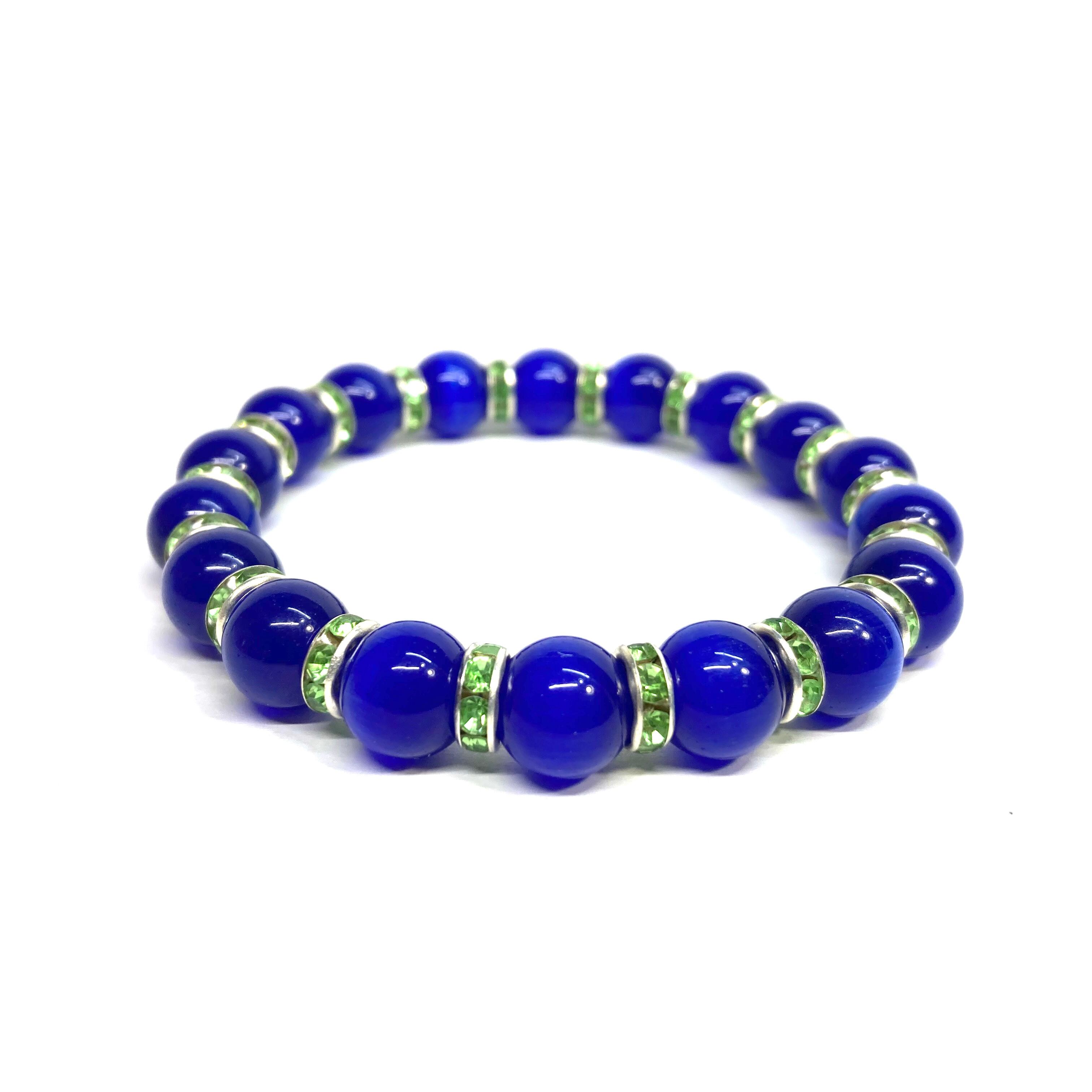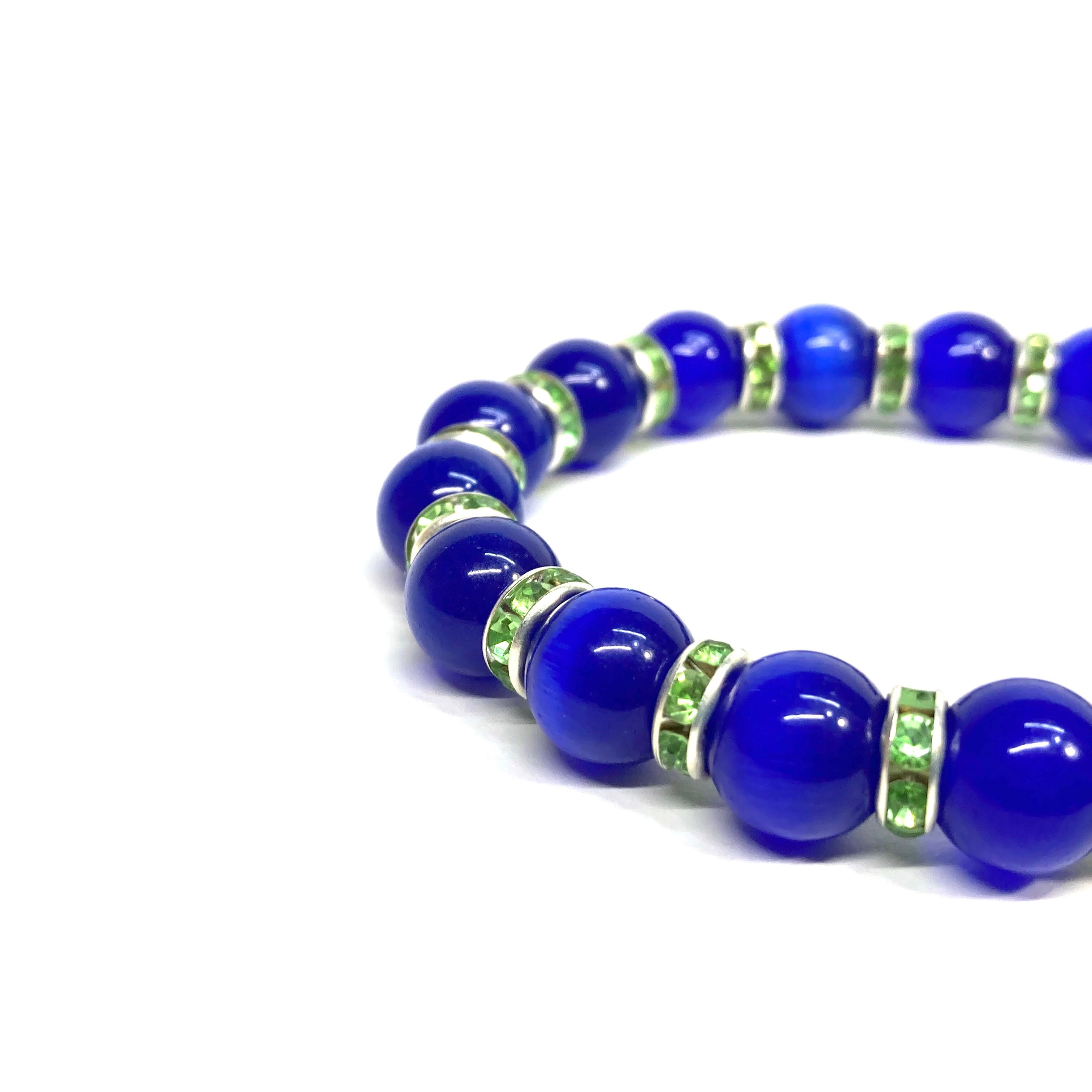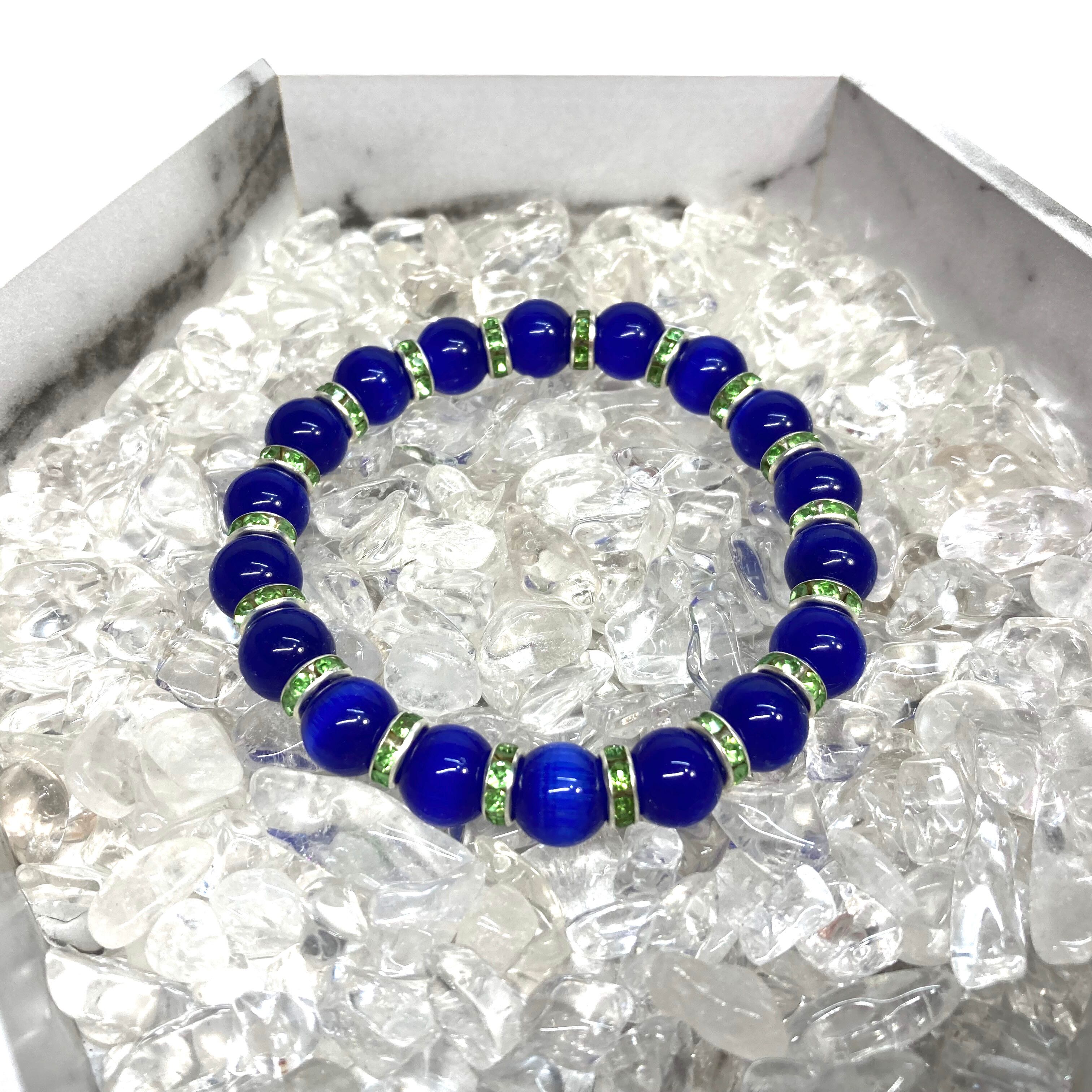 キャッツアイ(ダークブルー) パワーストーン ブレスレット (グリーン) メンズ・レディース 男性・女性 数珠ブレス 開運