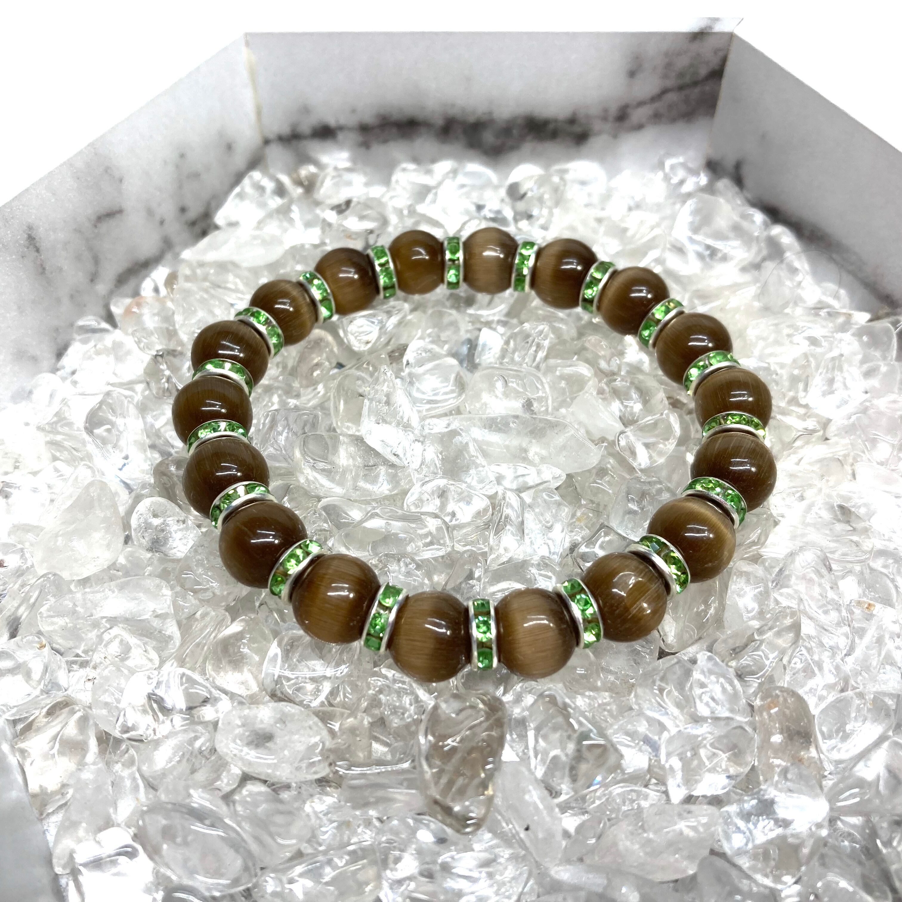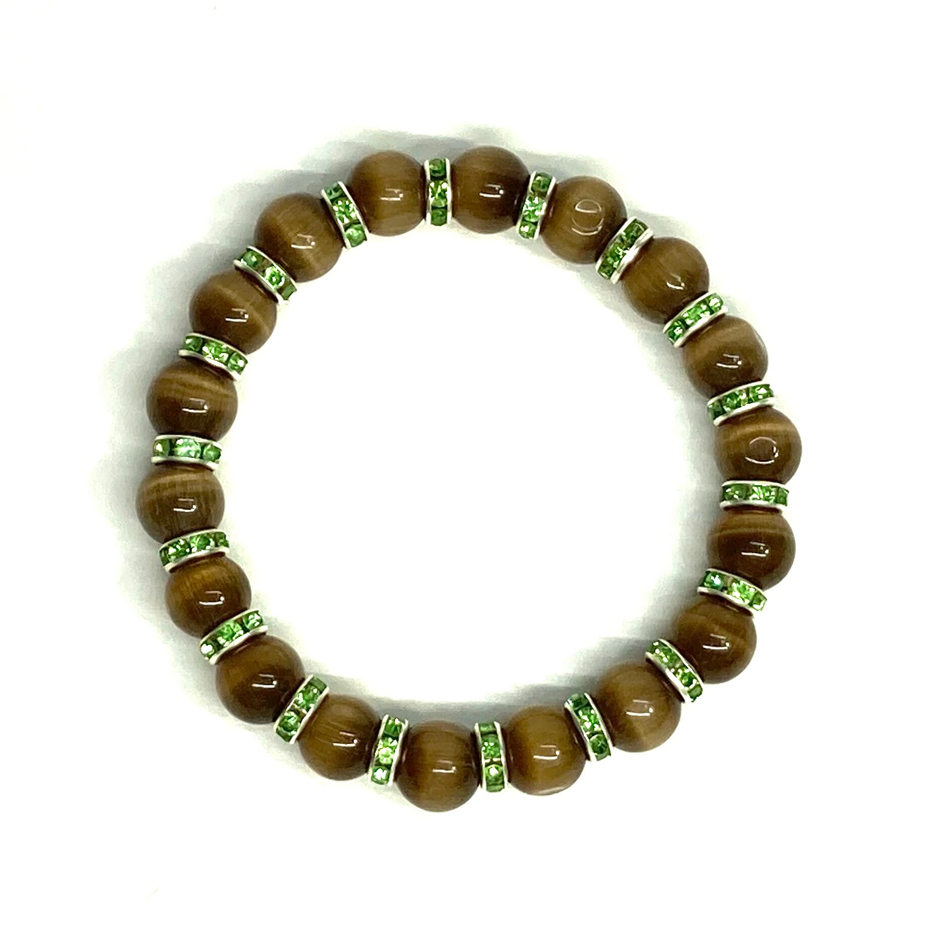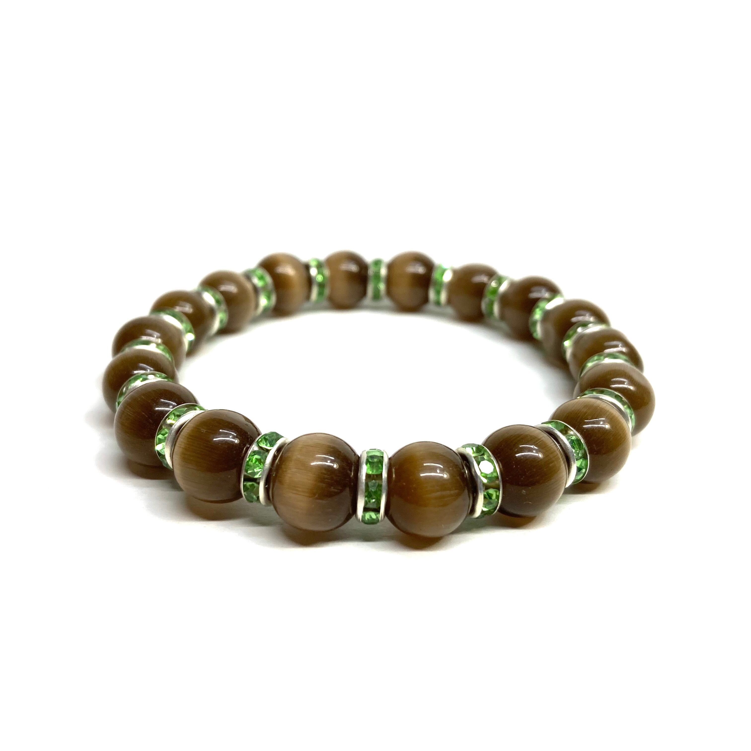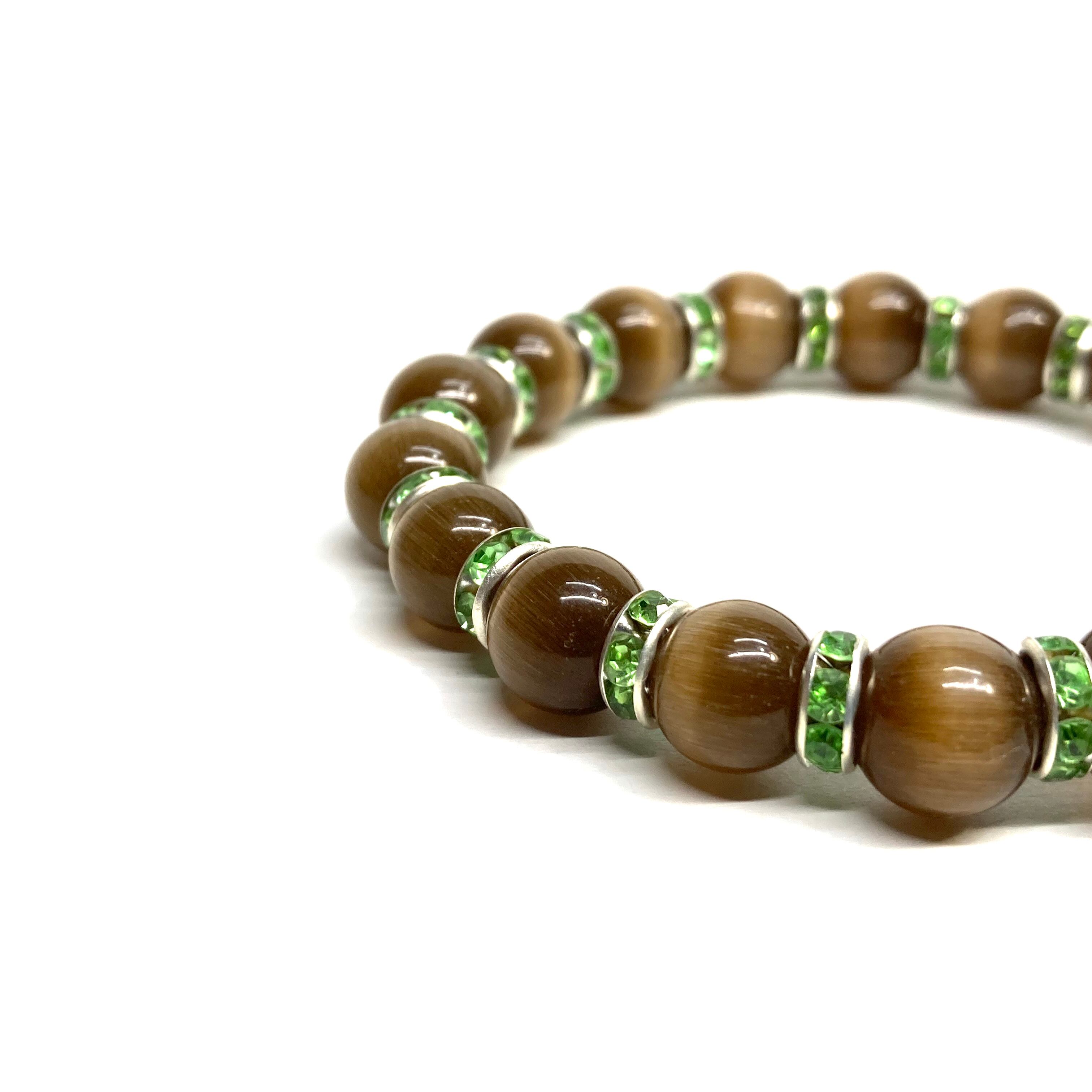 キャッツアイ(ブラウン) パワーストーン ブレスレット (グリーン) メンズ・レディース 男性・女性 数珠ブレス 開運