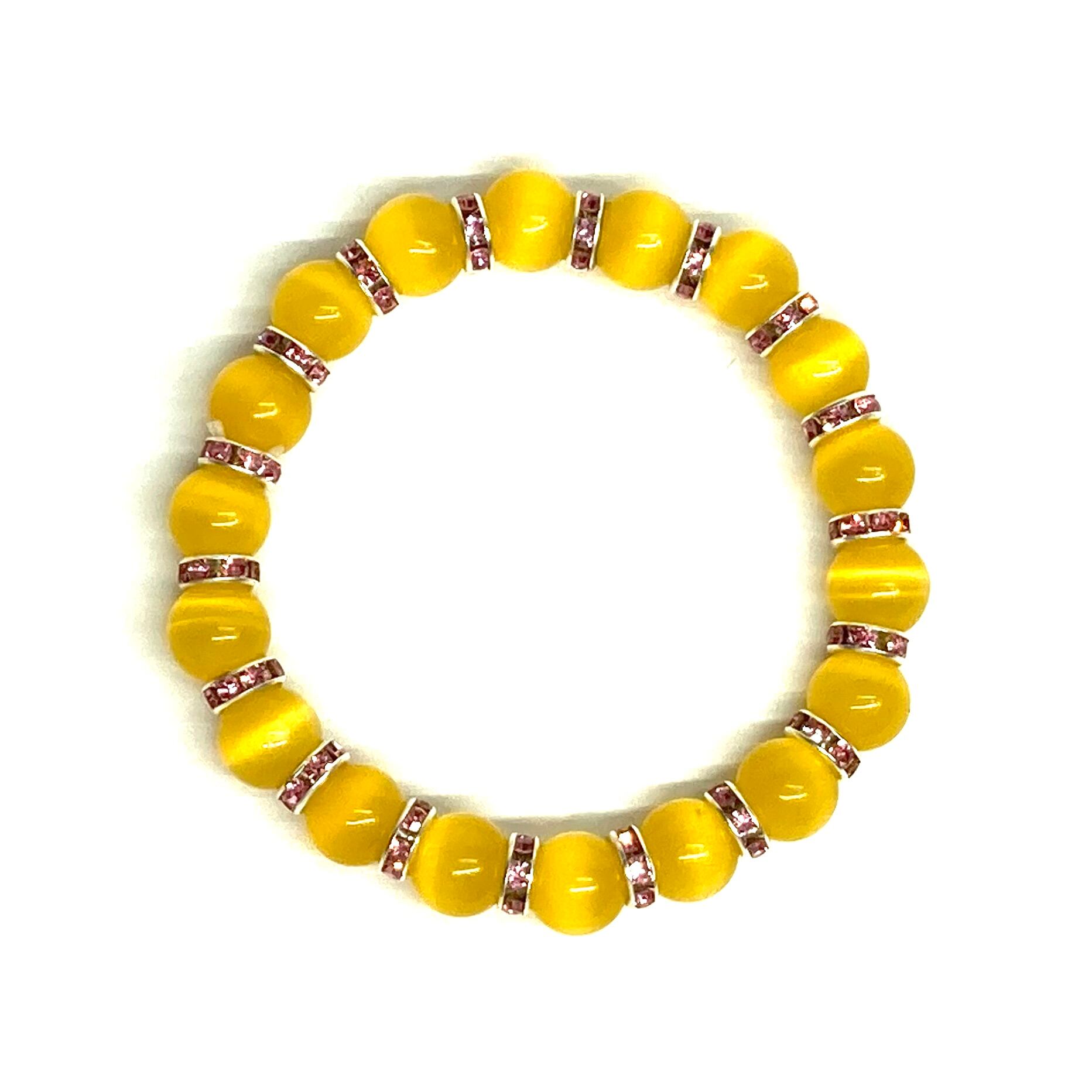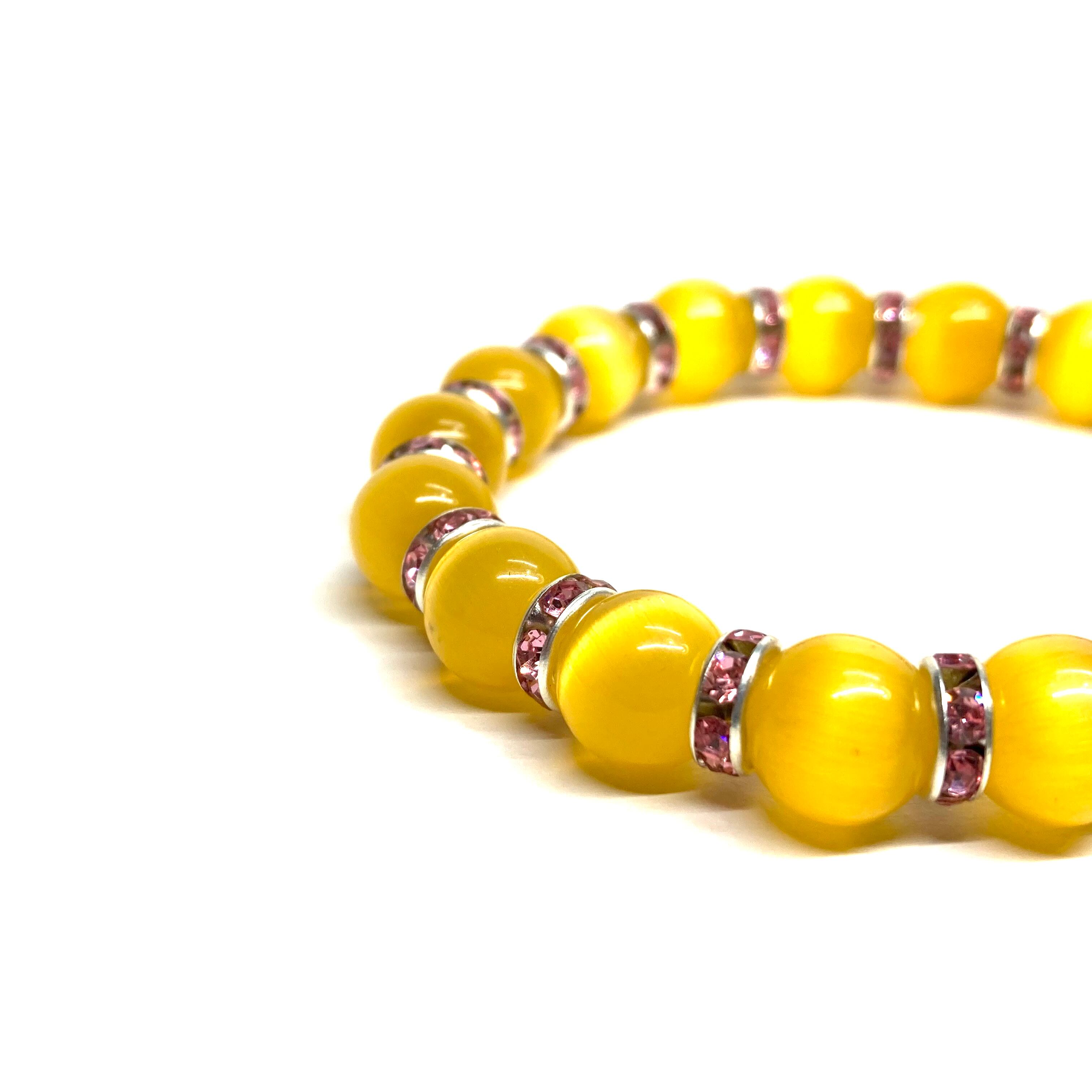 キャッツアイ(イエロー) パワーストーン ブレスレット (ピンク) メンズ・レディース 男性・女性 数珠ブレス 開運