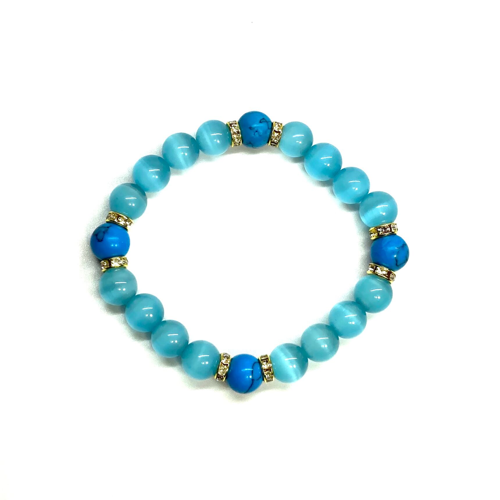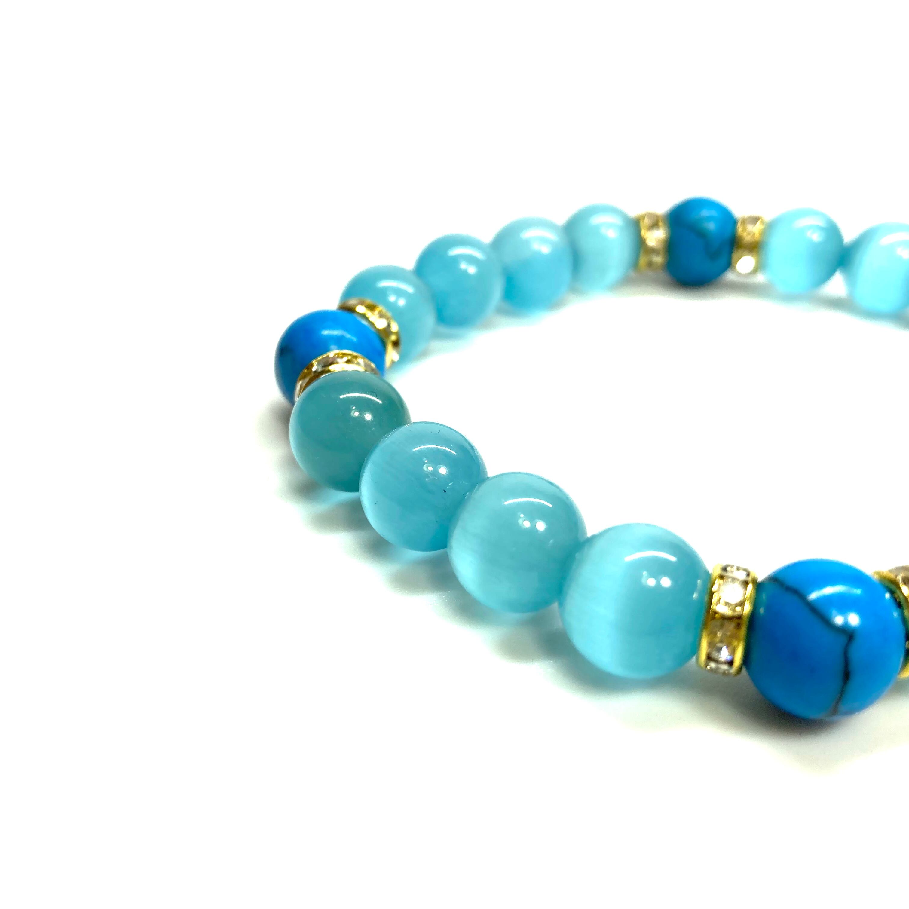 キャッツアイ(ライトブルー)×ターコイズ パワーストーン ブレスレット (ゴールド) メンズ・レディース 男性・女性 数珠ブレス 開運 #1