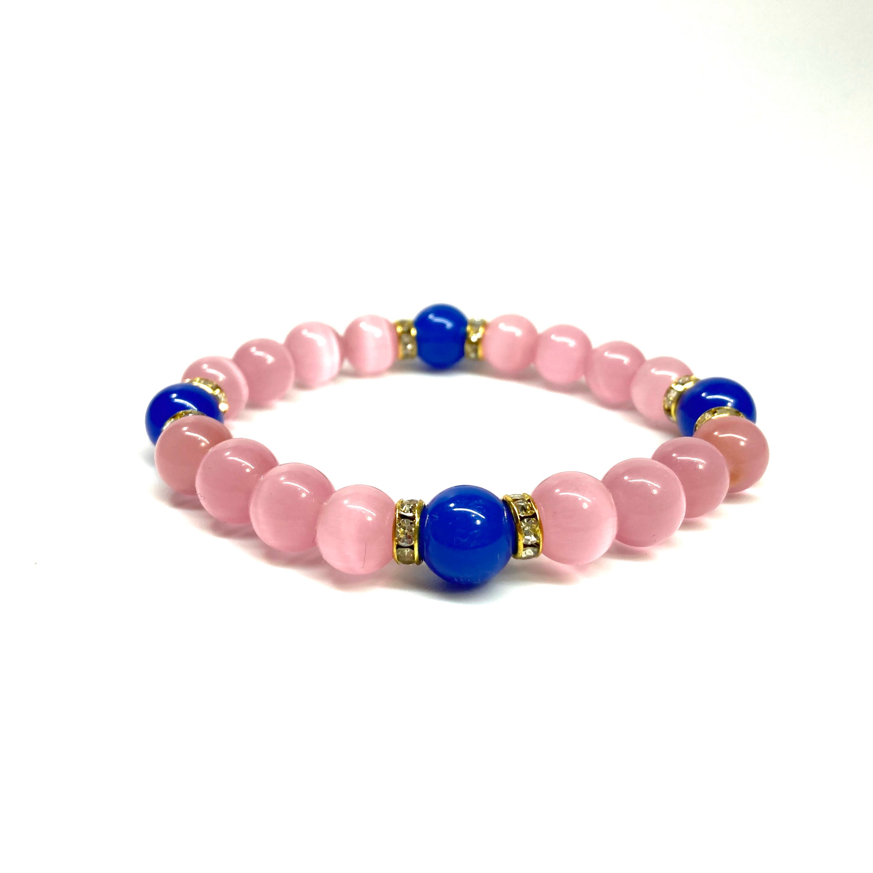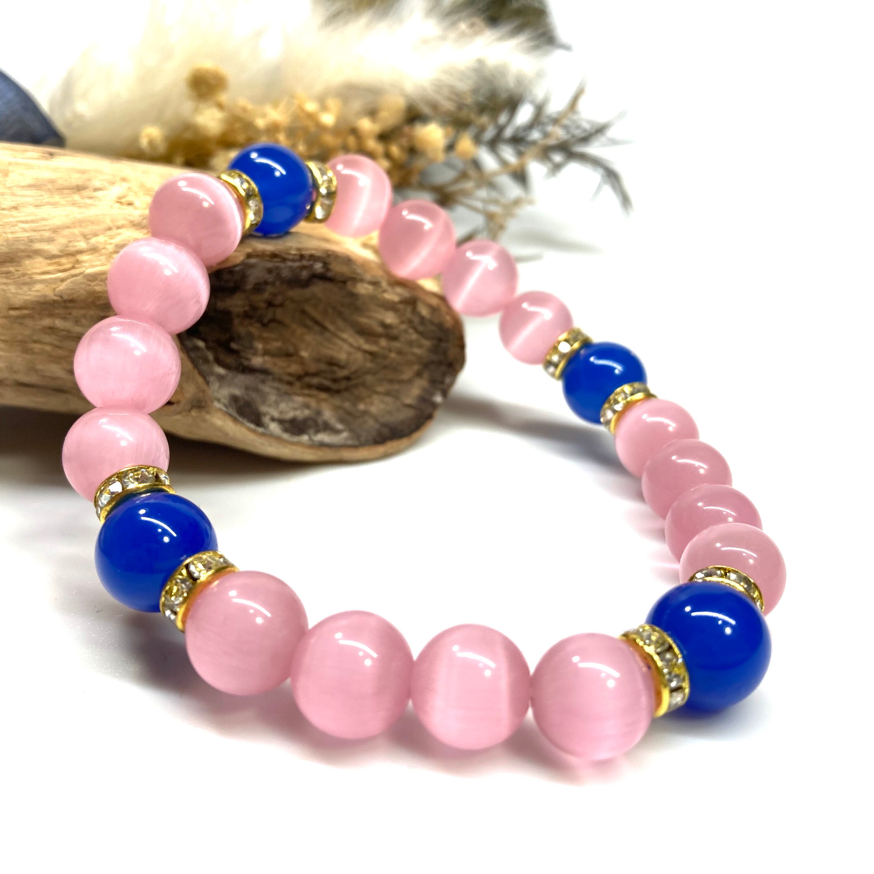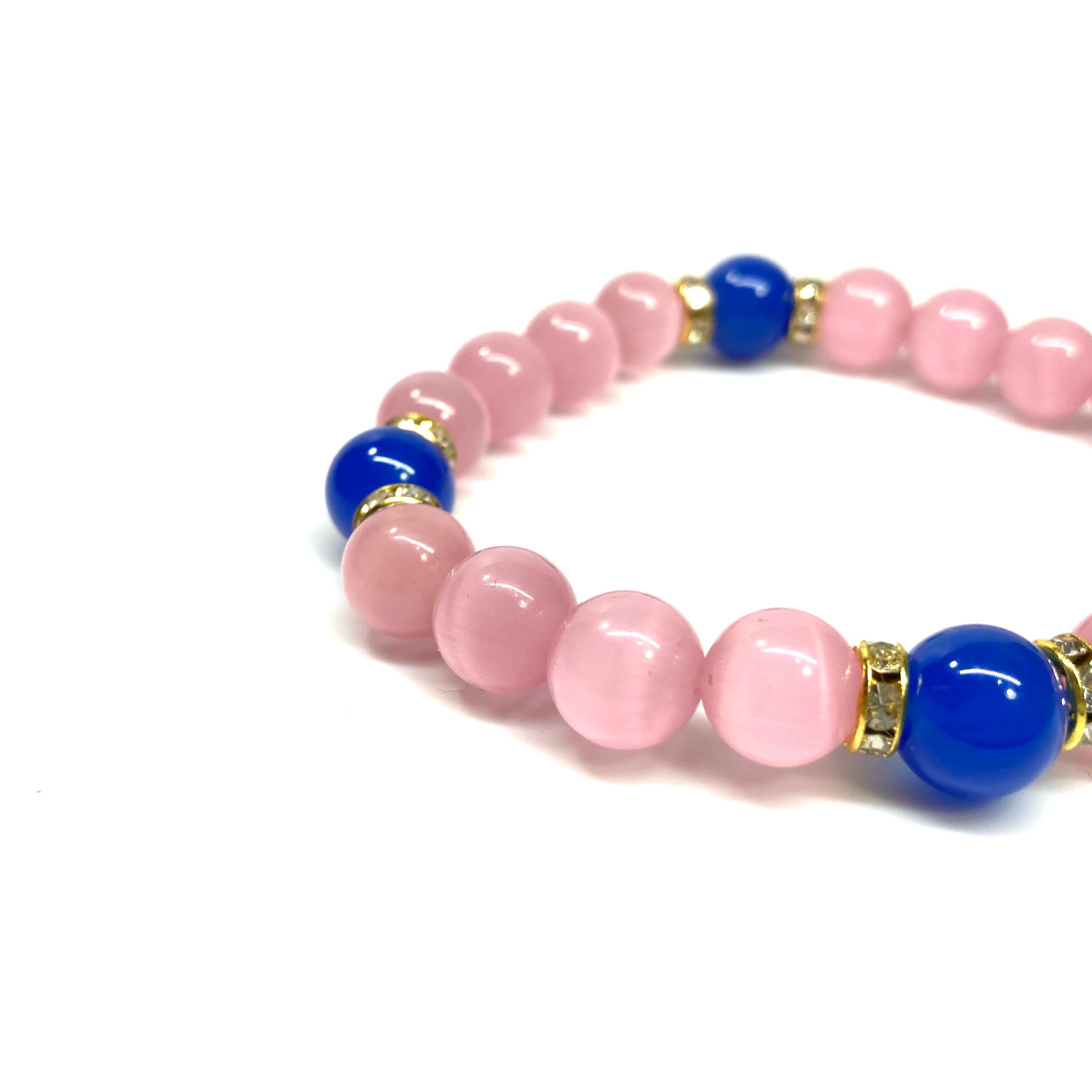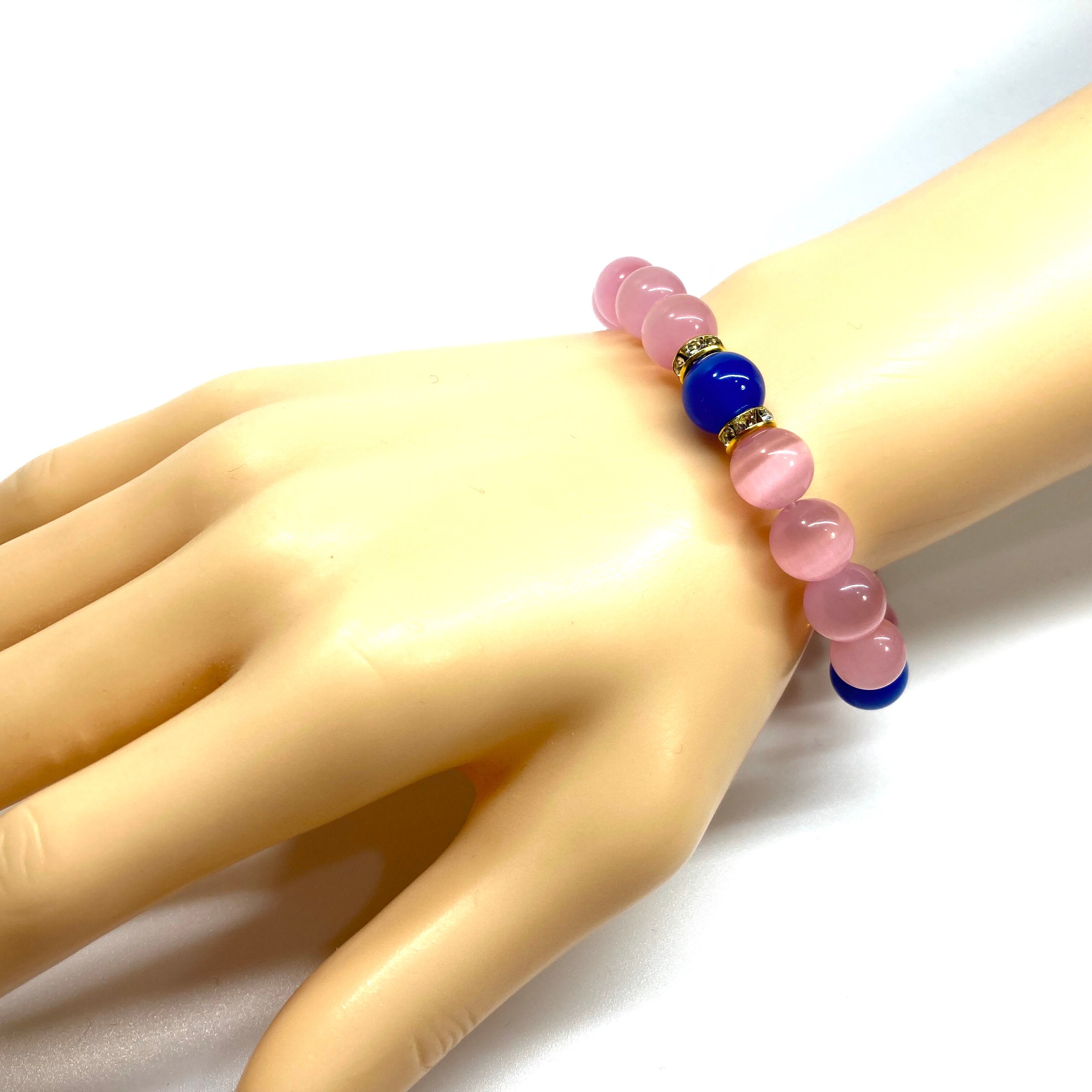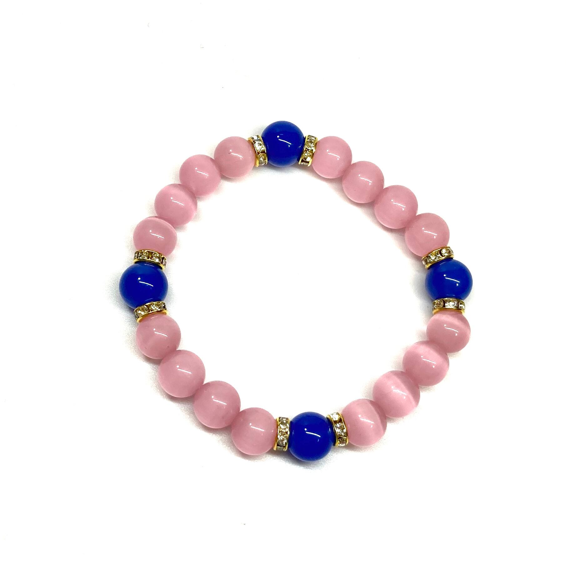 キャッツアイ(ピンク)×青瑪瑙 パワーストーン ブレスレット (ゴールド) メンズ・レディース 男性・女性 数珠ブレス 開運