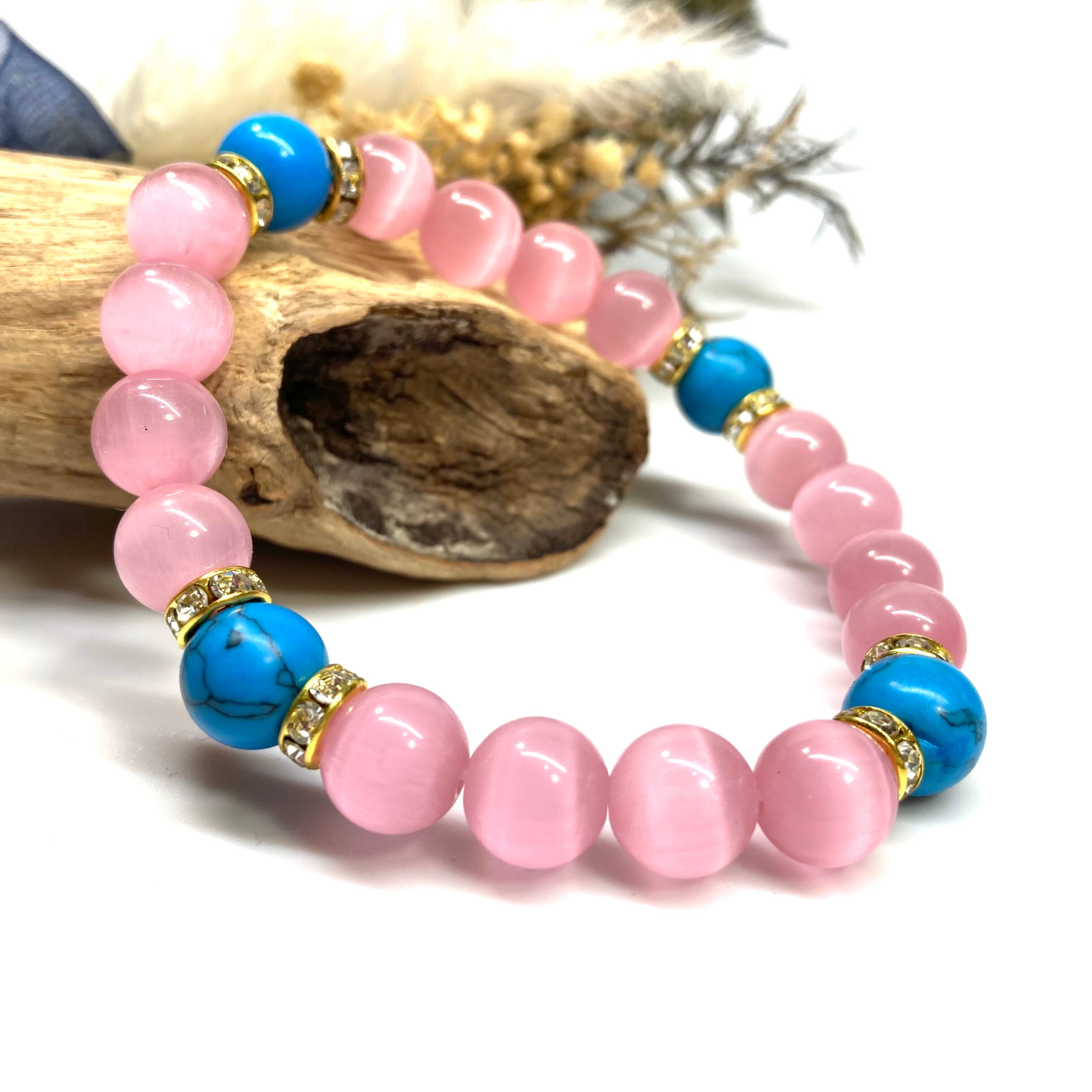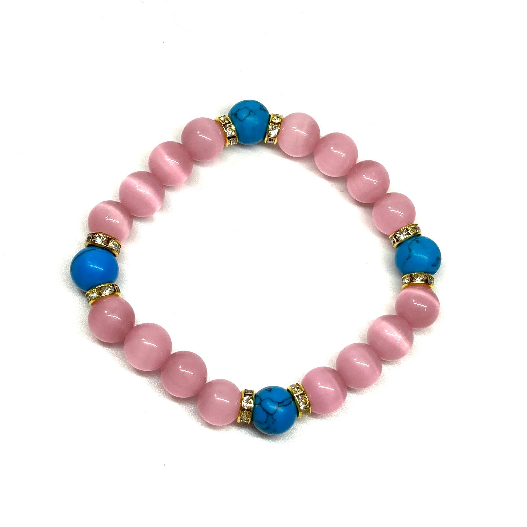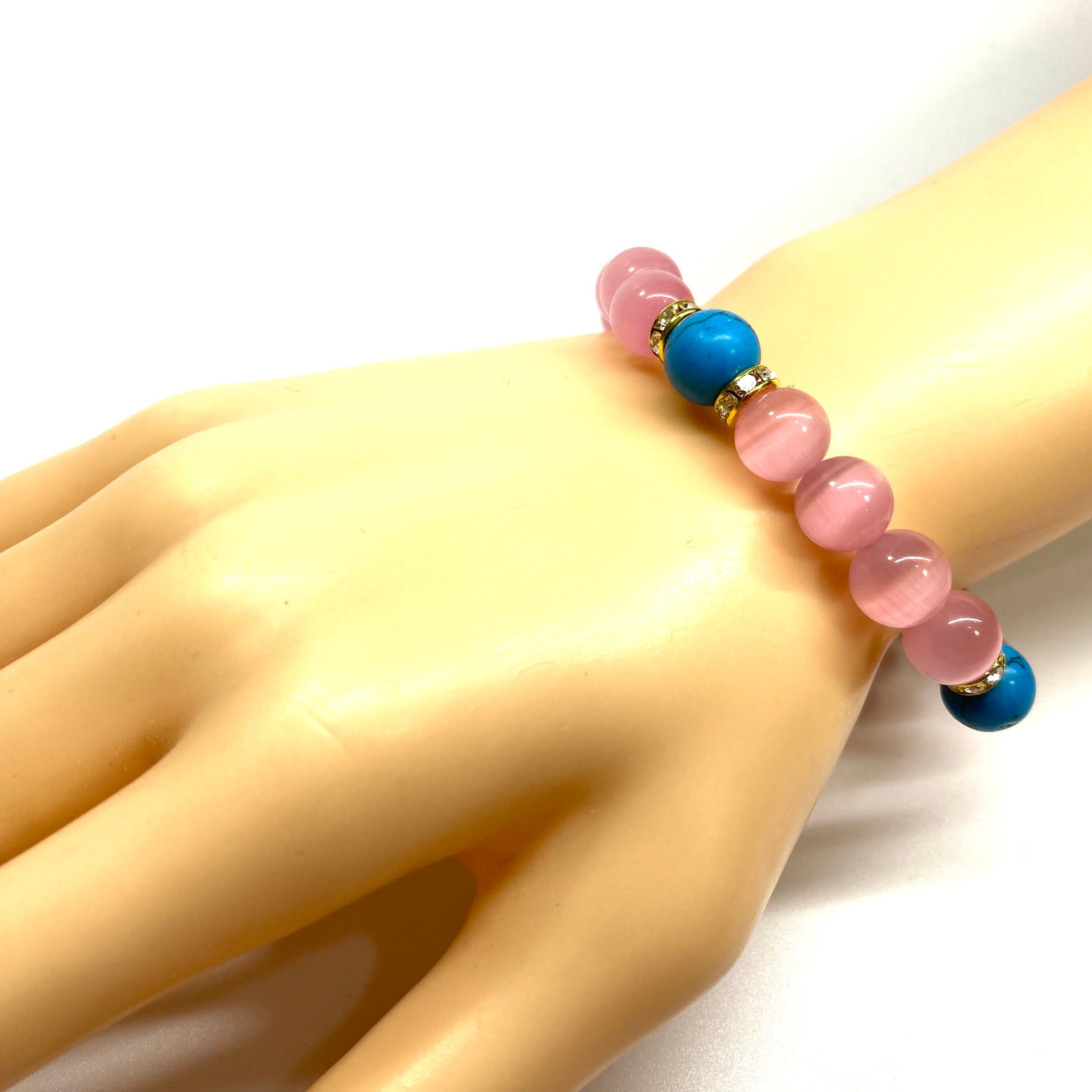 キャッツアイ(ピンク)×ターコイズ パワーストーン ブレスレット (ゴールド) メンズ・レディース 男性・女性 数珠ブレス 開運 #1