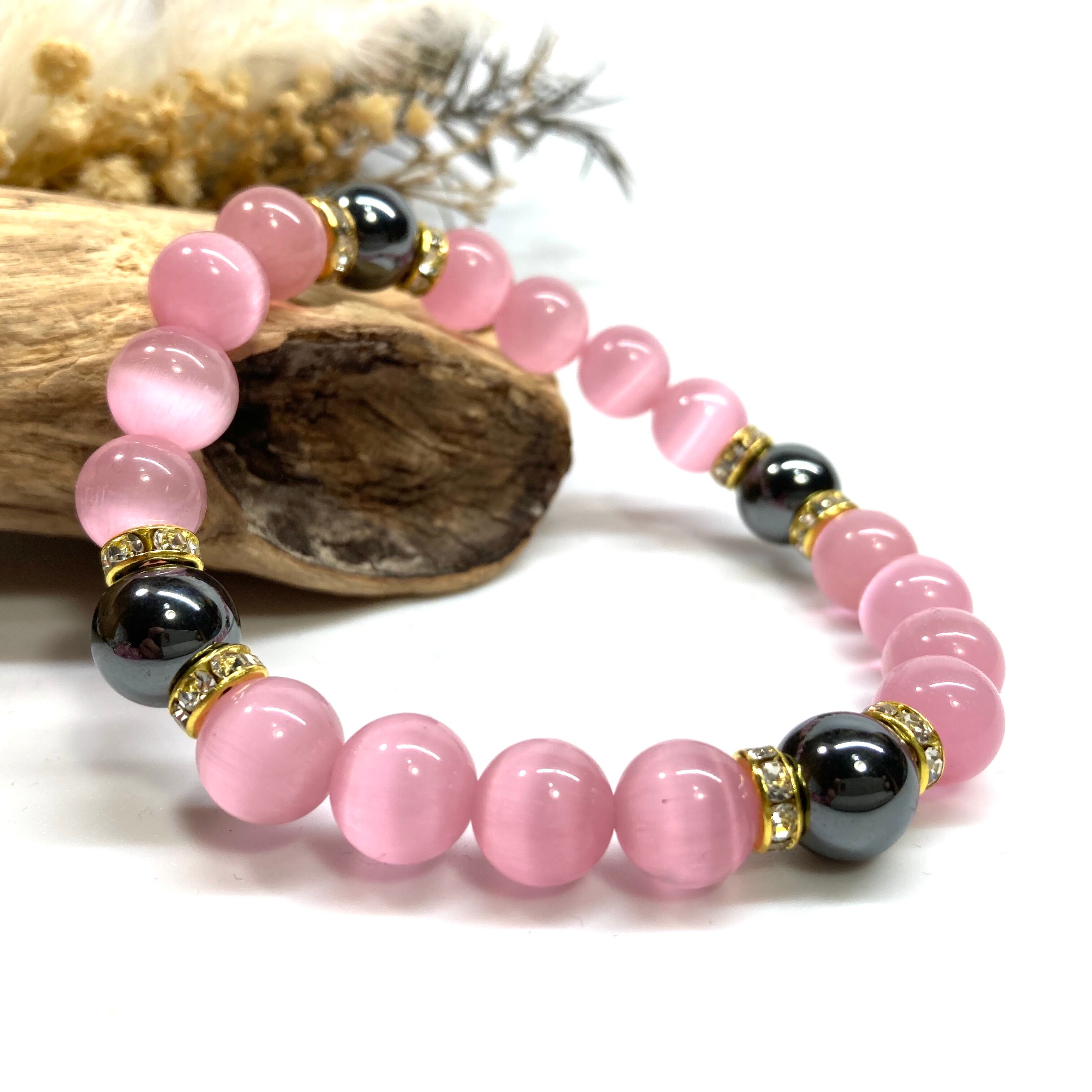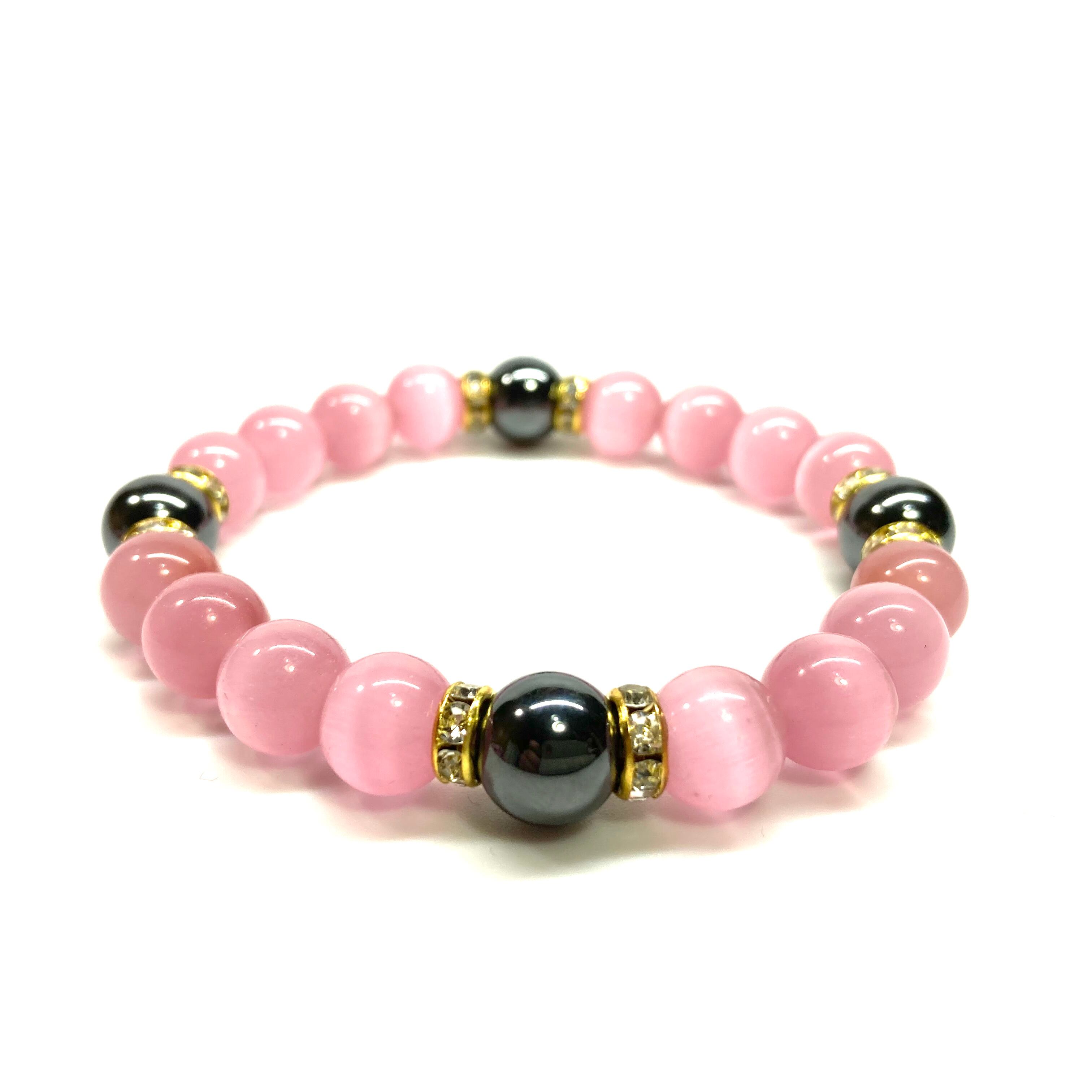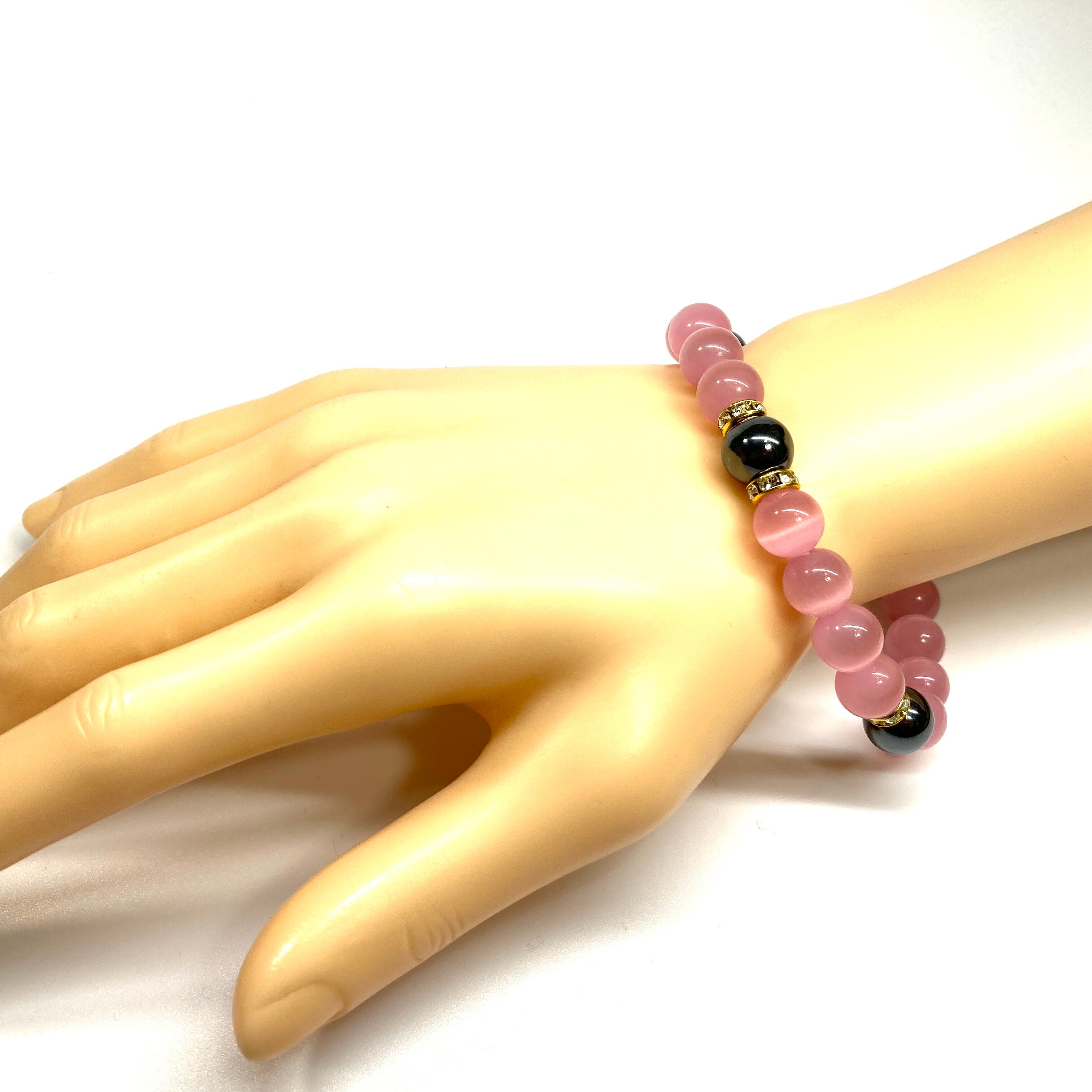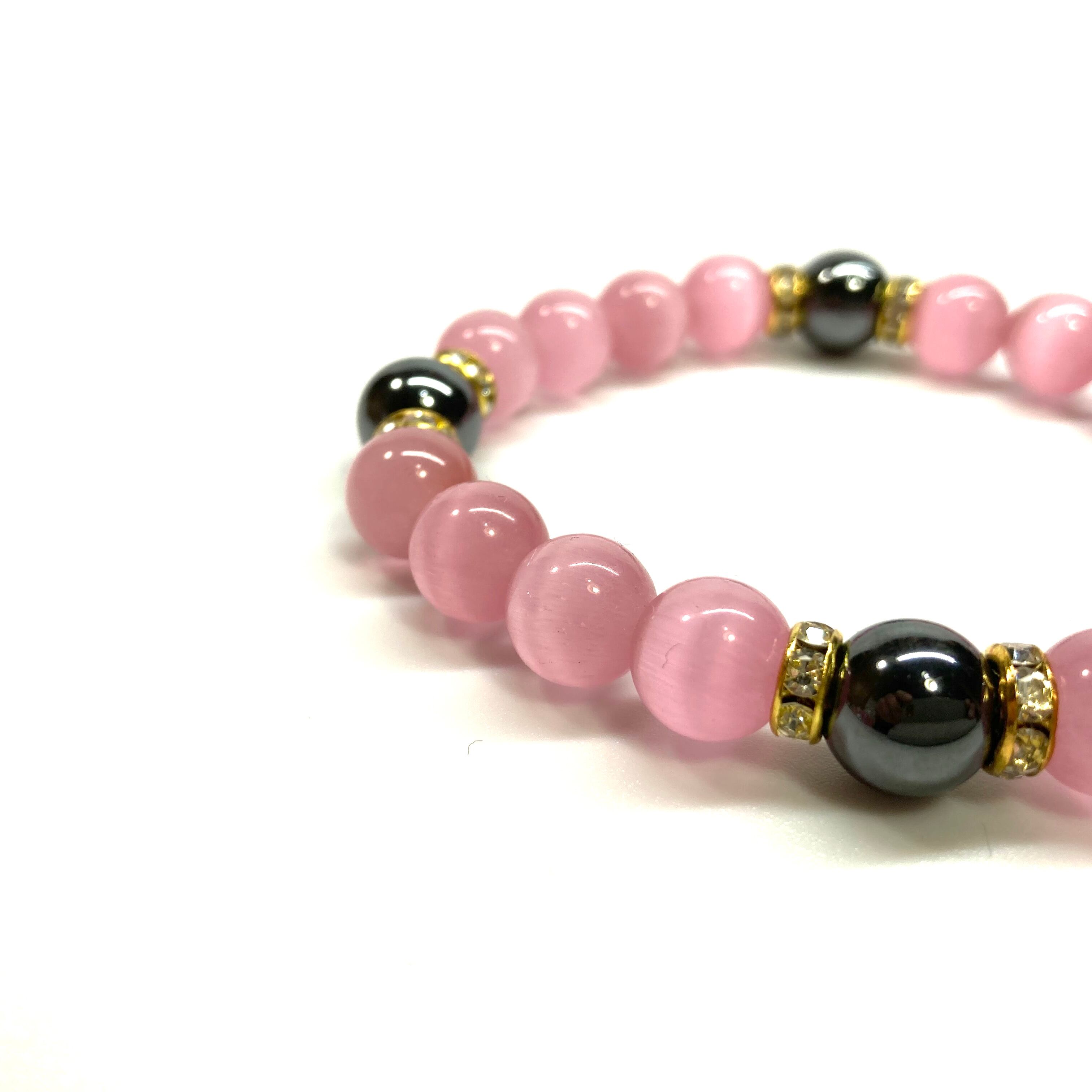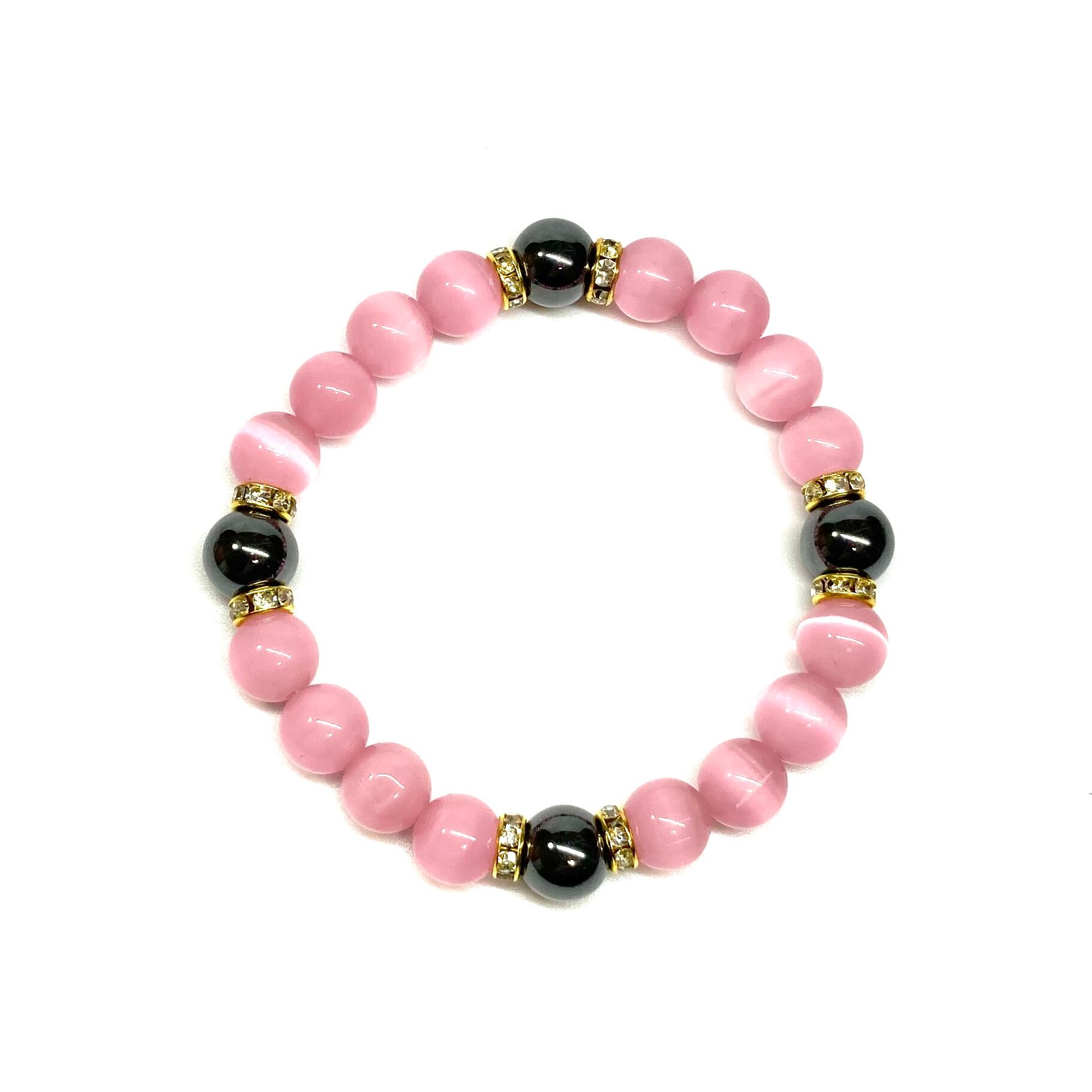 キャッツアイ(ピンク)×ヘマタイト パワーストーン ブレスレット (ゴールド) メンズ・レディース 男性・女性 数珠ブレス 開運