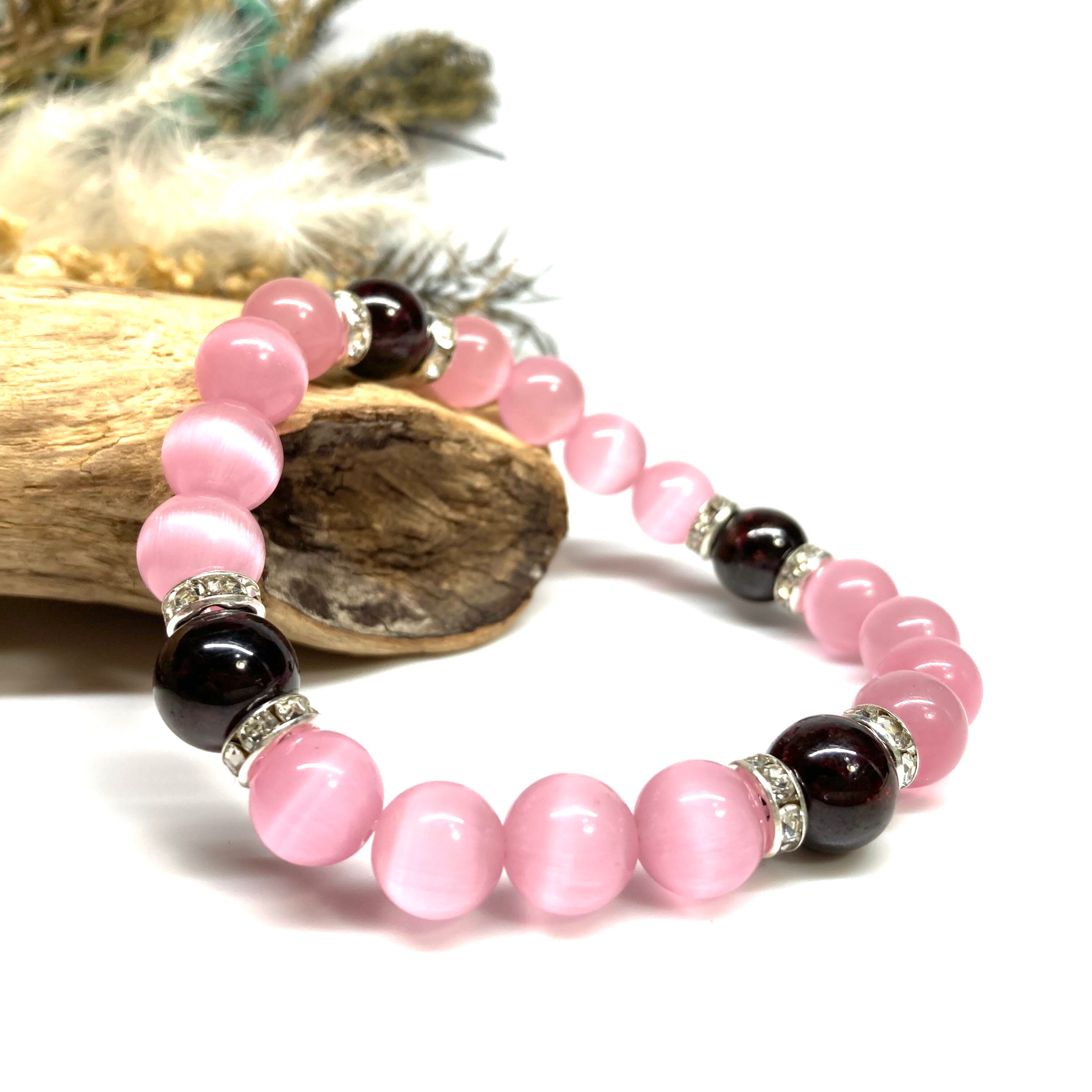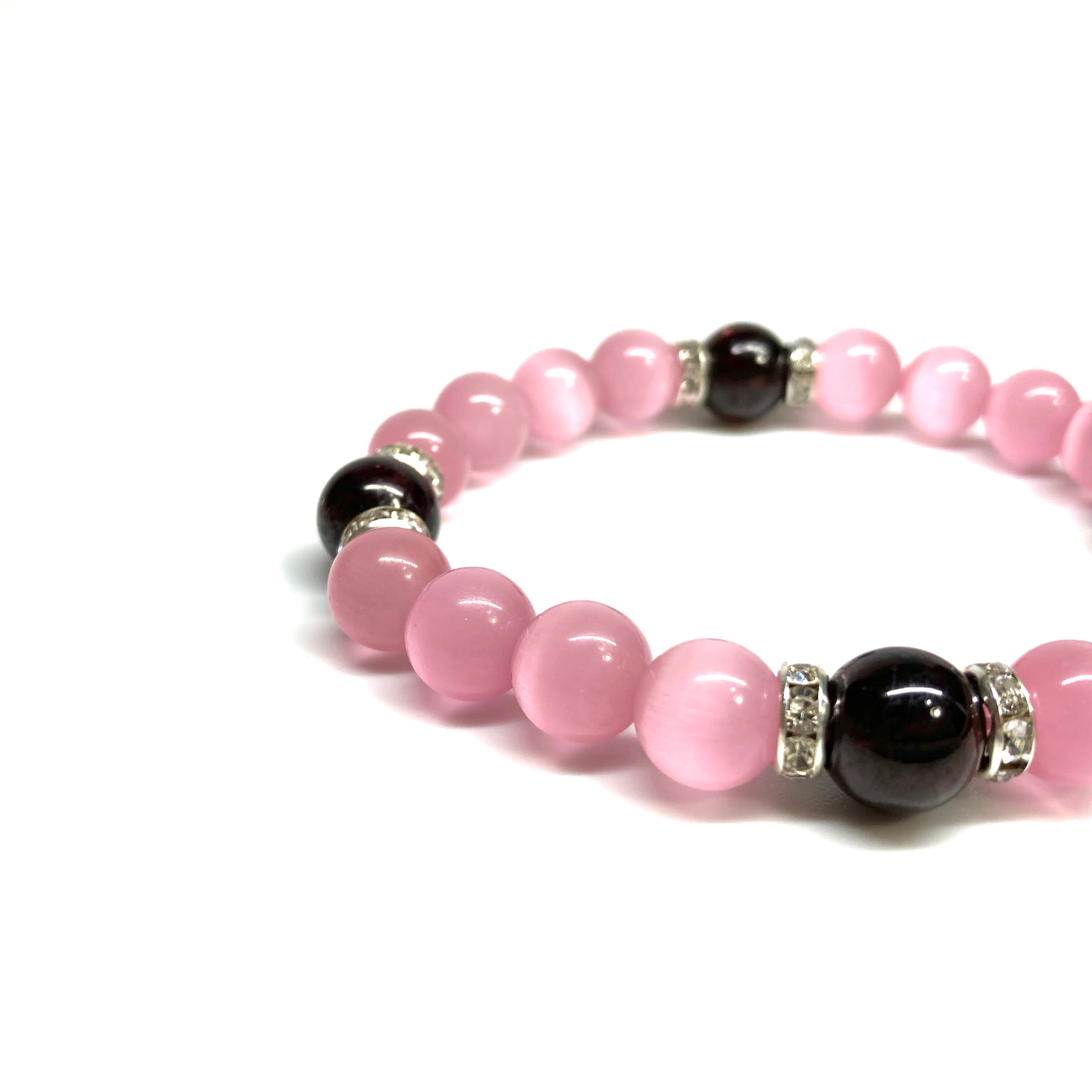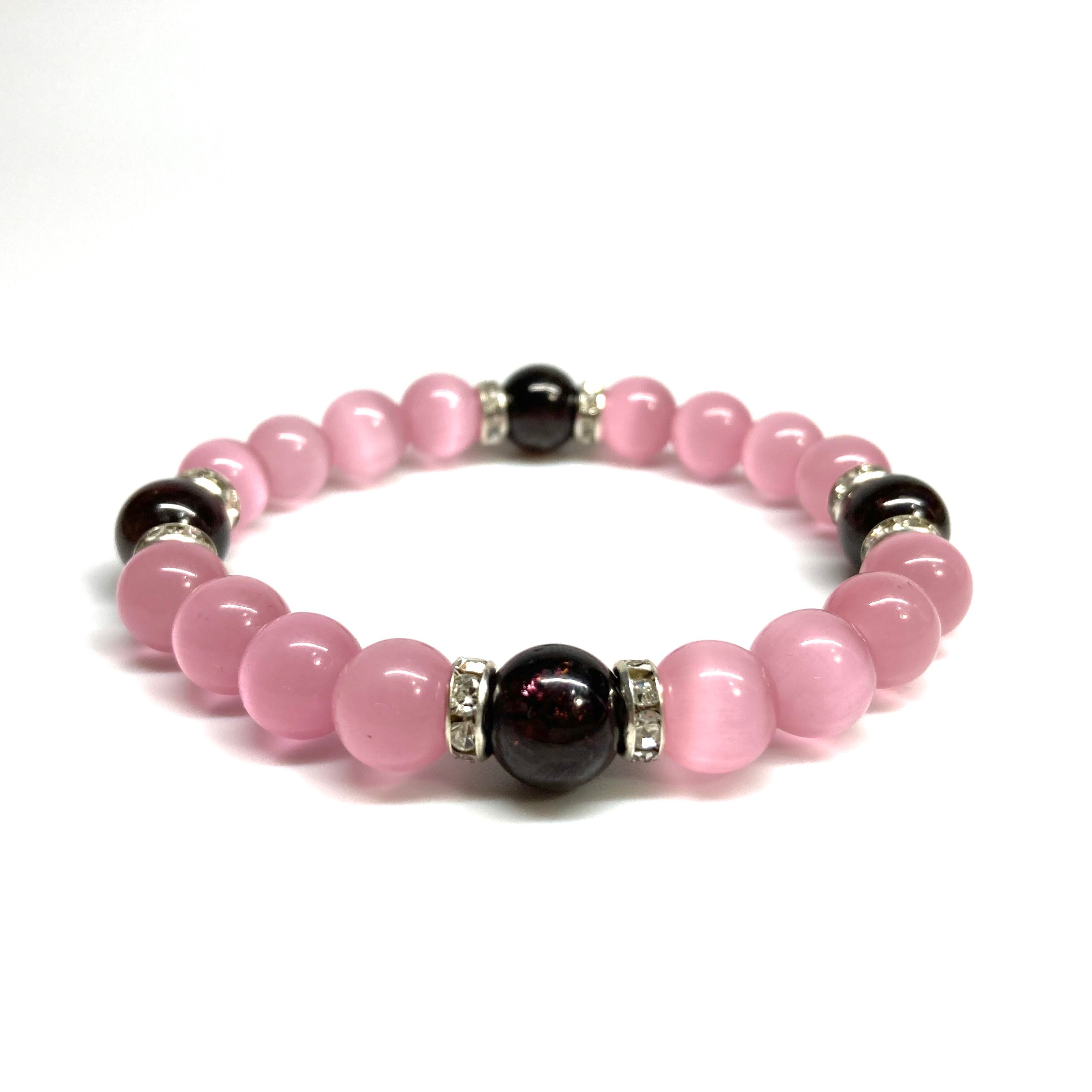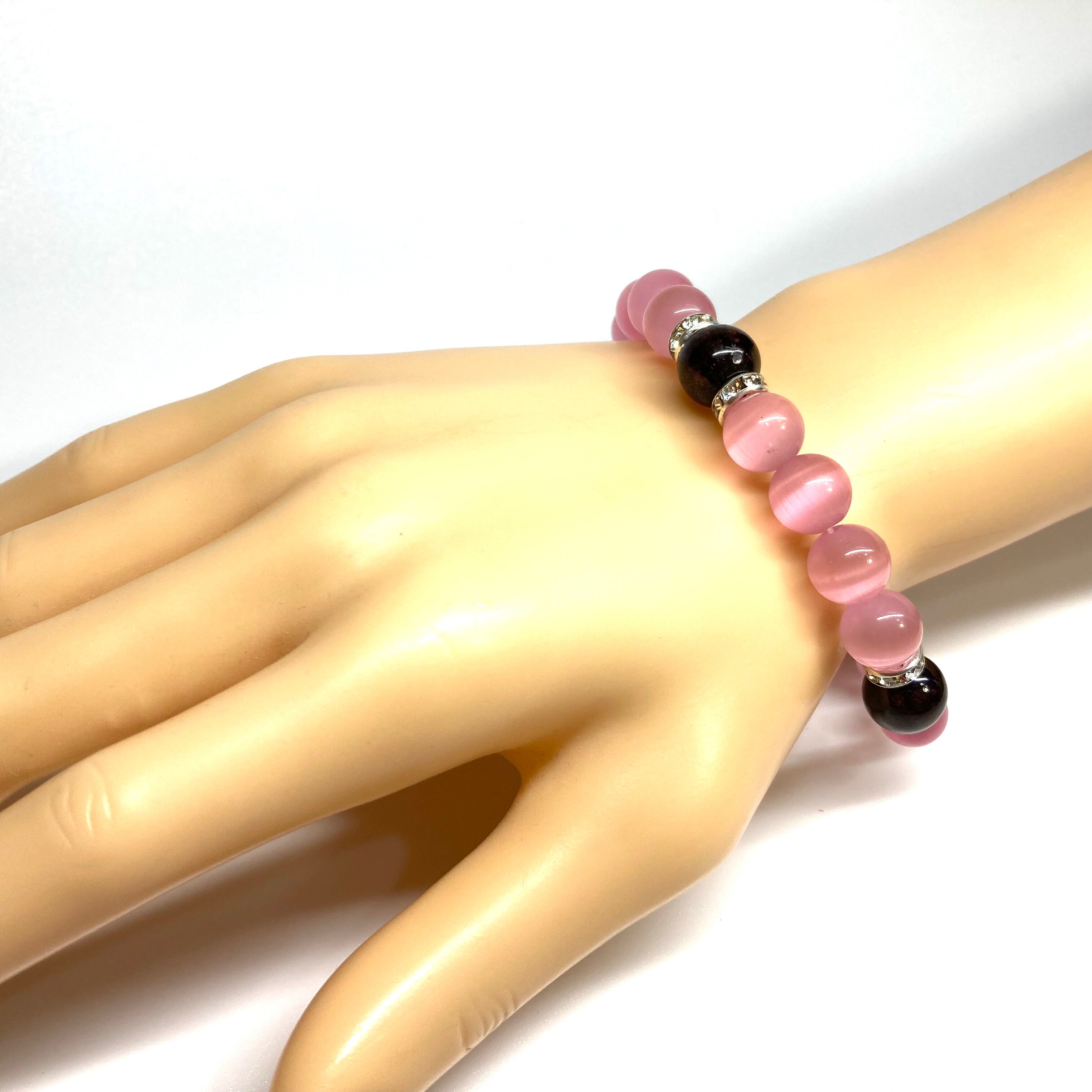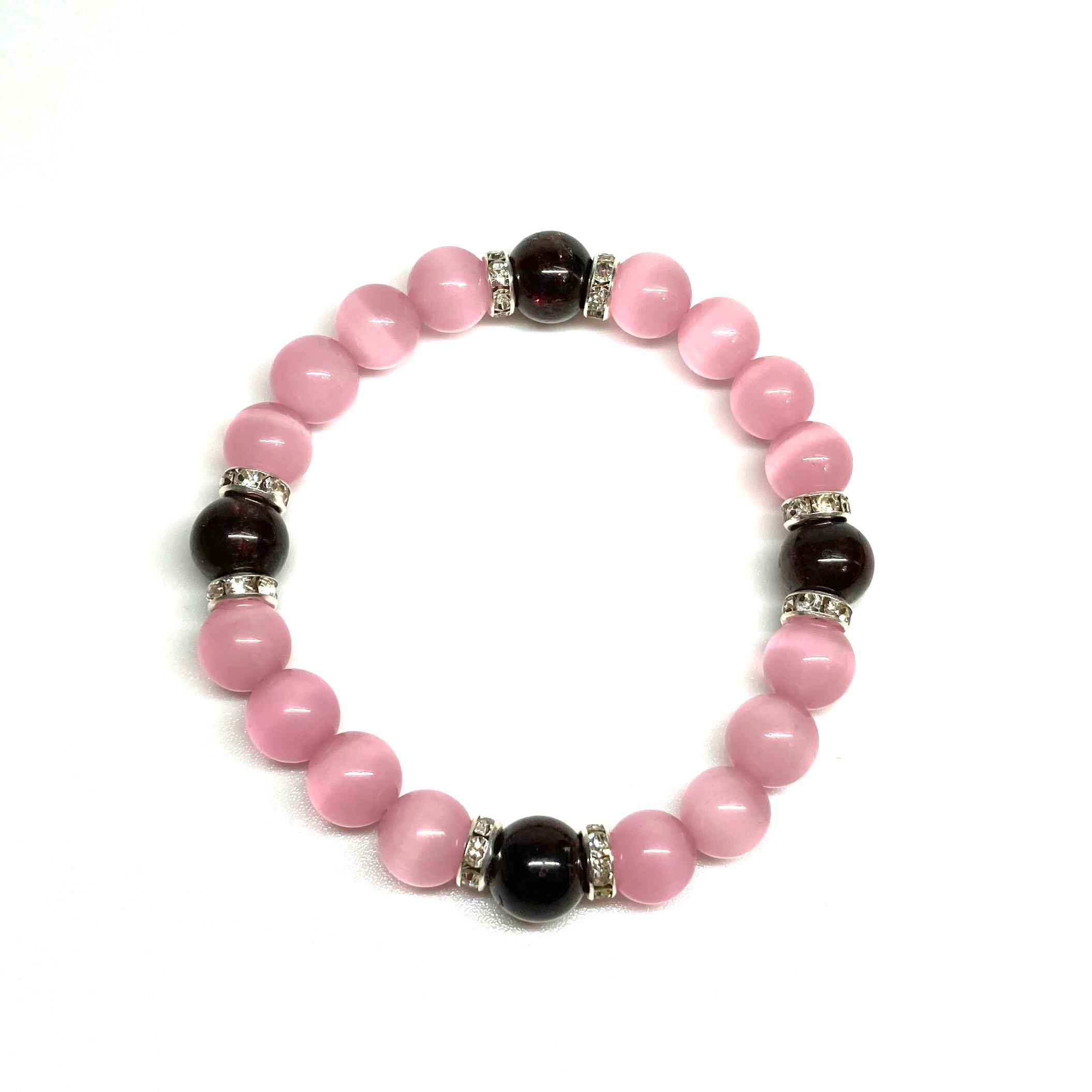 キャッツアイ(ピンク)×ガーネット パワーストーン ブレスレット (シルバー) メンズ・レディース 男性・女性 数珠ブレス 開運