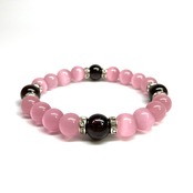 こちらは、キャッツアイとガーネットを組み合わせたブレスレットです。間にはロンデルを挟み高級感あるデザインに仕上がっています。石大きさは腕にも馴染みやすいように10mm玉で内周約17cm(伸可能)です。数に限りがございますので気になる方はお早めにどうぞ。