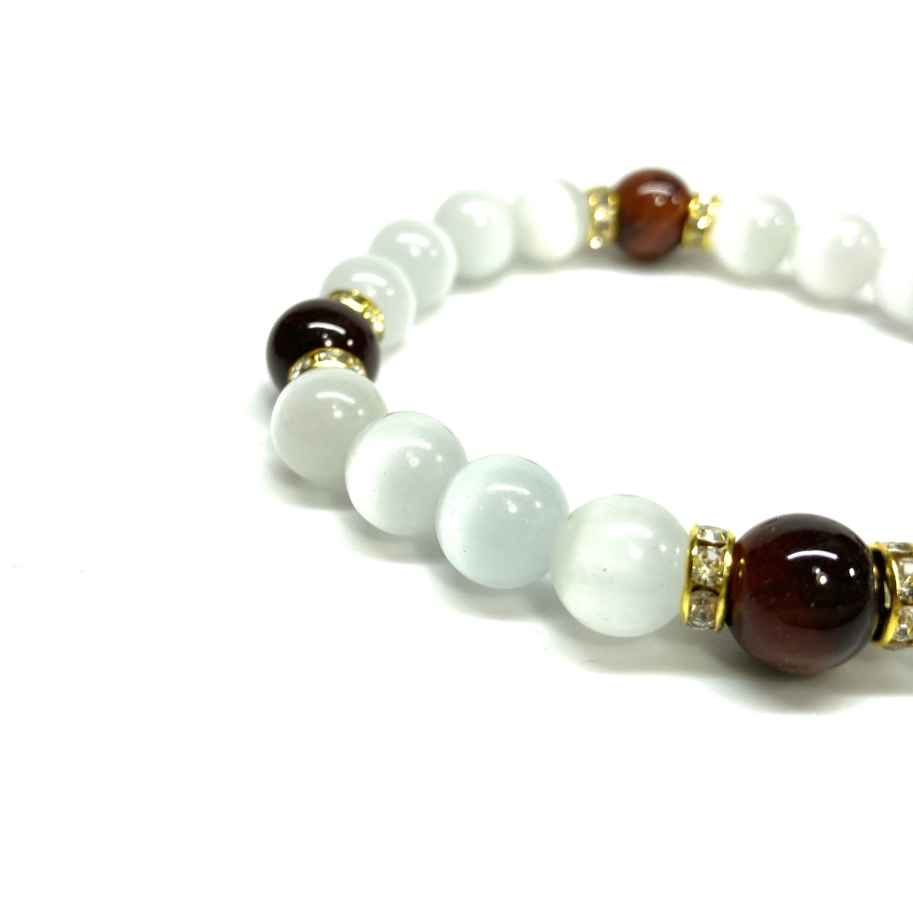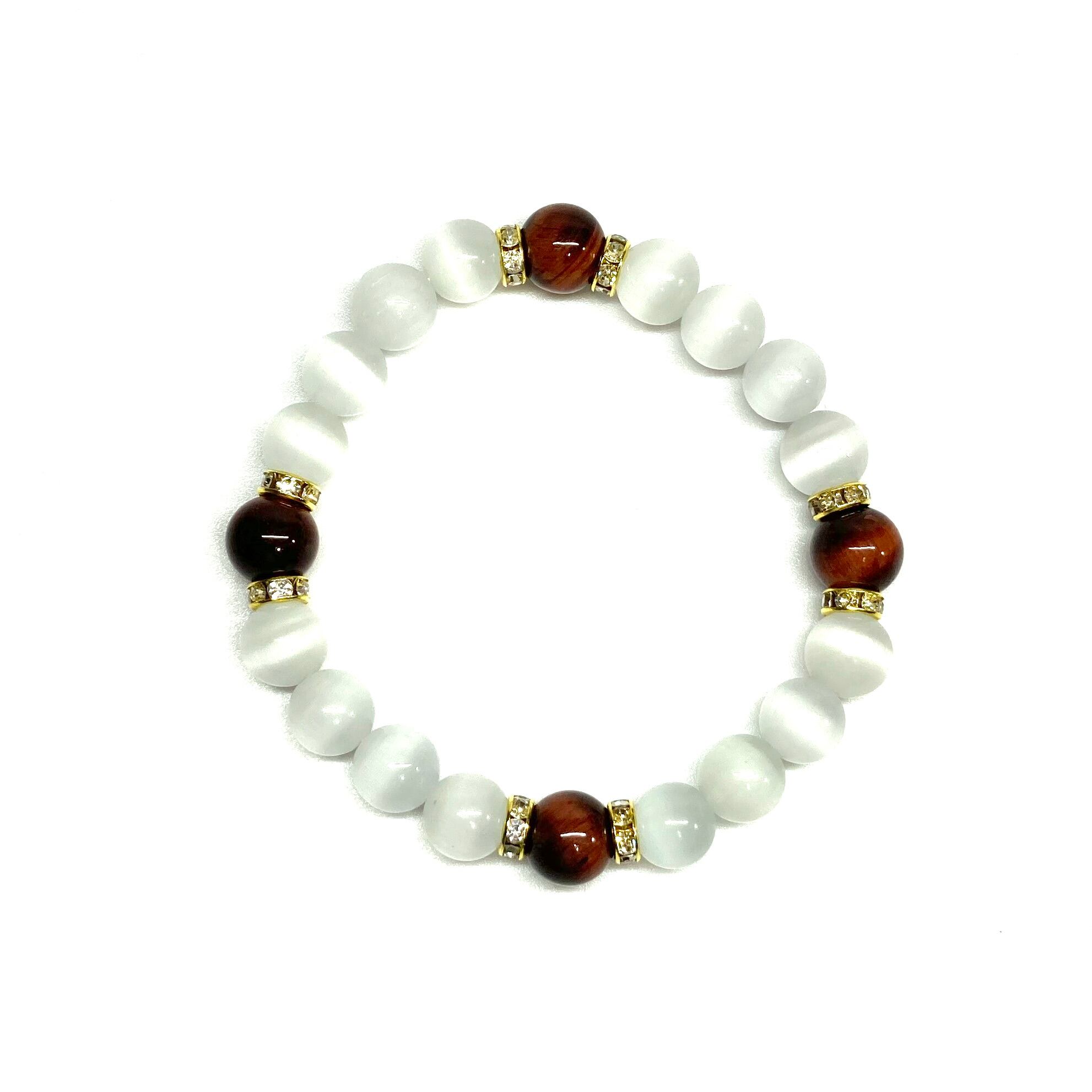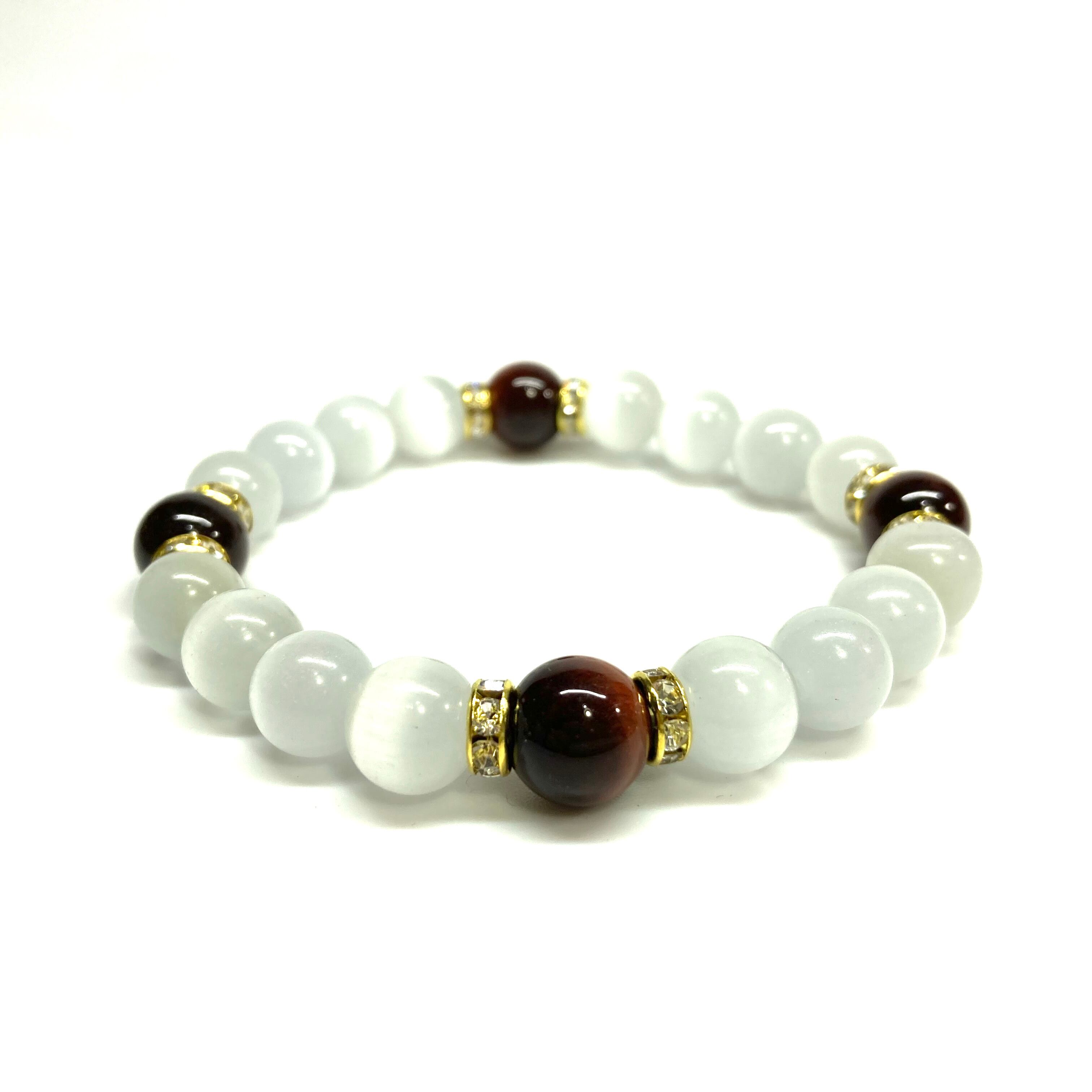 キャッツアイ(ホワイト)×レッドタイガーアイ パワーストーン ブレスレット (ゴールド) メンズ・レディース 男性・女性 数珠ブレス 開運