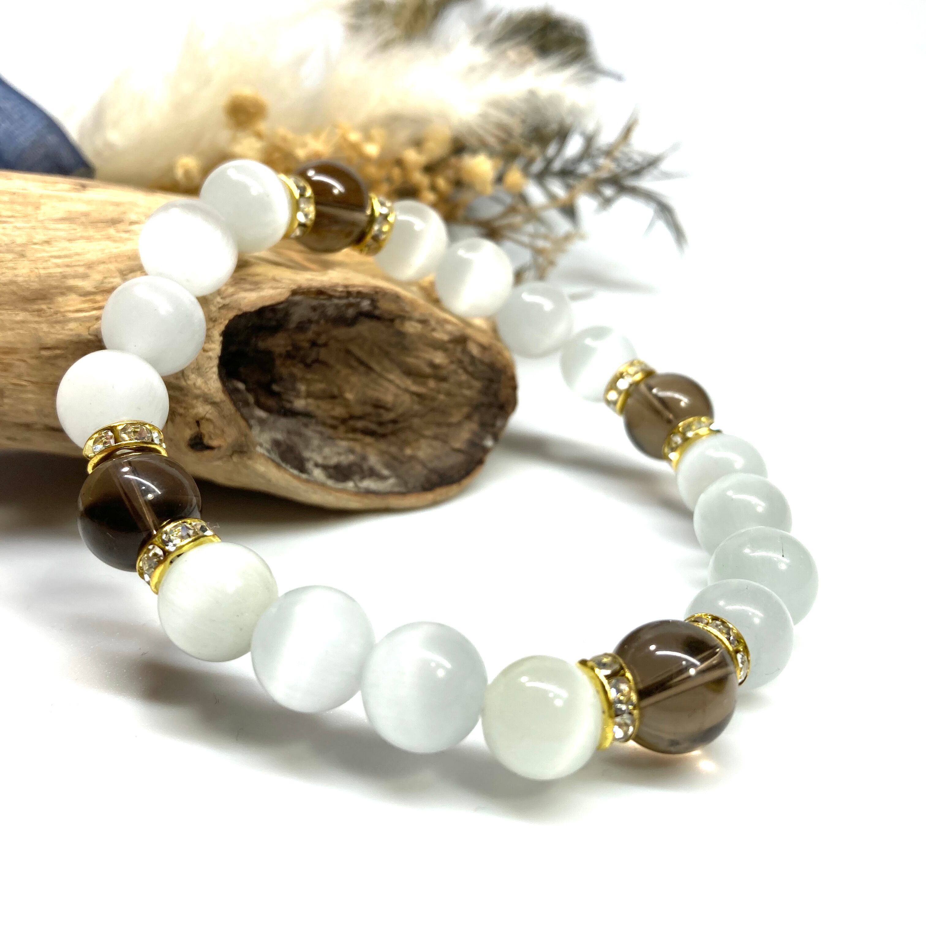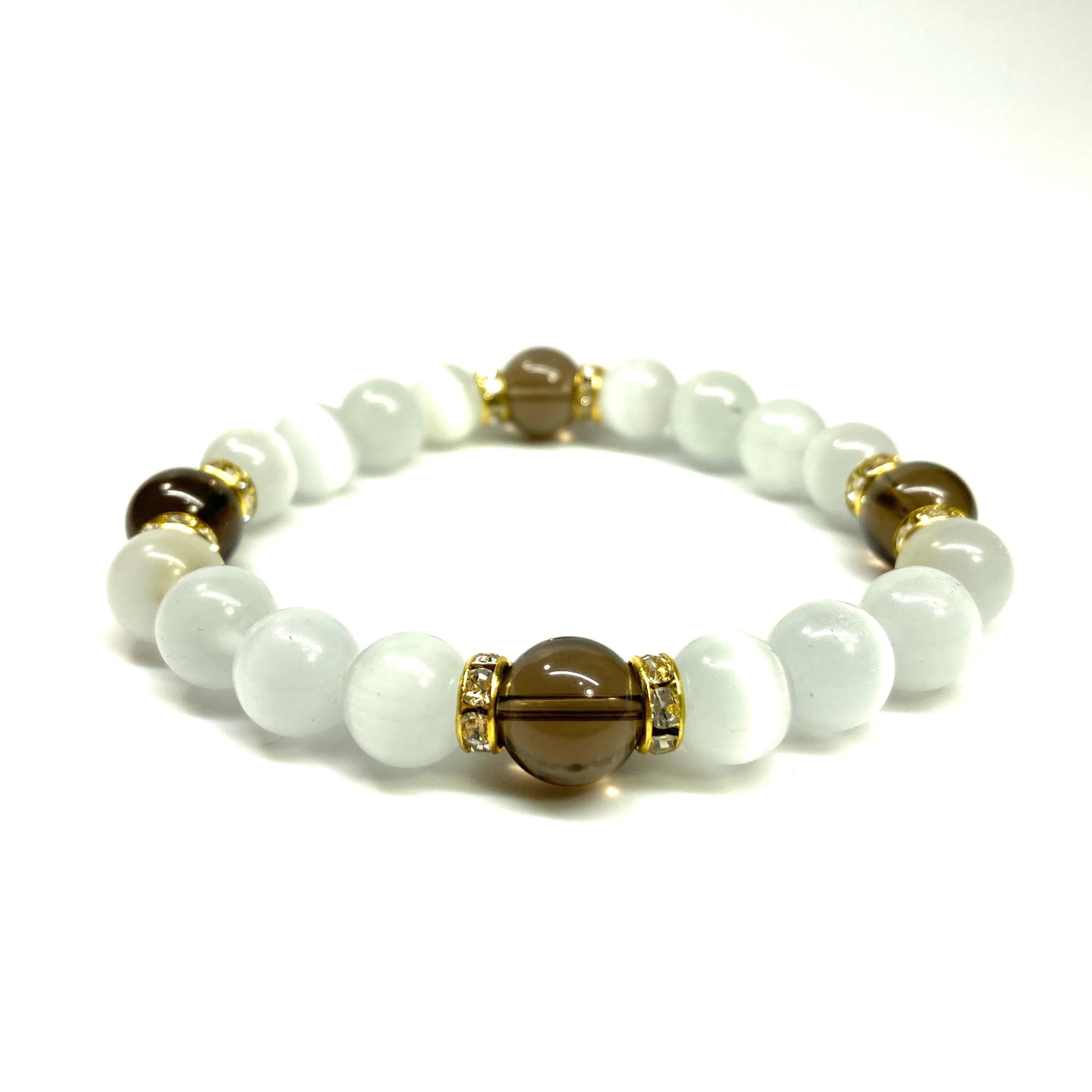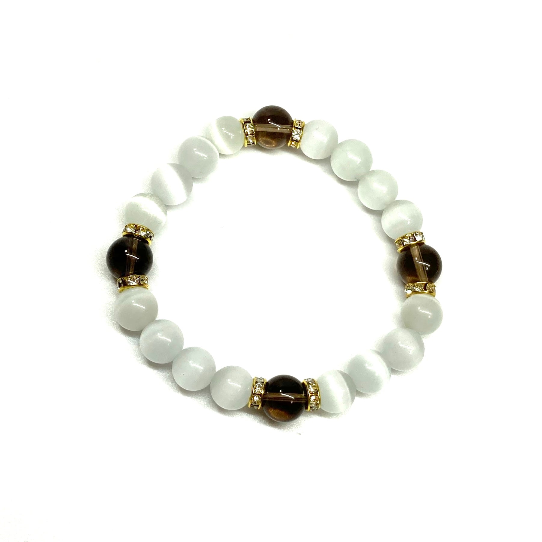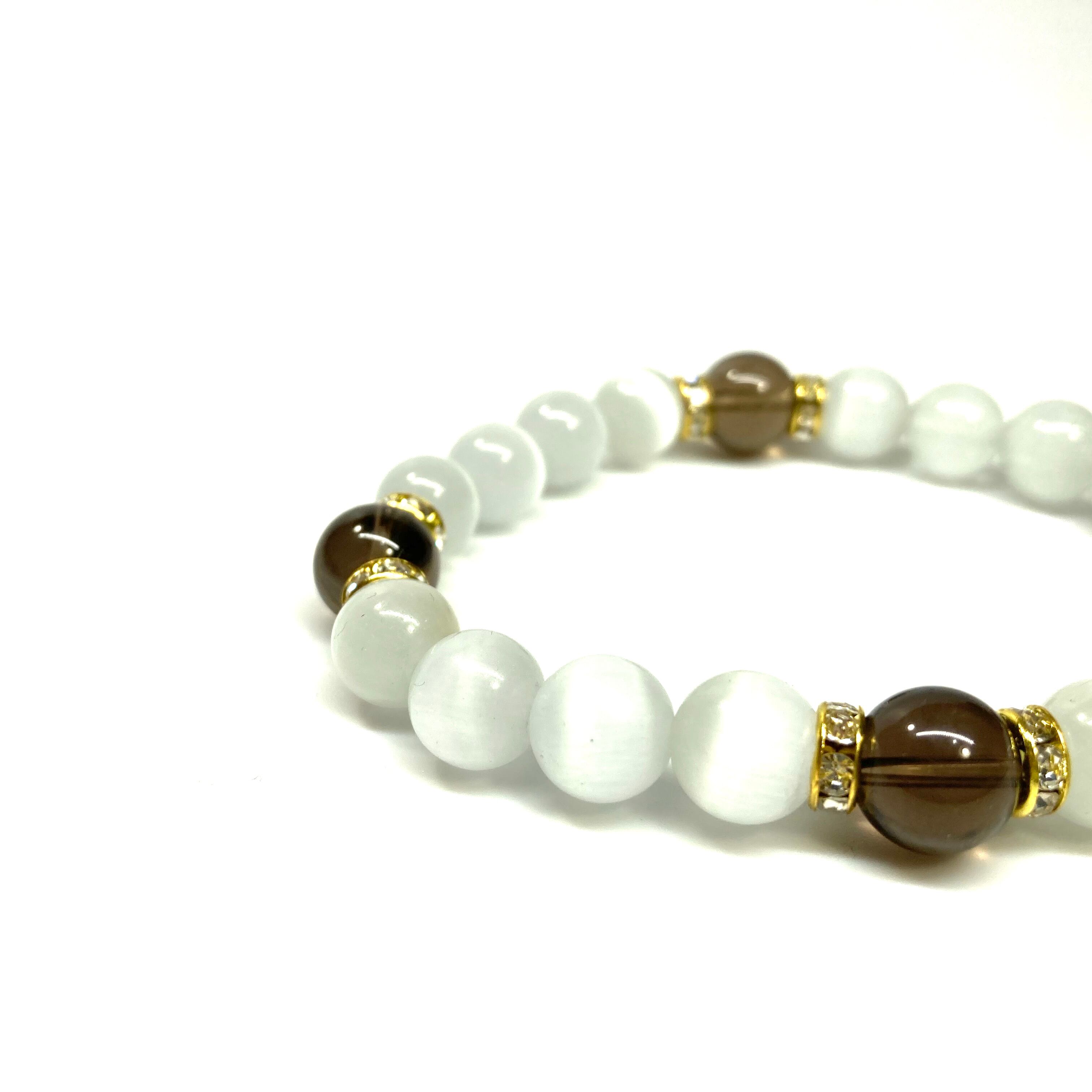 キャッツアイ(ホワイト)×スモーキークォーツ パワーストーン ブレスレット (ゴールド) メンズ・レディース 男性・女性 数珠ブレス 開運
