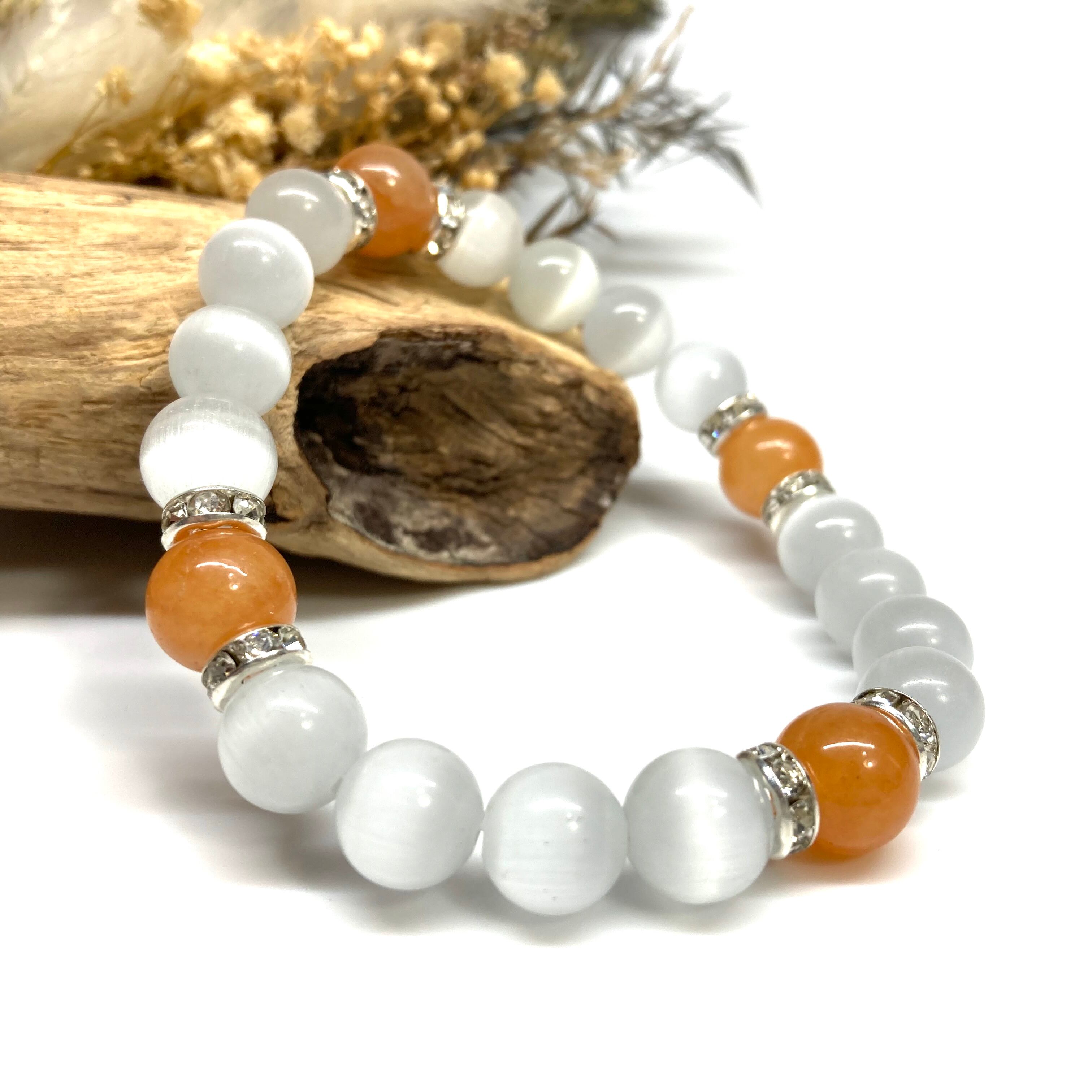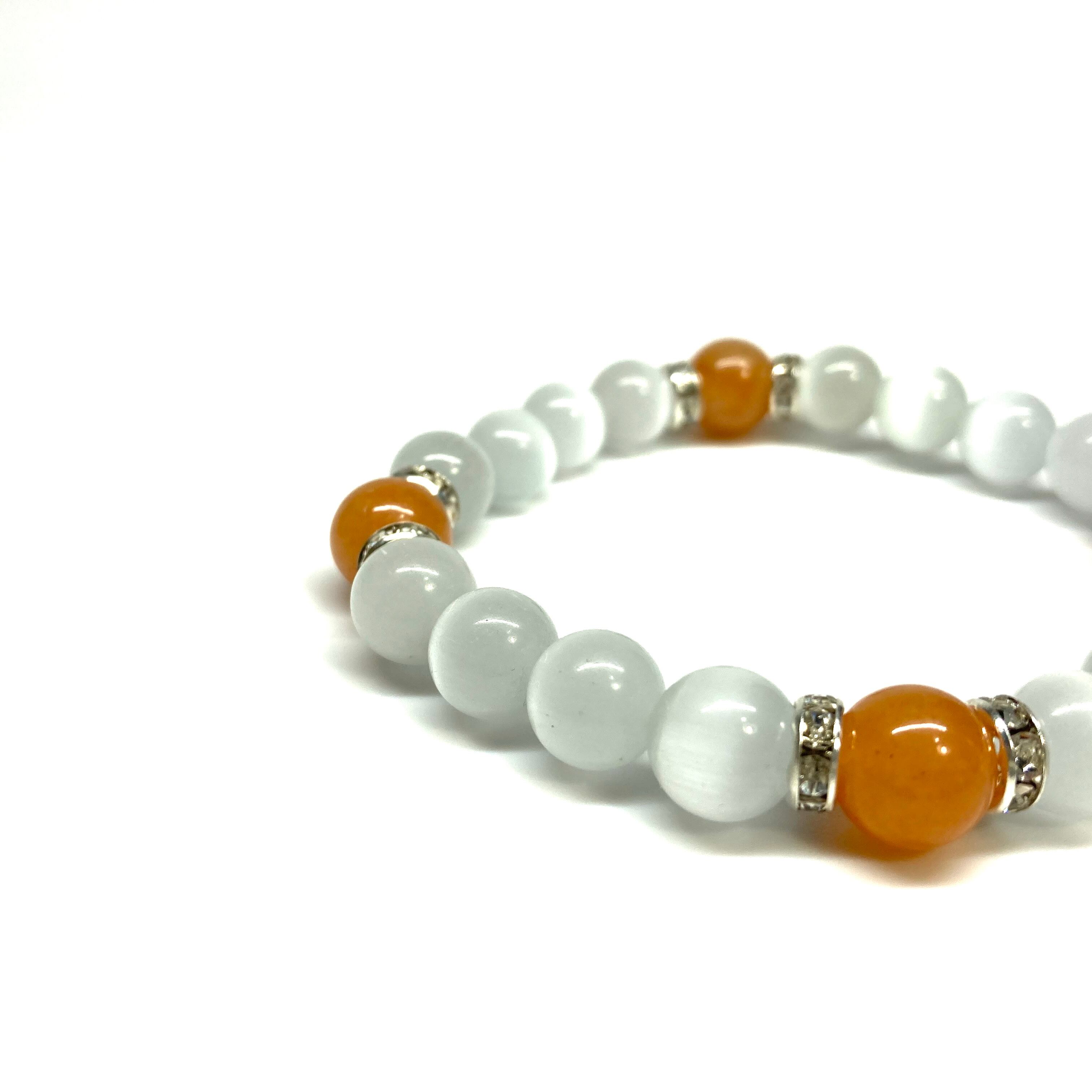 キャッツアイ(ホワイト)×レッドアベンチュリン パワーストーン ブレスレット (シルバー) メンズ・レディース 男性・女性 数珠ブレス 開運