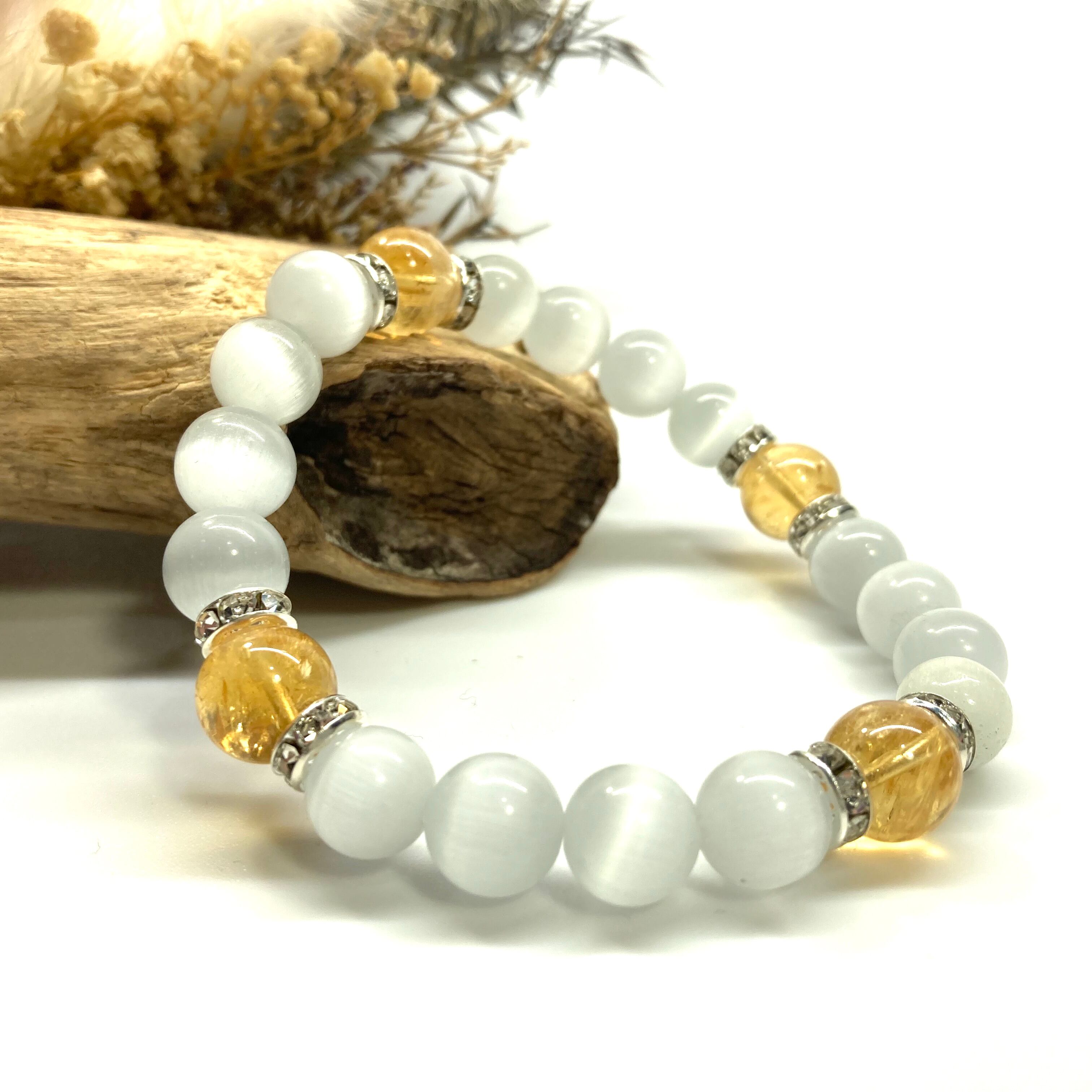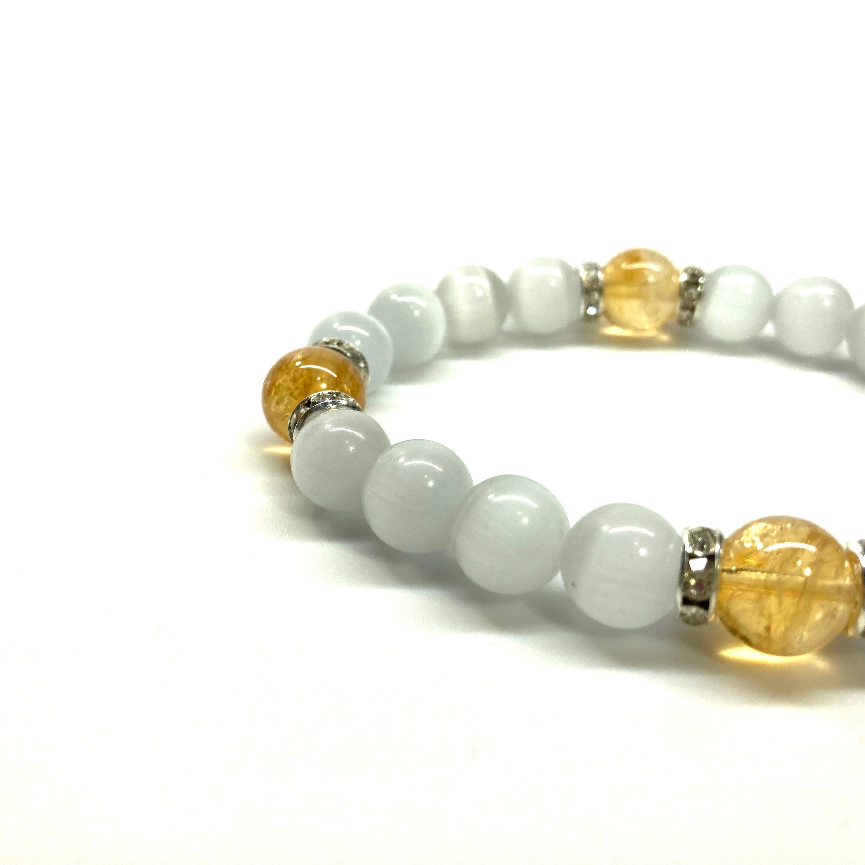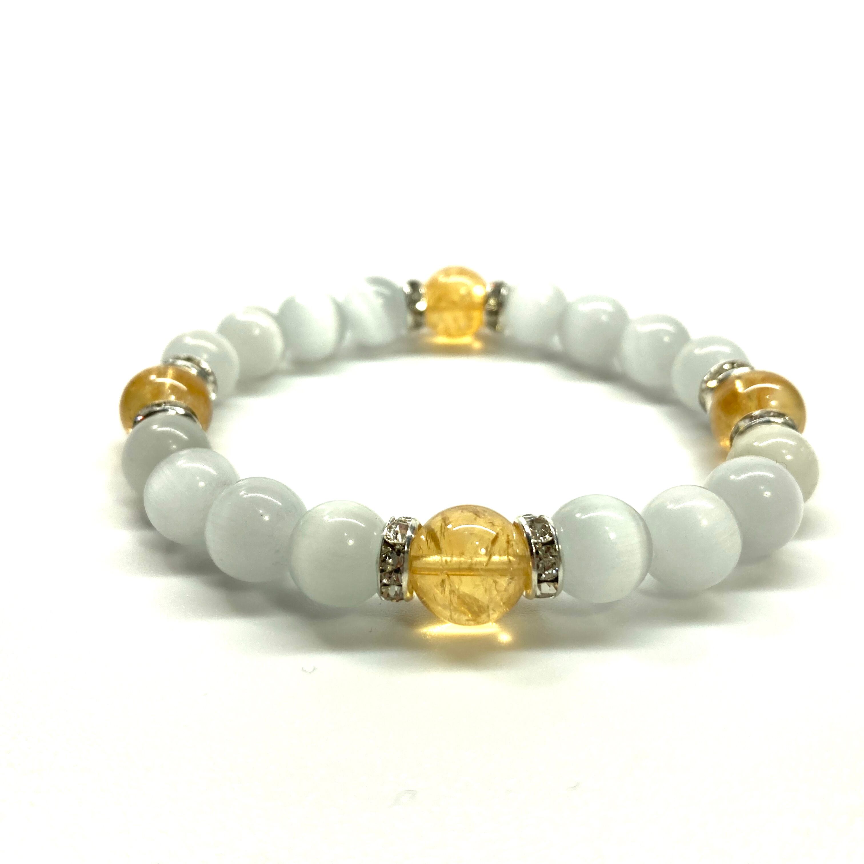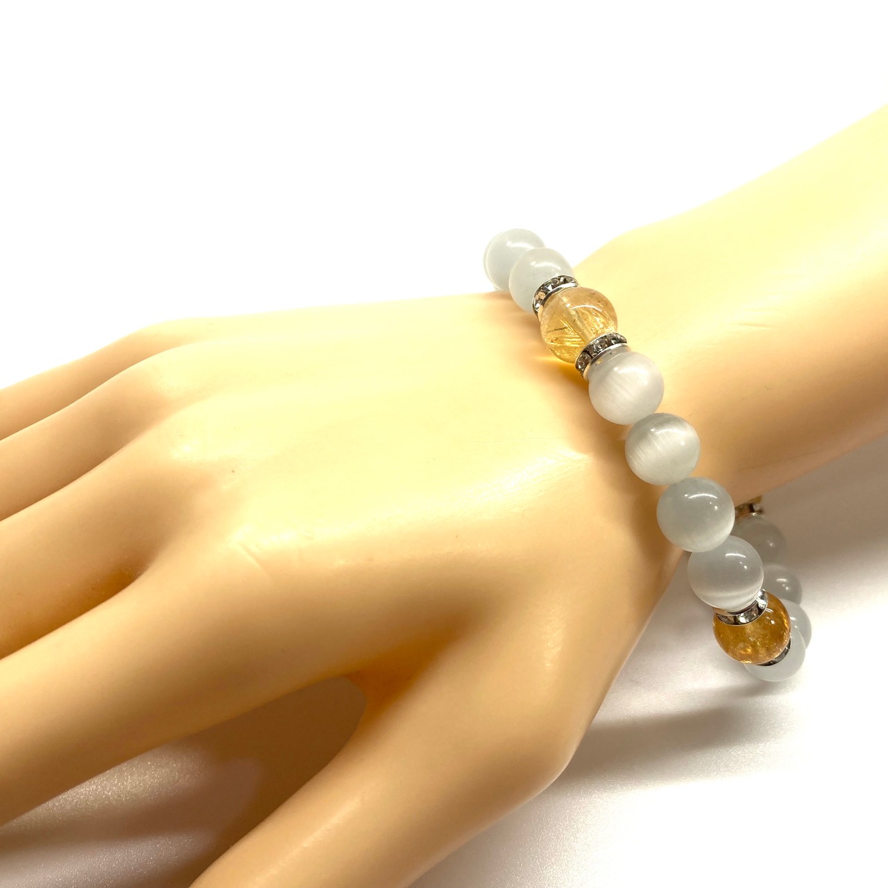 キャッツアイ(ホワイト)×ファントムシトリン パワーストーン ブレスレット (シルバー) メンズ・レディース 男性・女性 数珠ブレス 開運