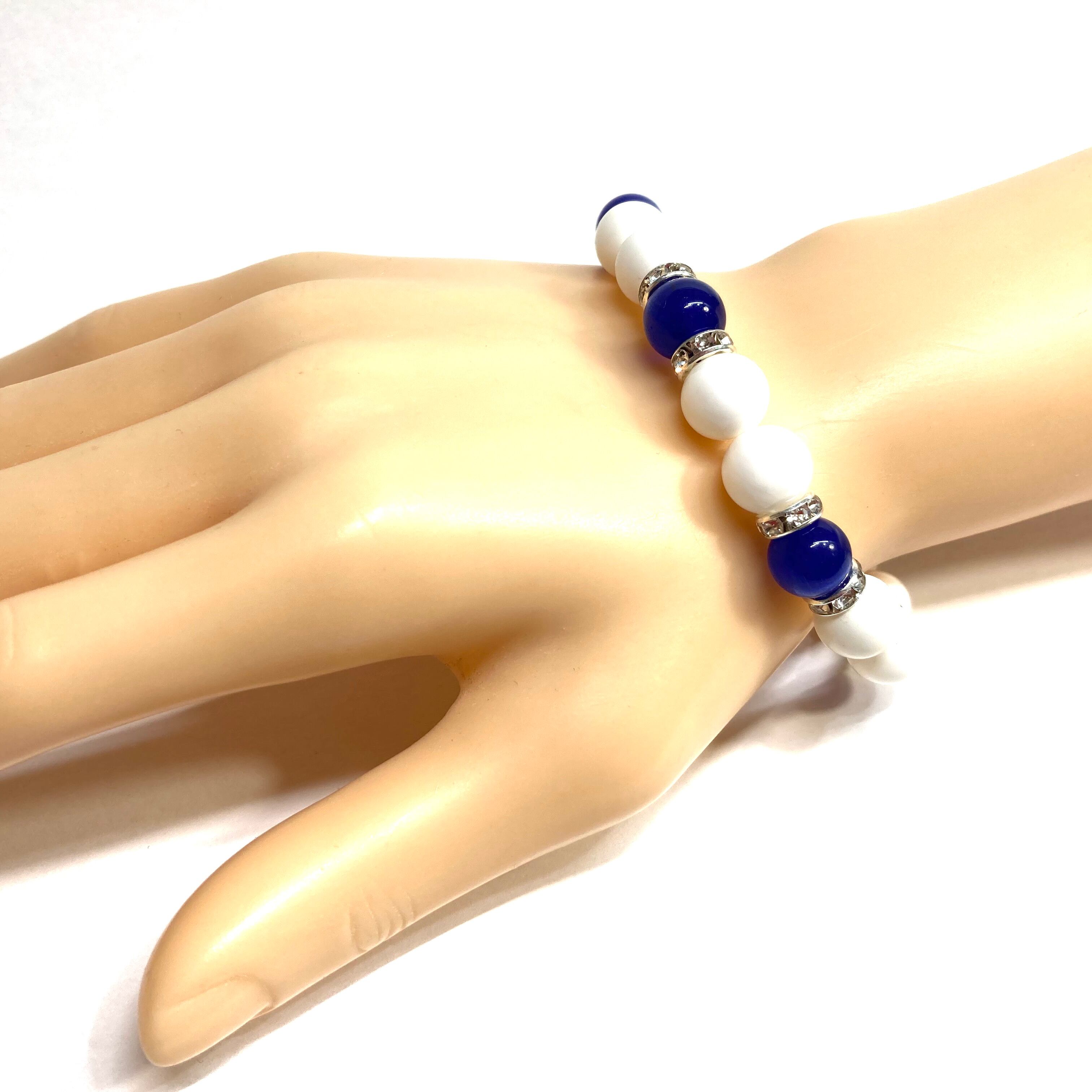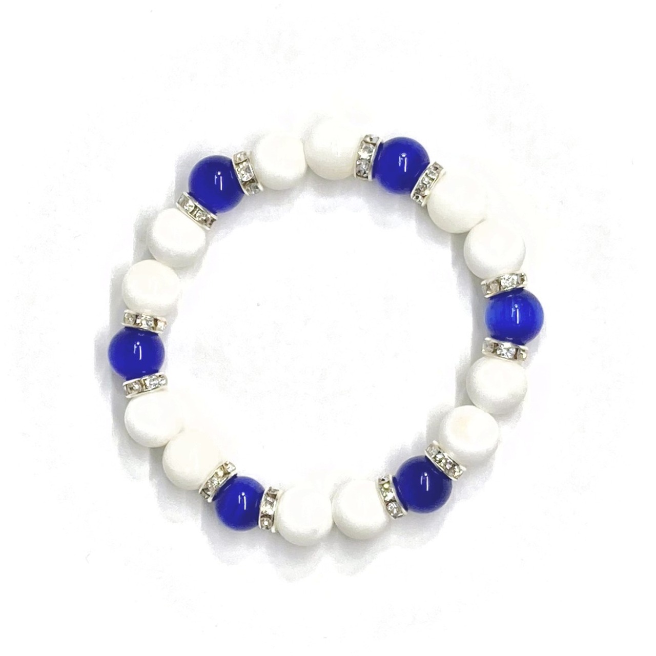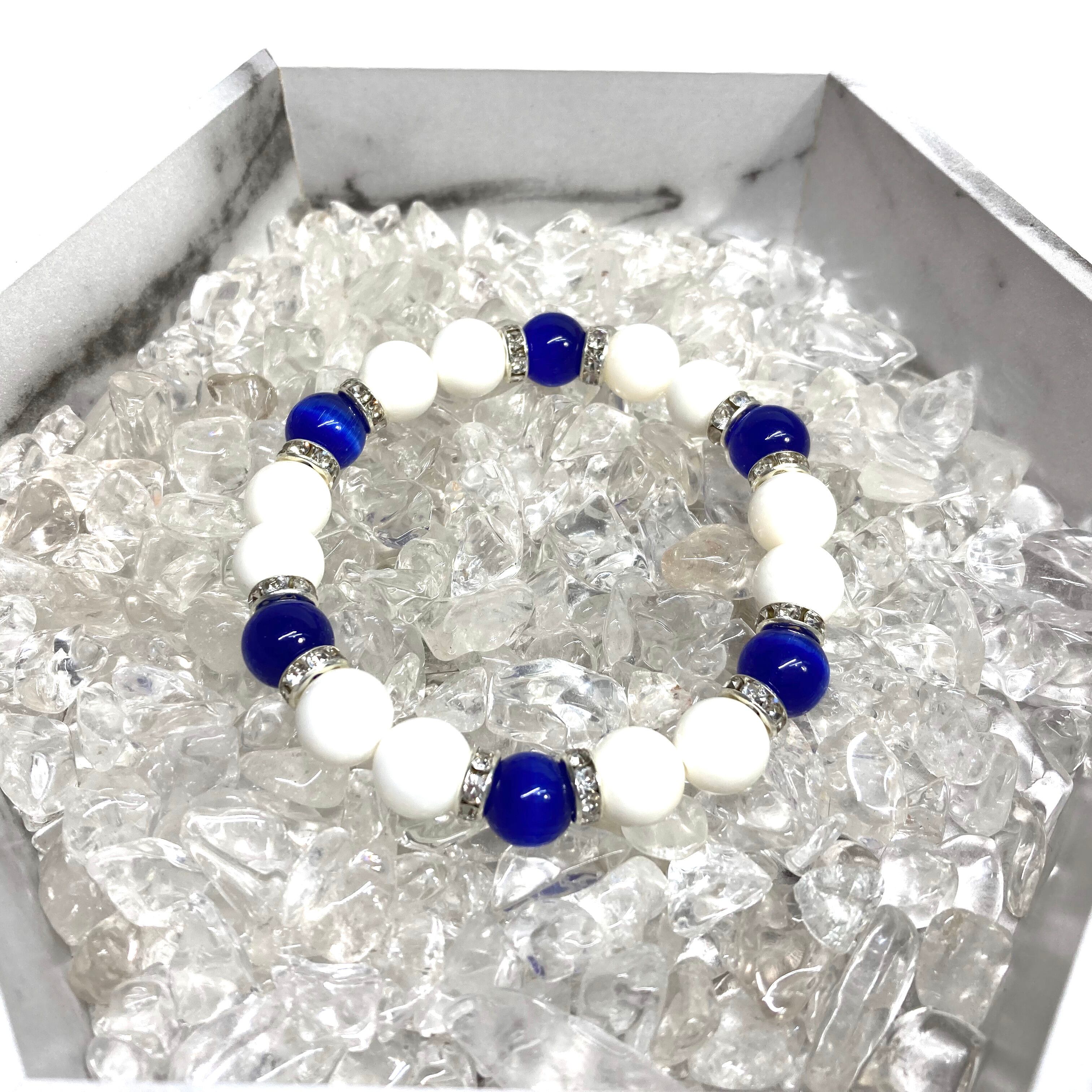 キャッツアイ(ダークブルー) ホワイトオニキス パワーストーン ブレスレット (シルバー) メンズ・レディース 男性・女性 数珠ブレス 開運