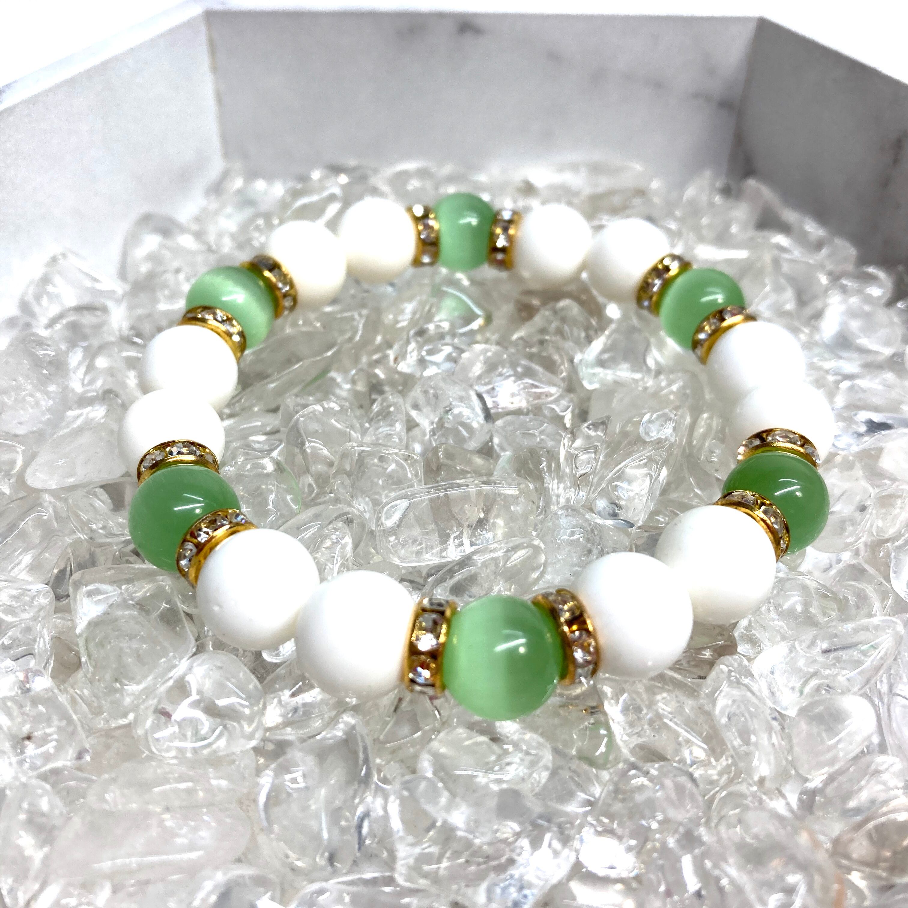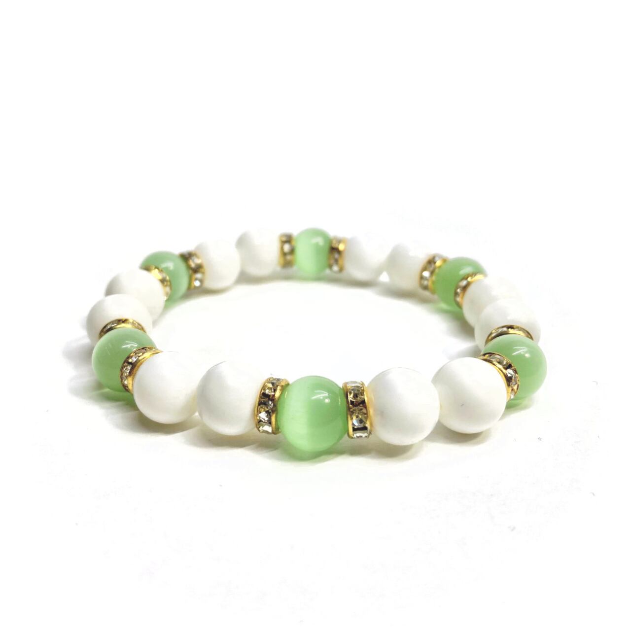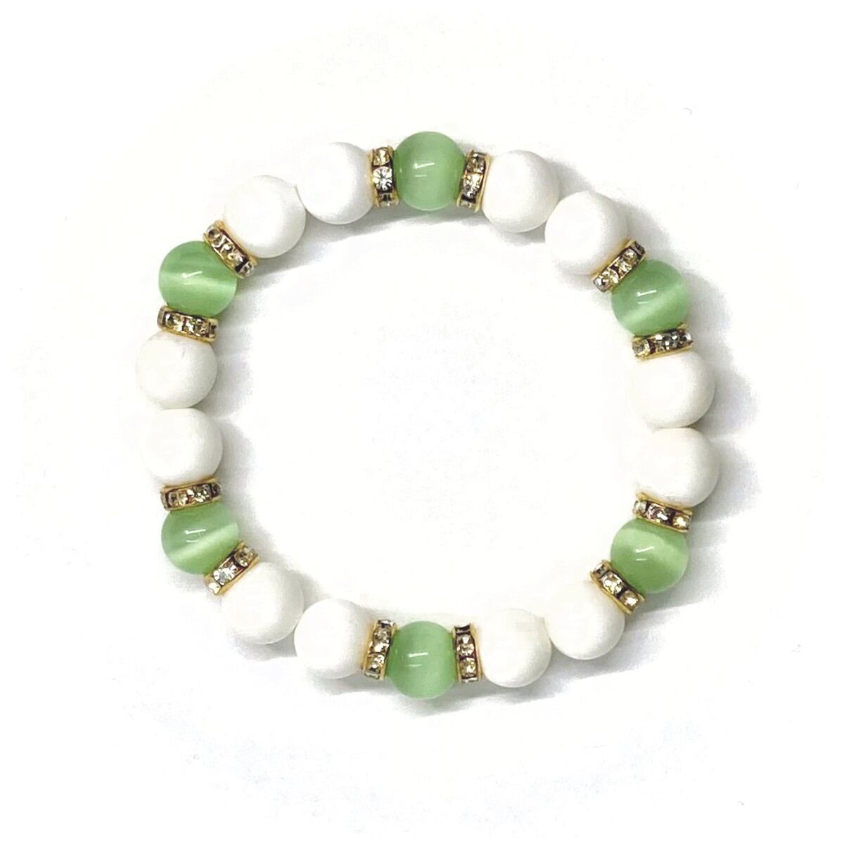 キャッツアイ(ライトグリーン) ホワイトオニキス パワーストーン ブレス (ゴールド) メンズ・レディース 男性・女性 数珠ブレス 開運