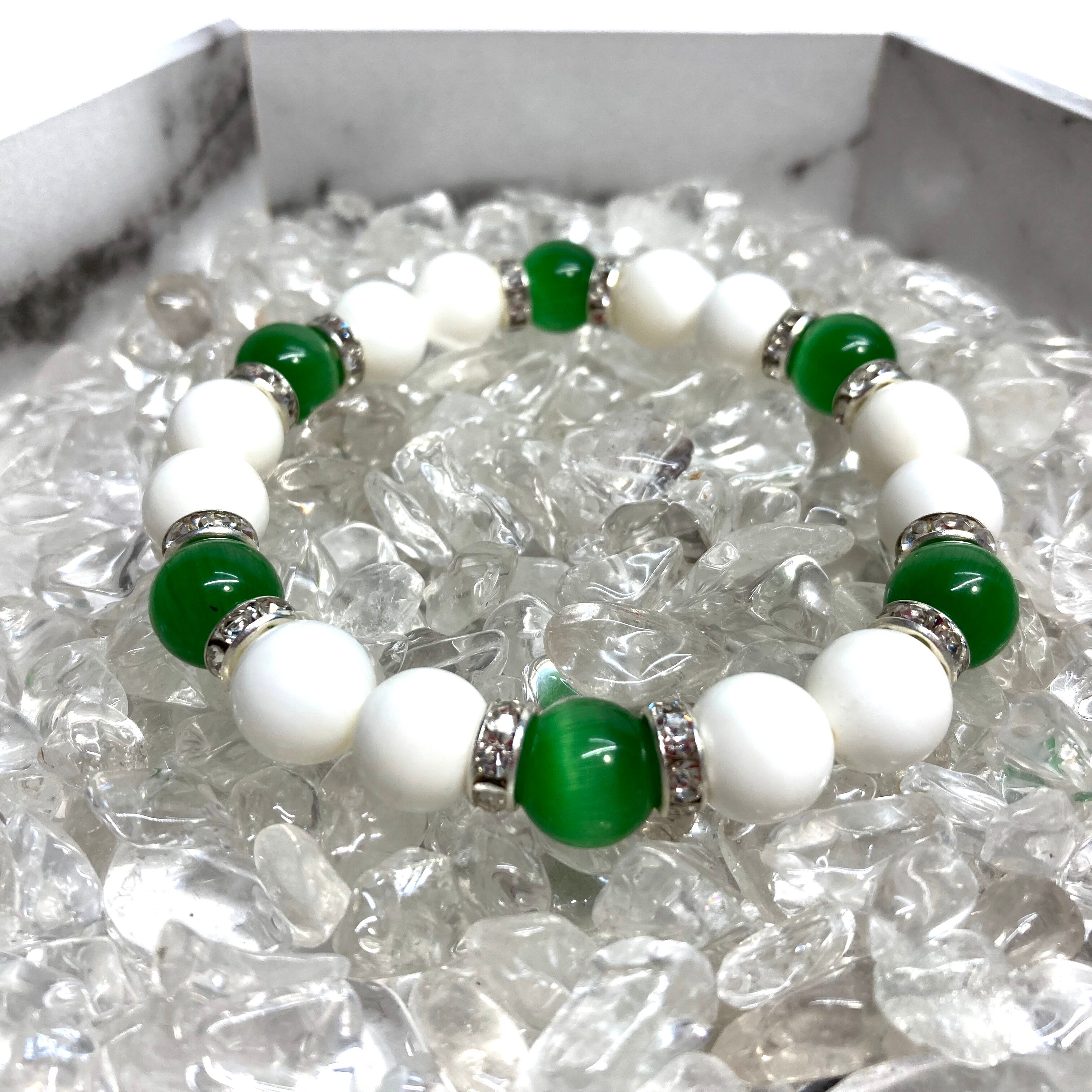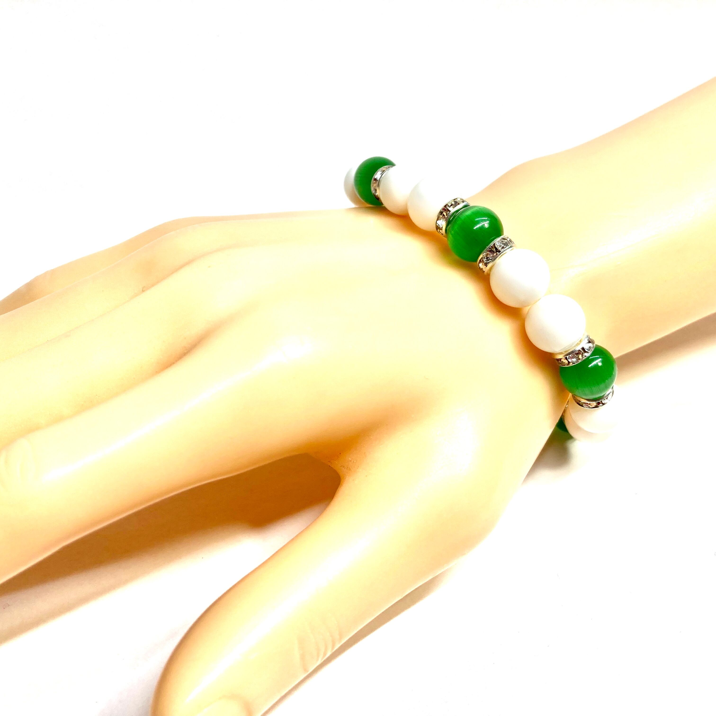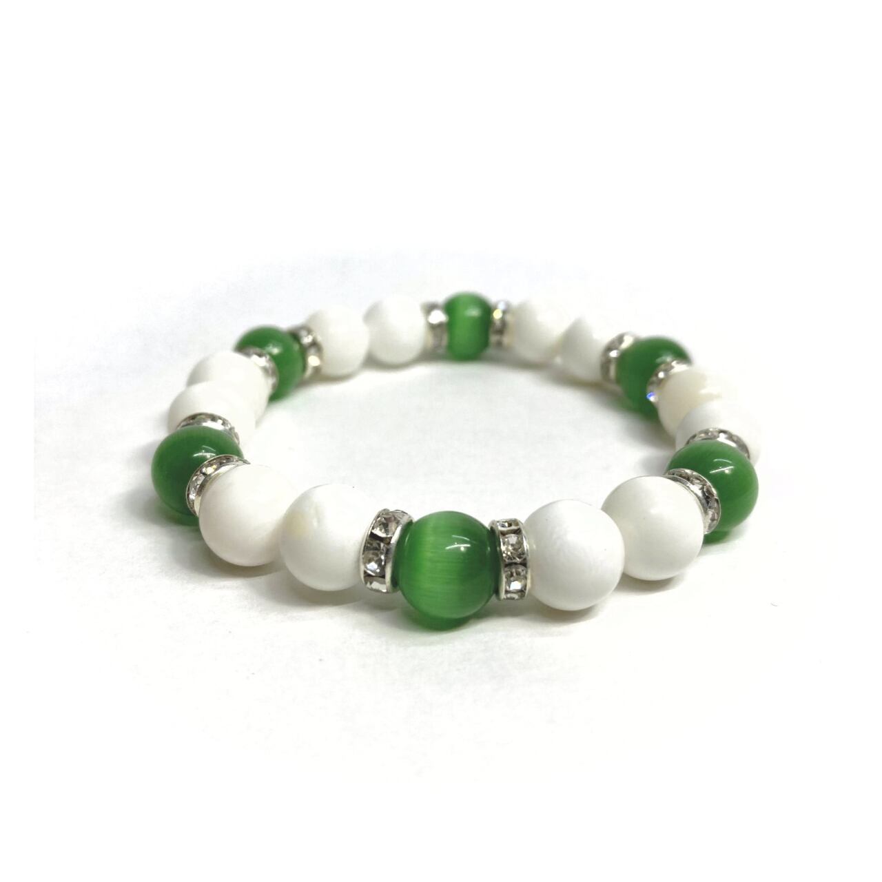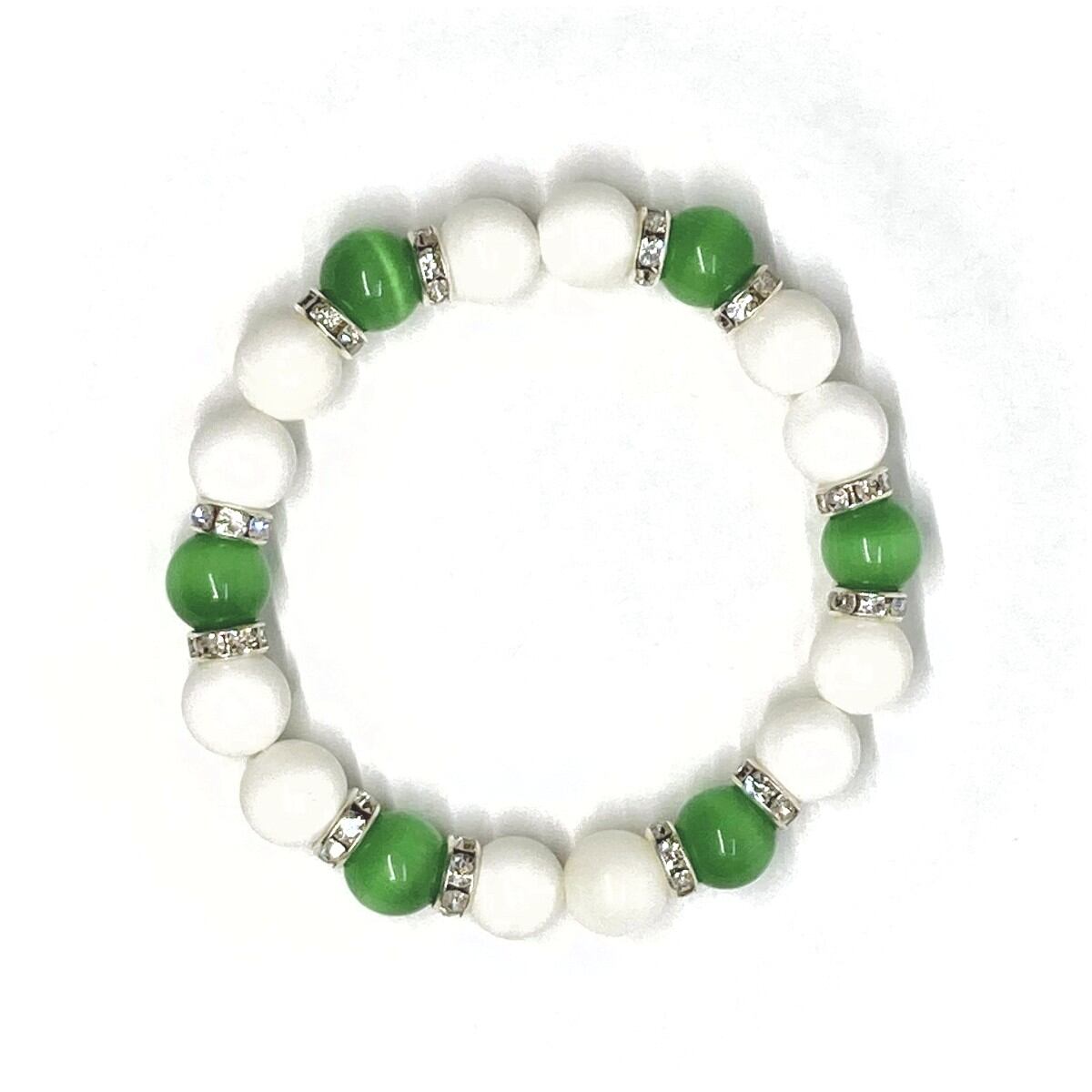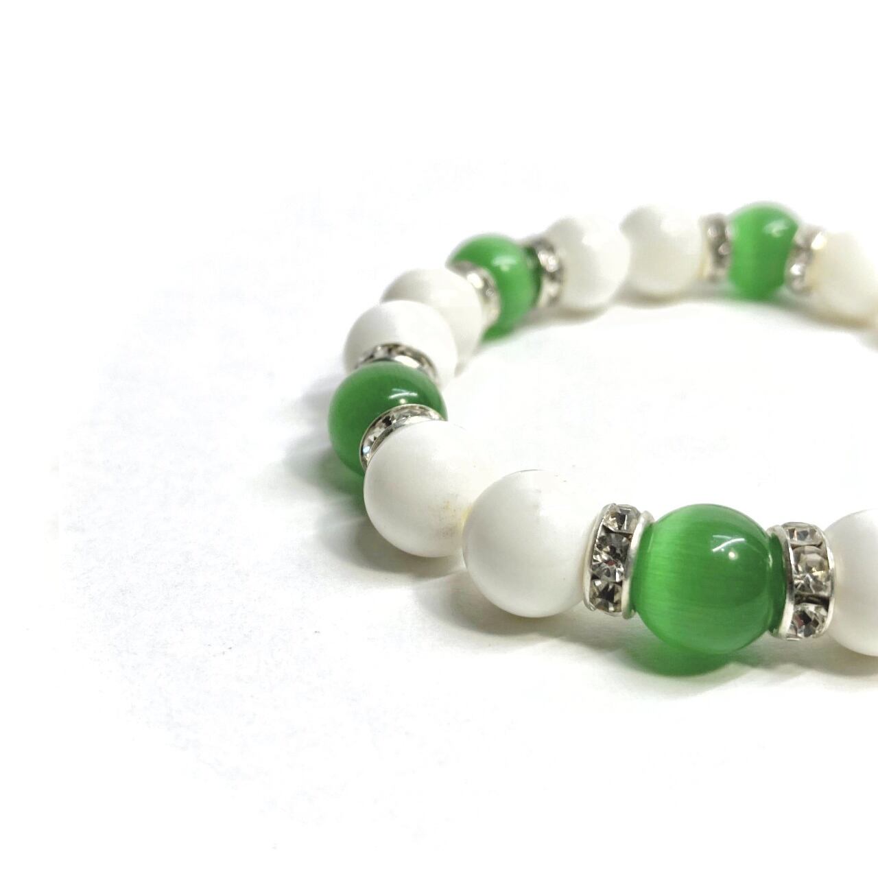 キャッツアイ(グリーン) ホワイトオニキス パワーストーン ブレスレット (シルバー) メンズ・レディース 男性・女性 数珠ブレス 開運
