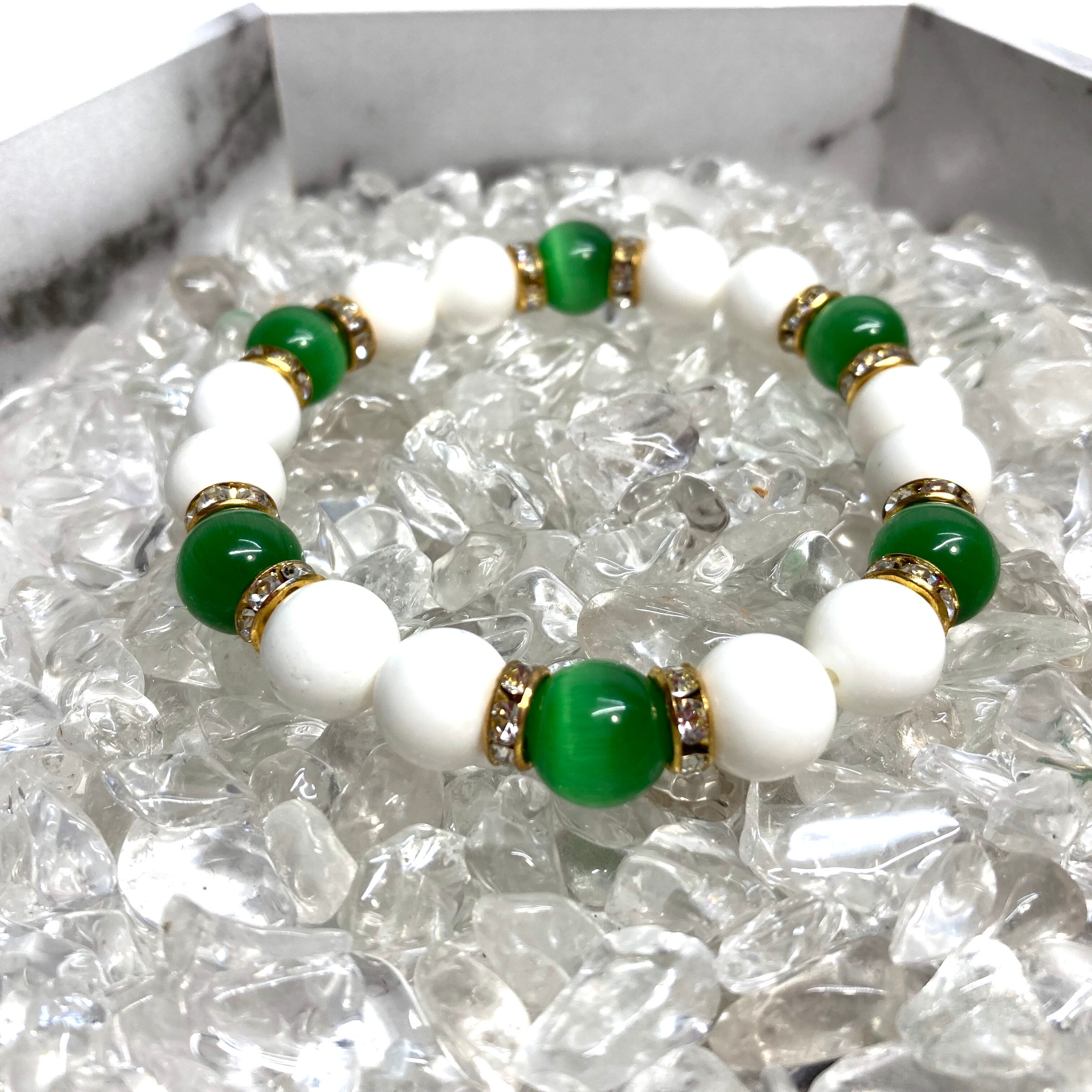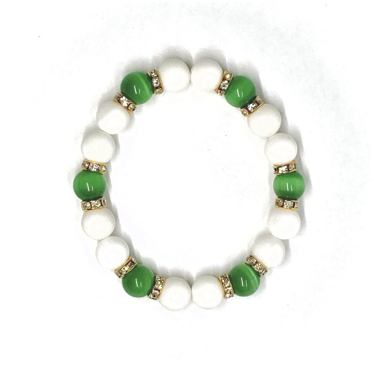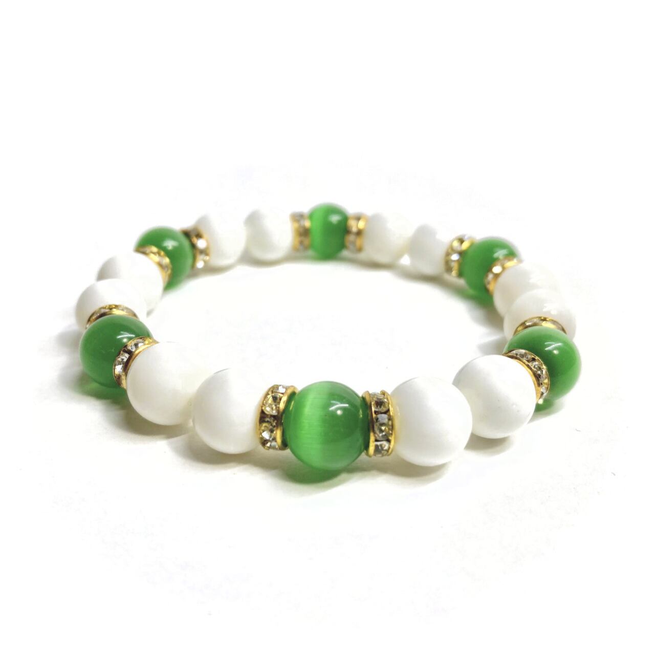 キャッツアイ(グリーン) ホワイトオニキス パワーストーン ブレスレット (ゴールド) メンズ・レディース 男性・女性 数珠ブレス 開運