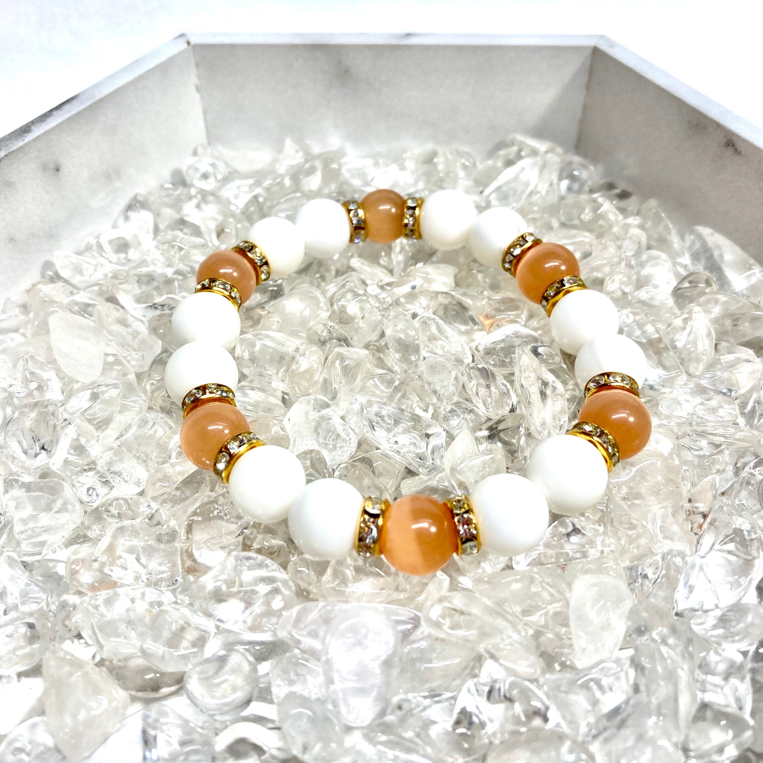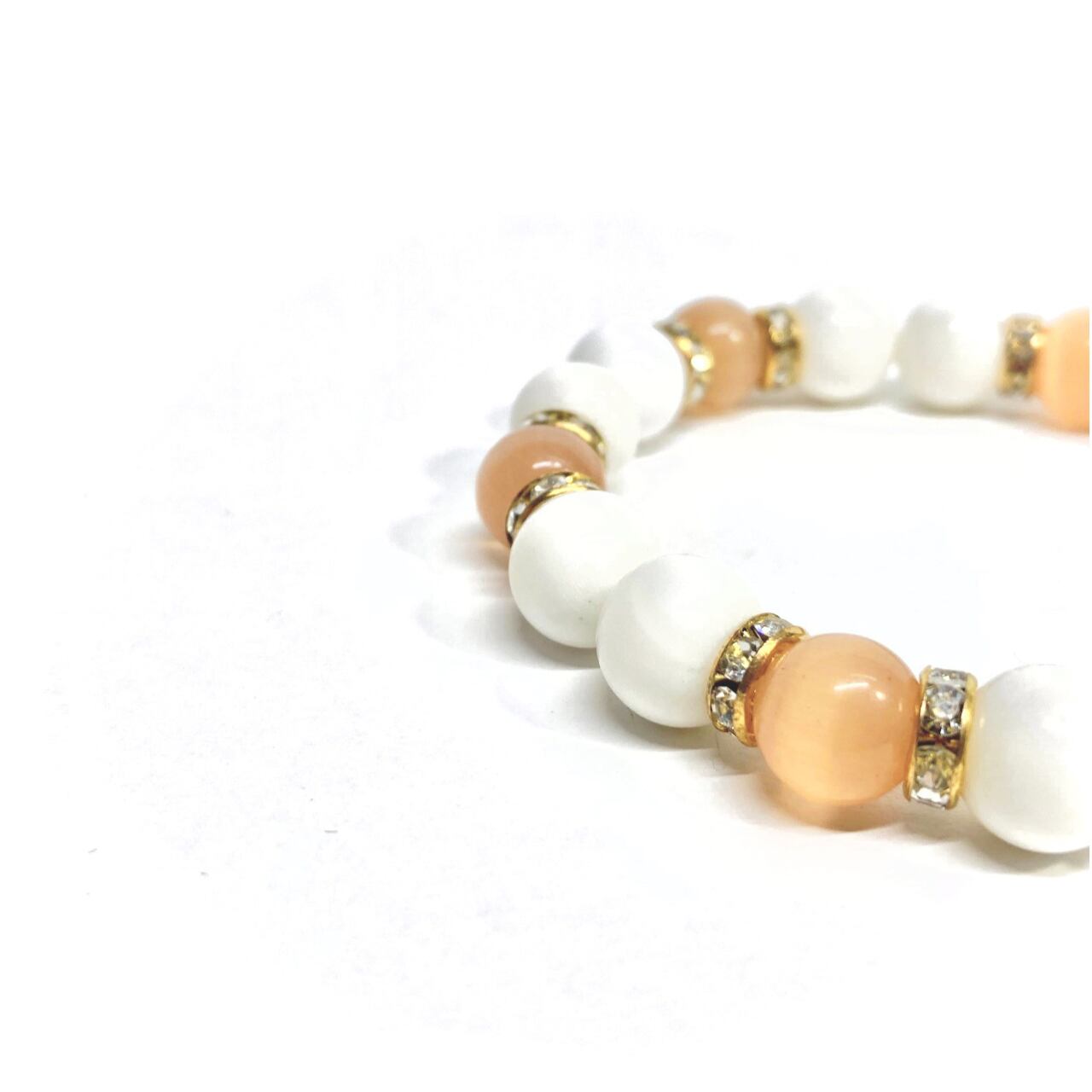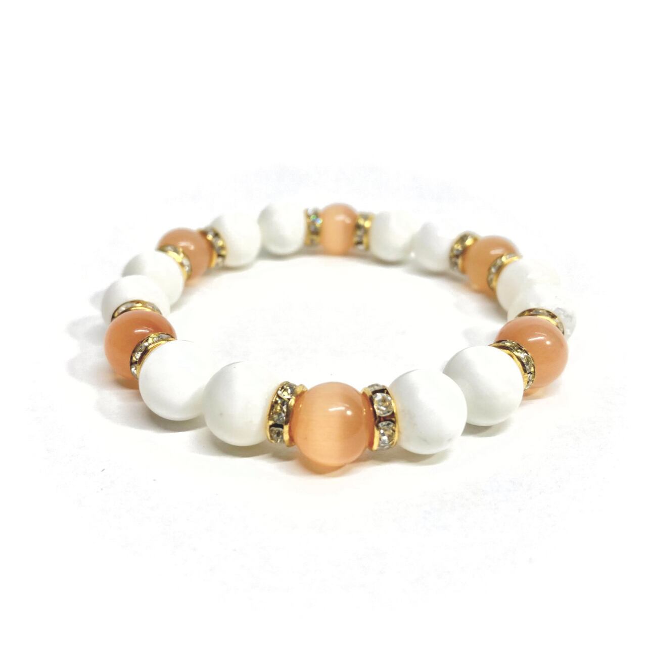 キャッツアイ(オレンジ) ホワイトオニキス パワーストーン ブレスレット (ゴールド) メンズ・レディース 男性・女性 数珠ブレス 開運